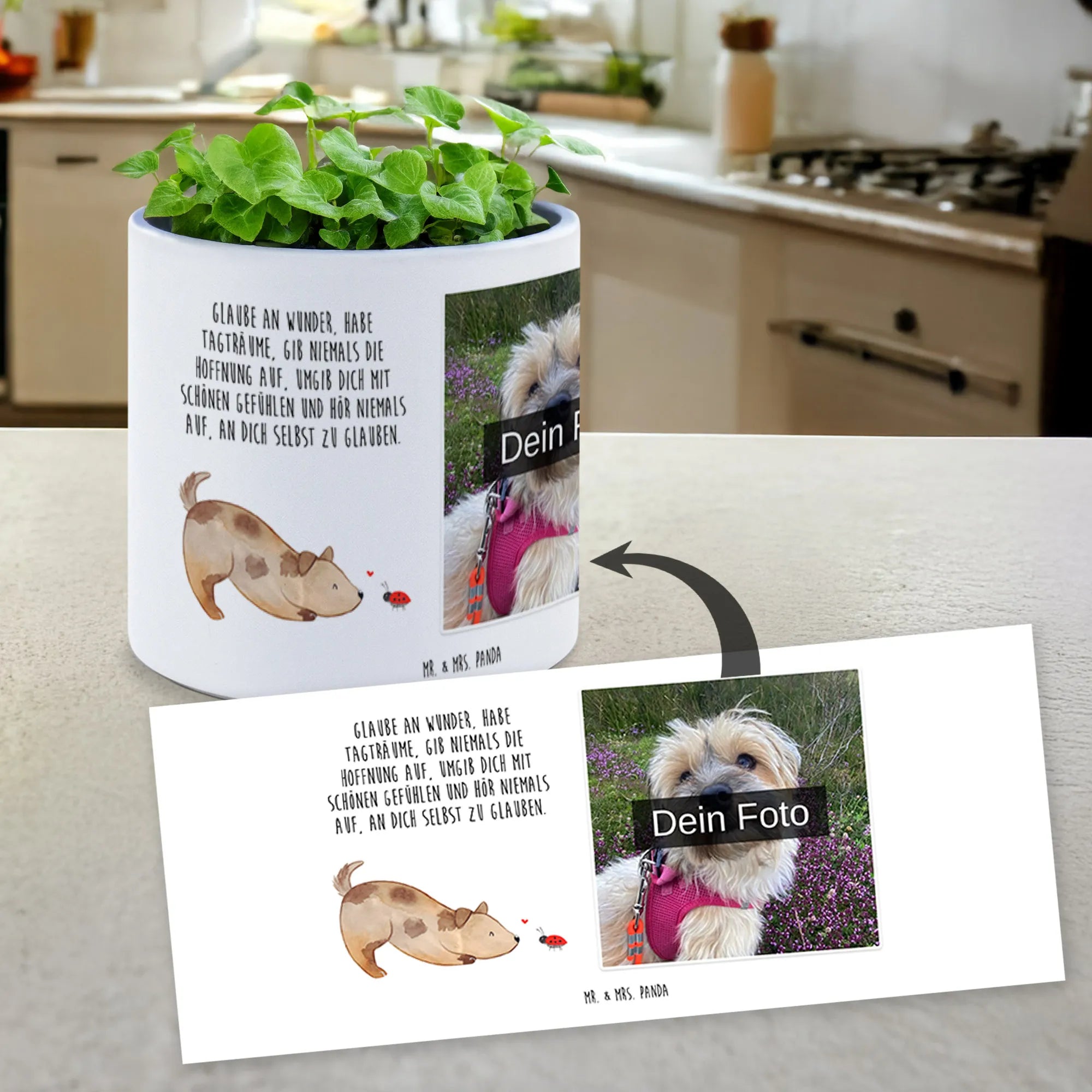 Personalisierter Foto XL Blumentopf Hund Marienkäfer