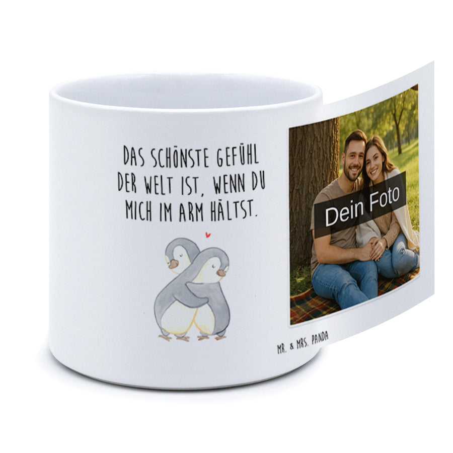 Personalisierter Foto XL Blumentopf Pinguine Kuscheln