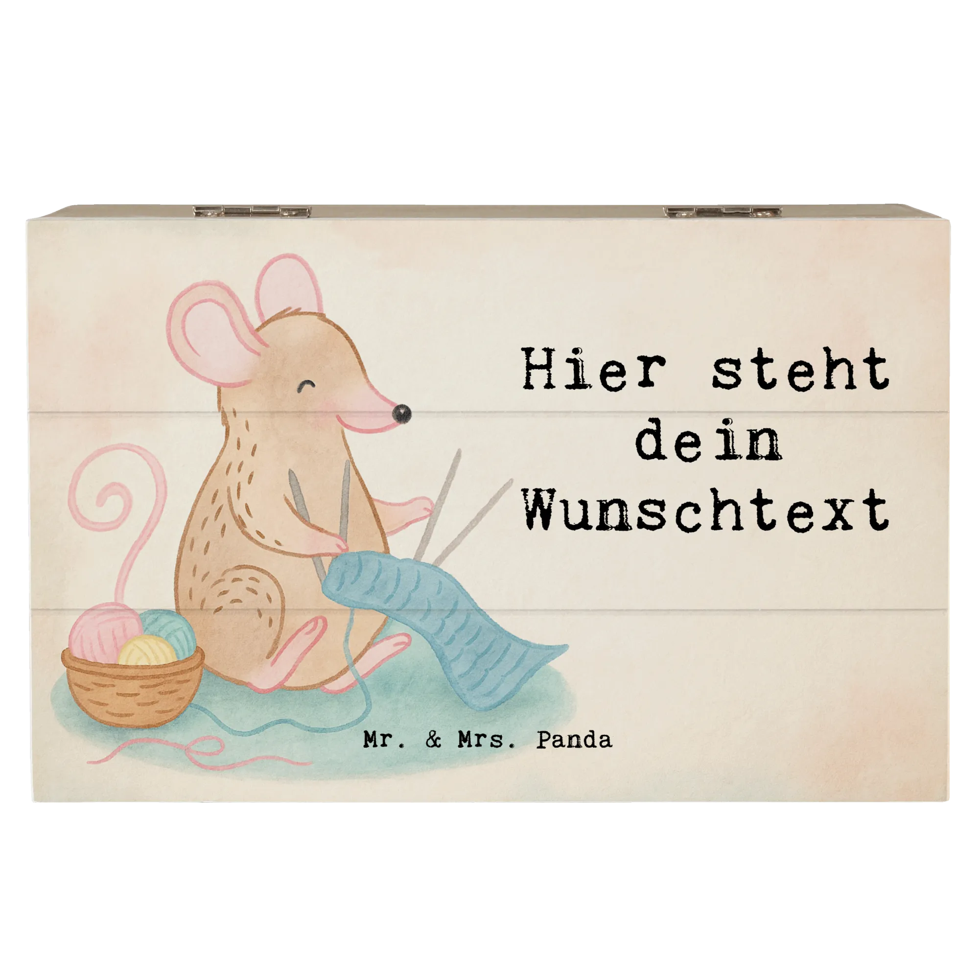 Personalisierte Holzkiste Maus Stricken Design - 22 x 15 cm