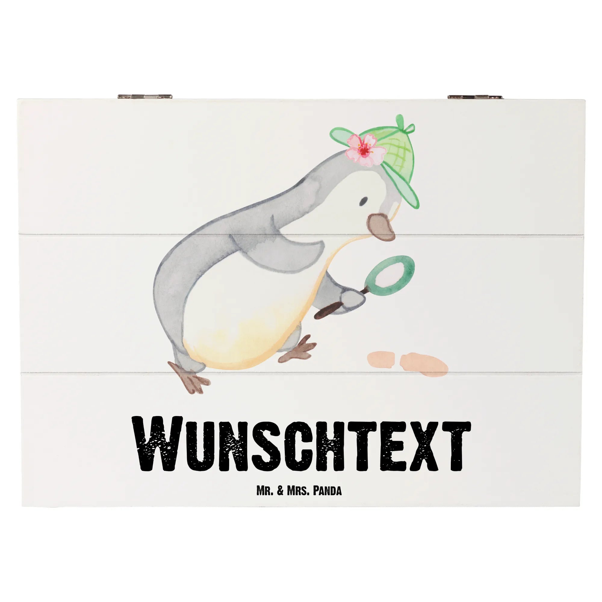 Personalizowane drewniane pudełko detektywka serce - 22 x 15 cm - biały