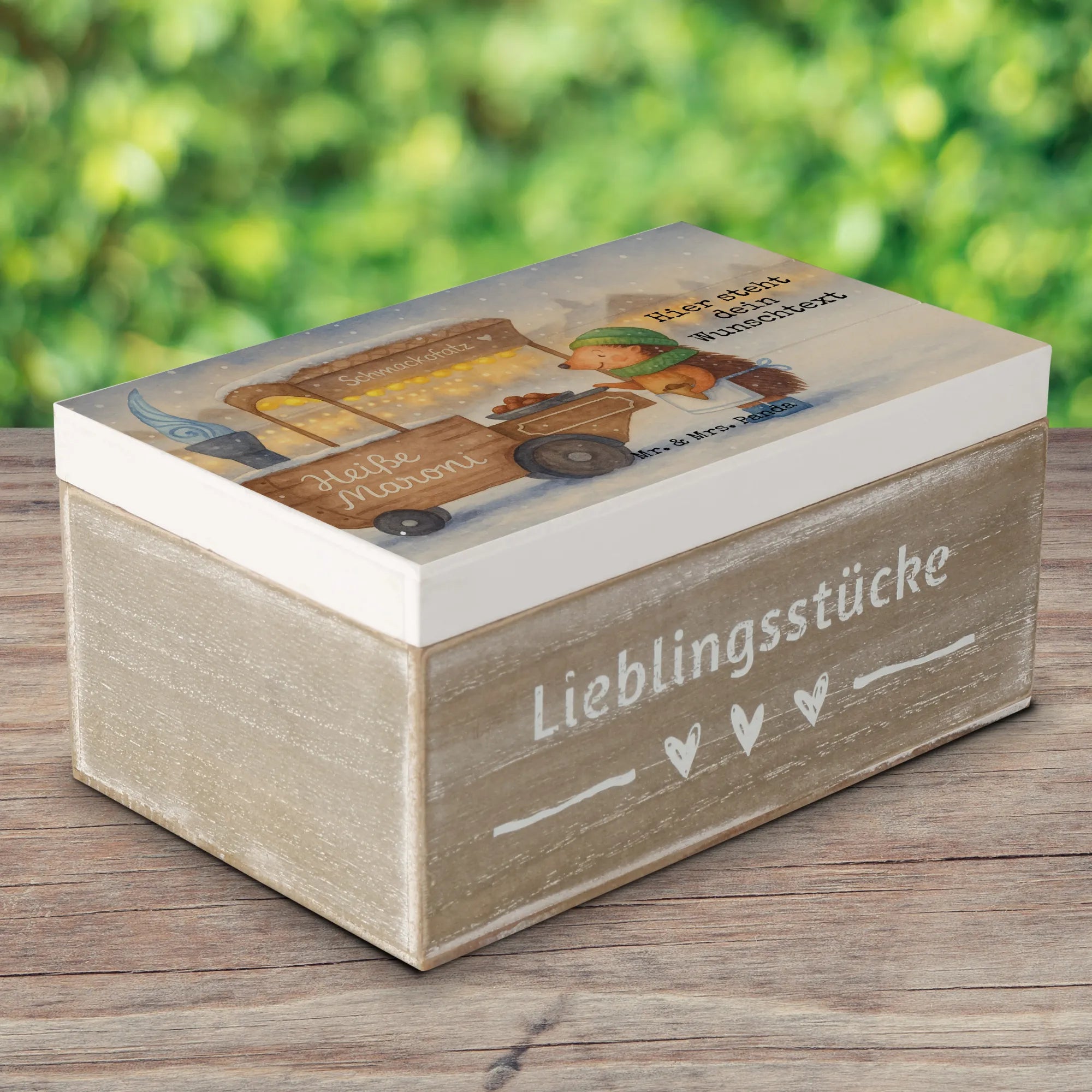 Personalizowane drewniane pudełko Jeż kasztany Design - 22 x 15 cm
