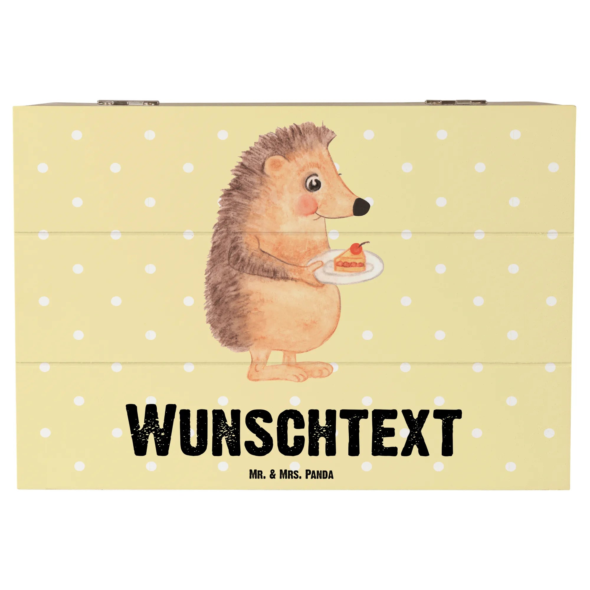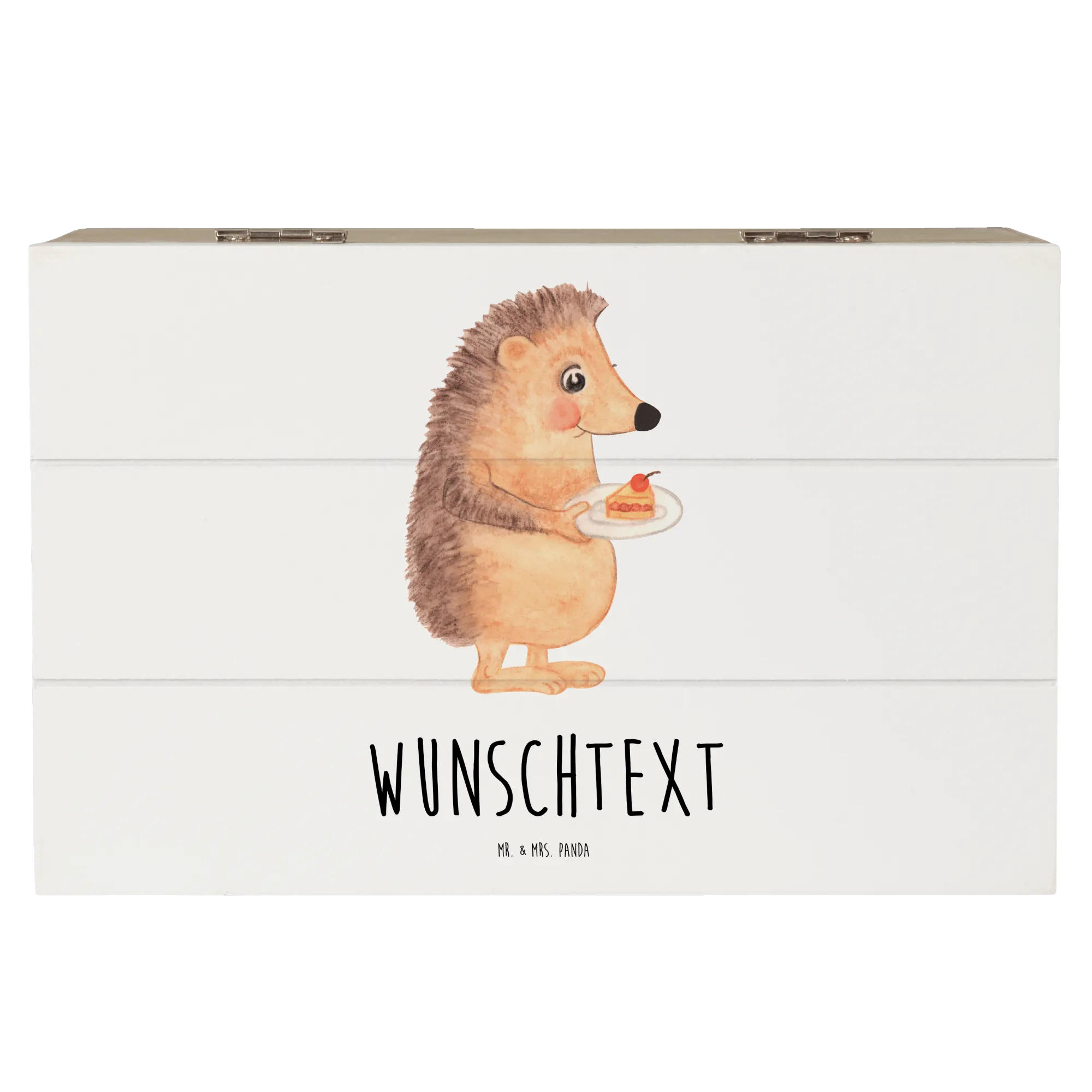 Personalizowane drewniane pudełko jeż kawałek ciasta - 22 x 15 cm - Biały
