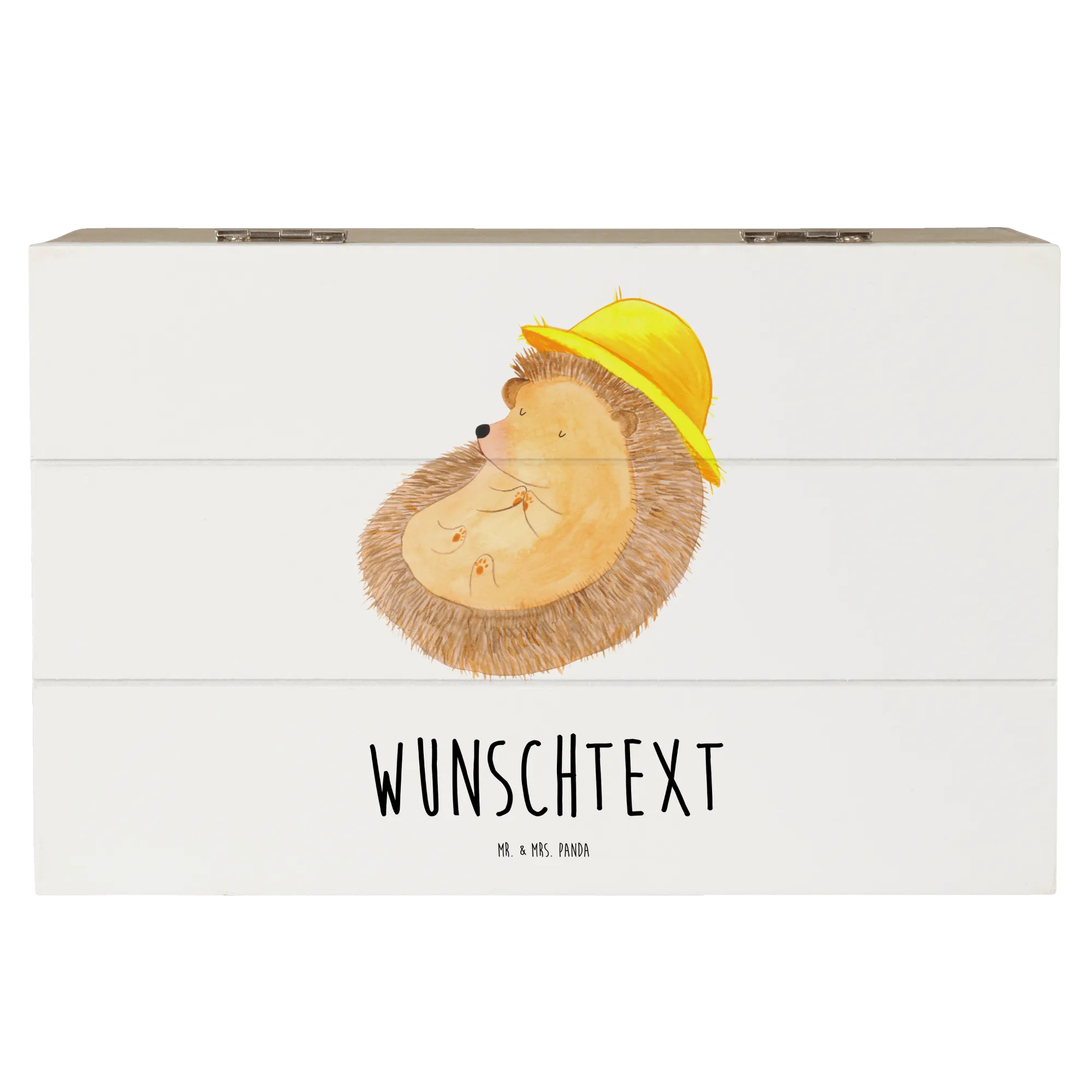 Personalizowane drewniane pudełko jeż Modlić się - 22 x 15 cm - Biały
