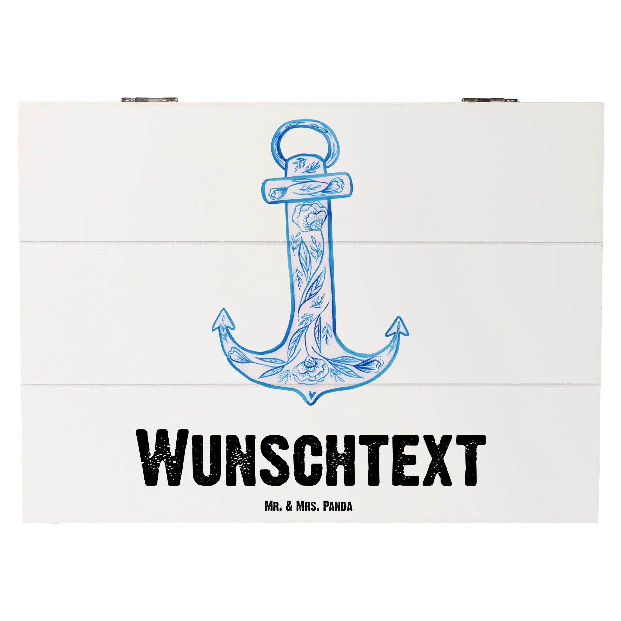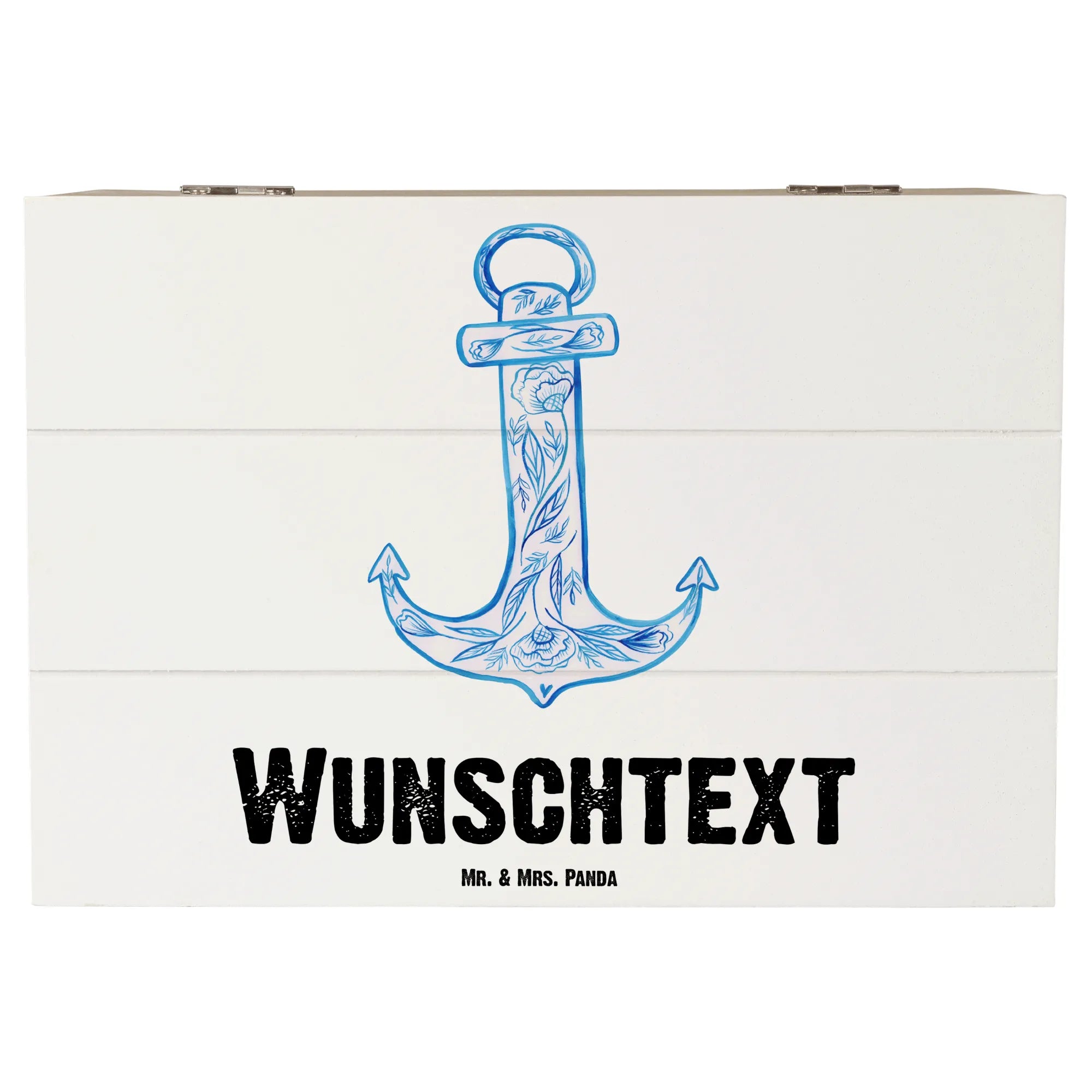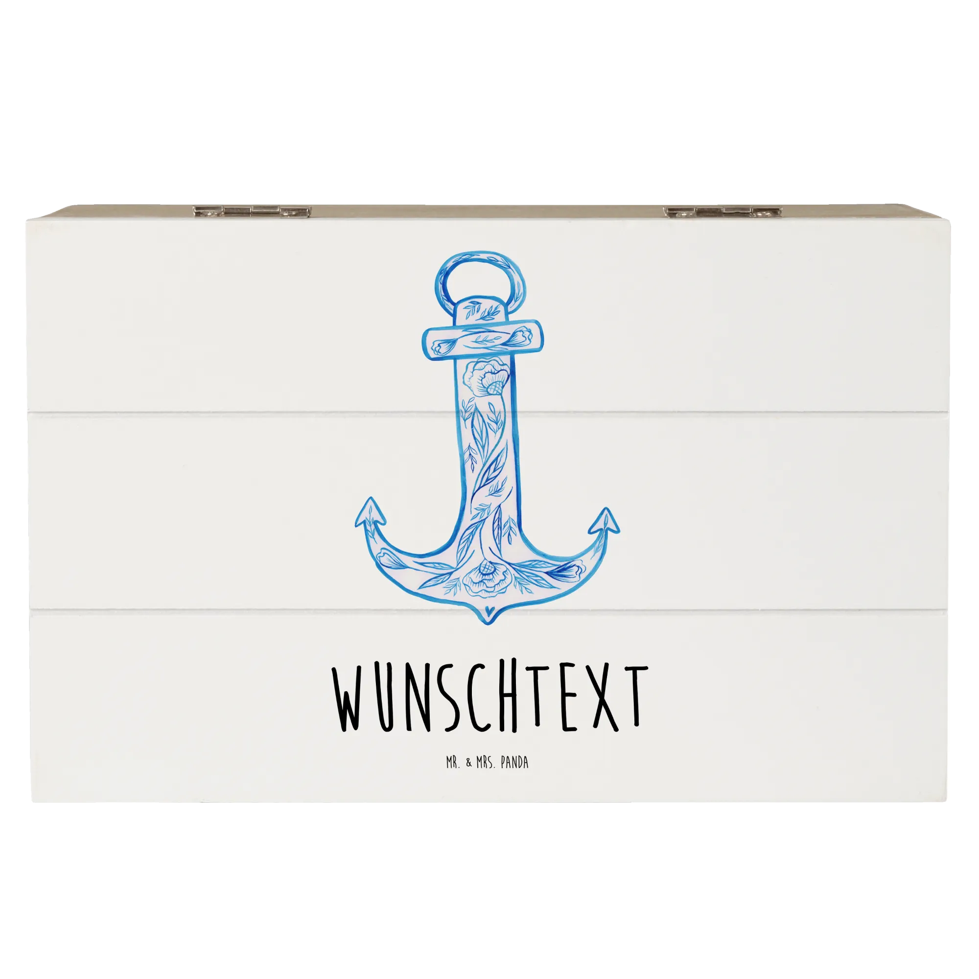 Personalizowane drewniane pudełko kotwica Niebieski - 22 x 15 cm - Biały