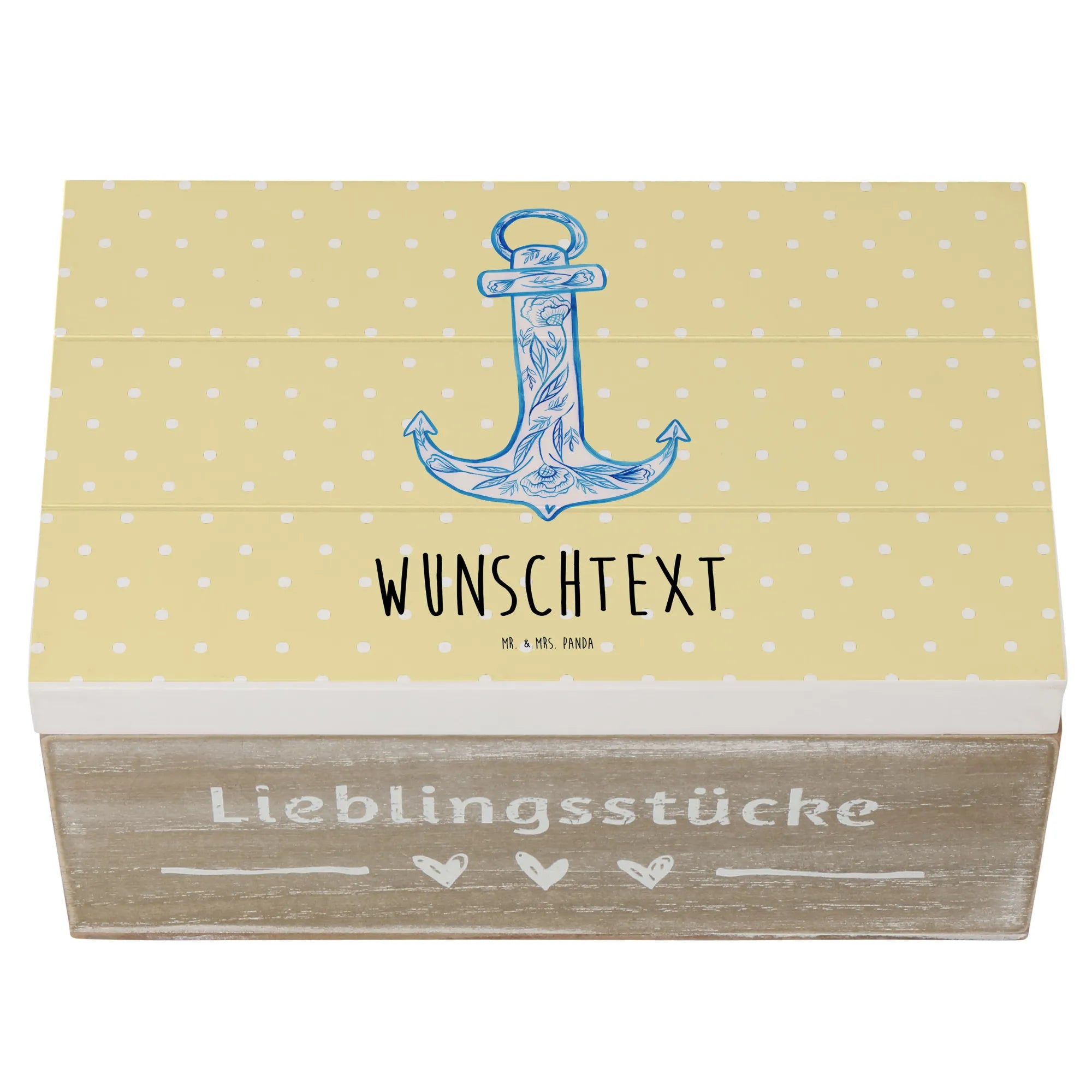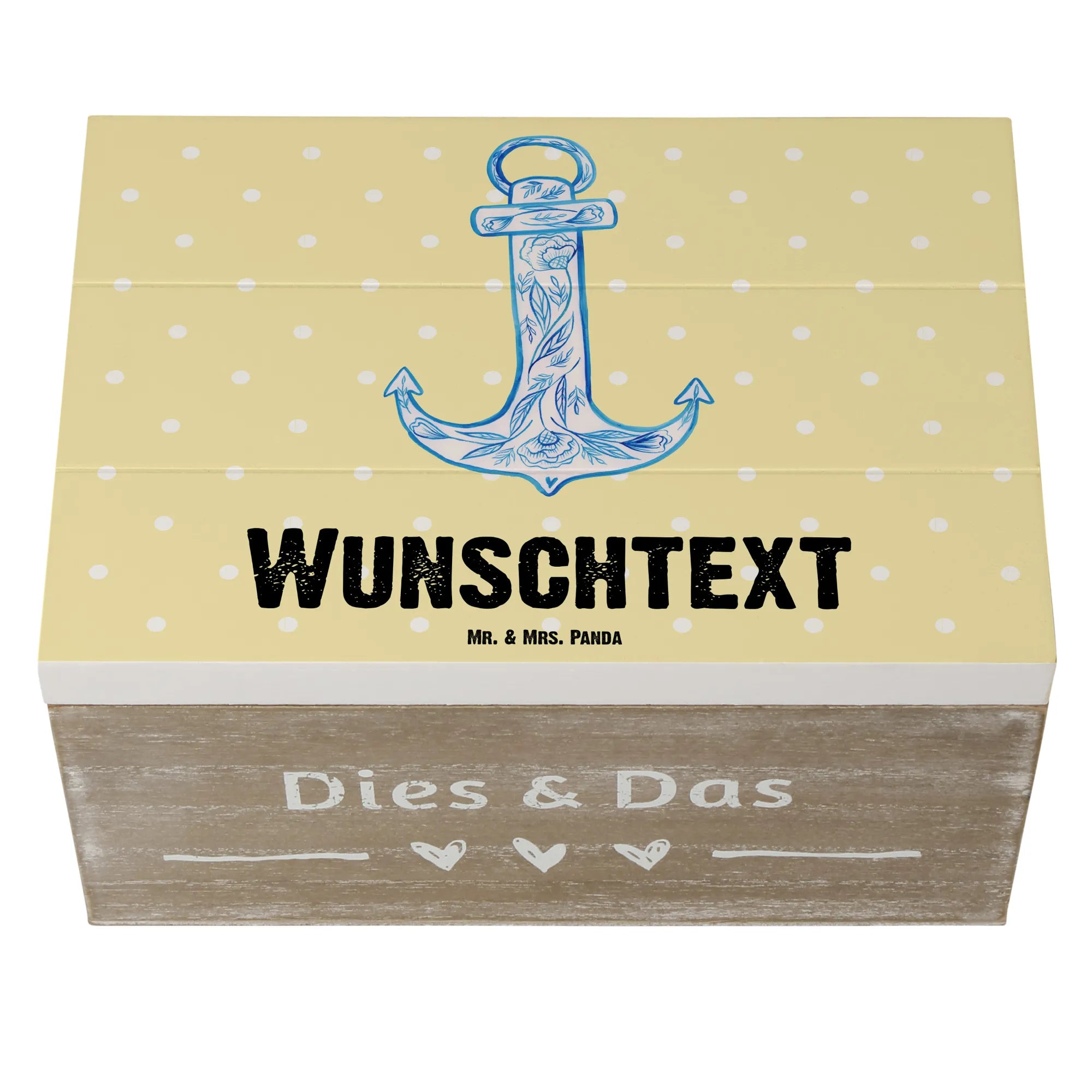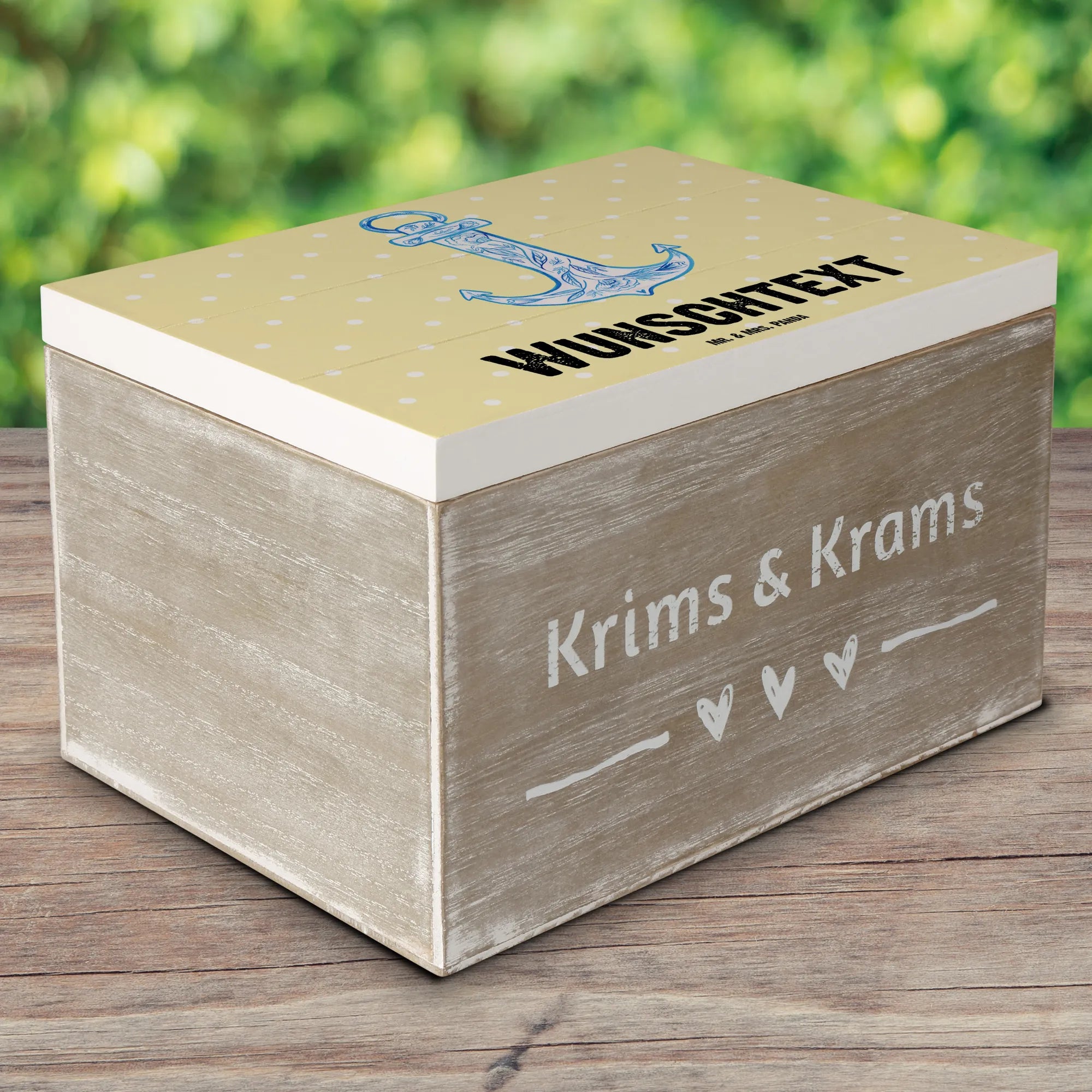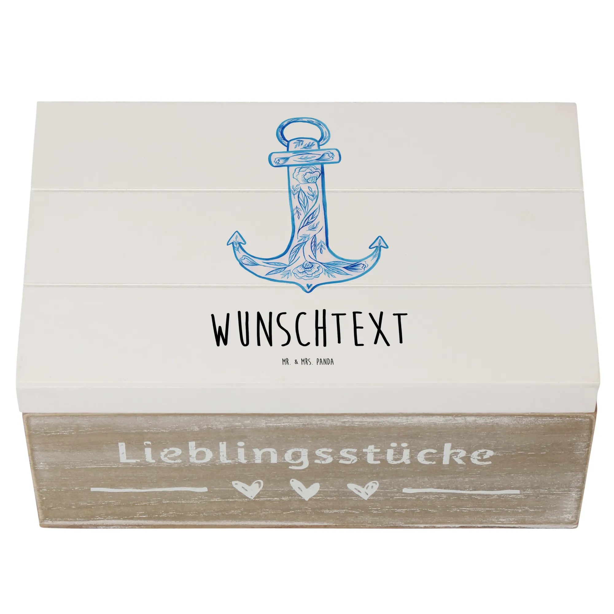 Personalizowane drewniane pudełko kotwica Niebieski - 22 x 15 cm - Biały