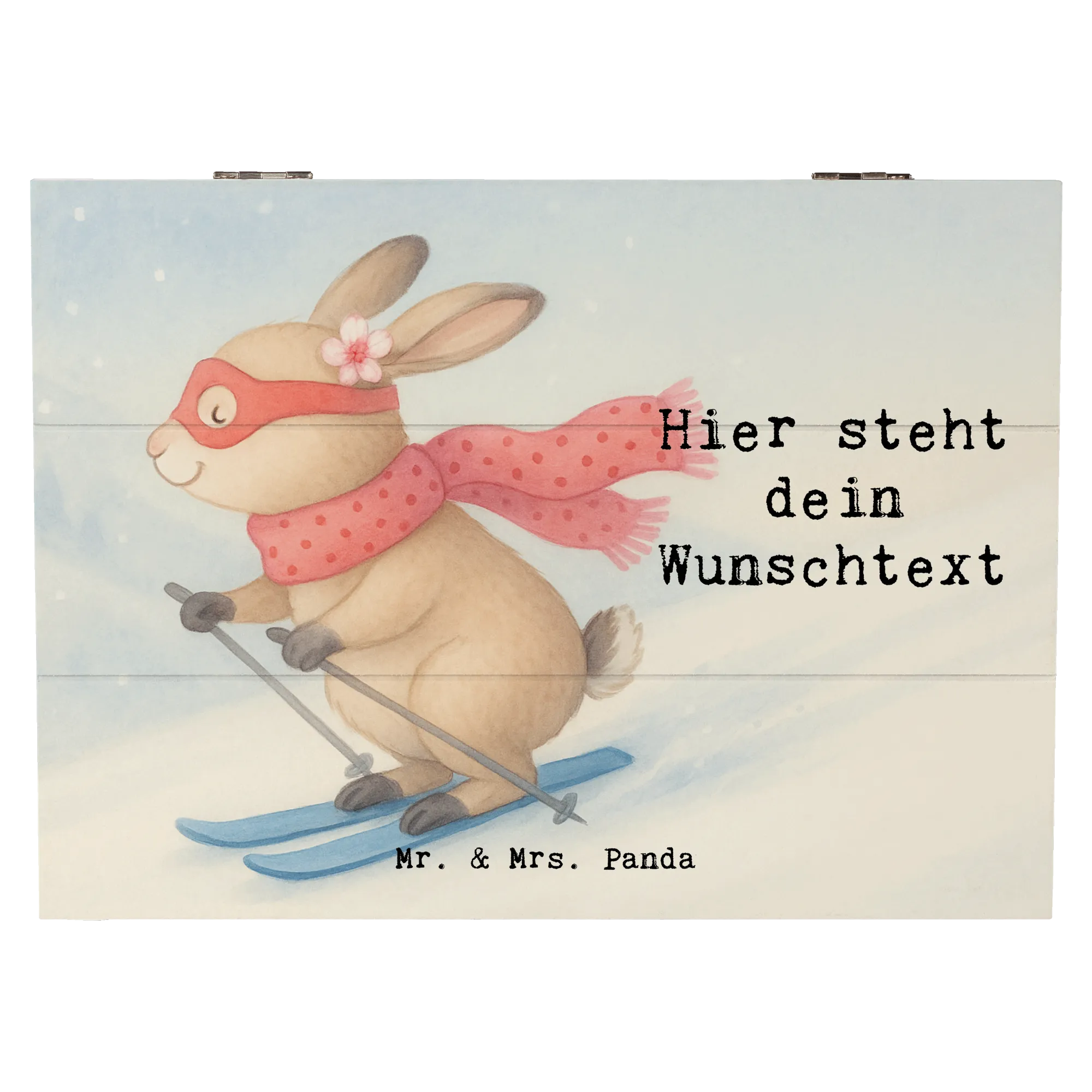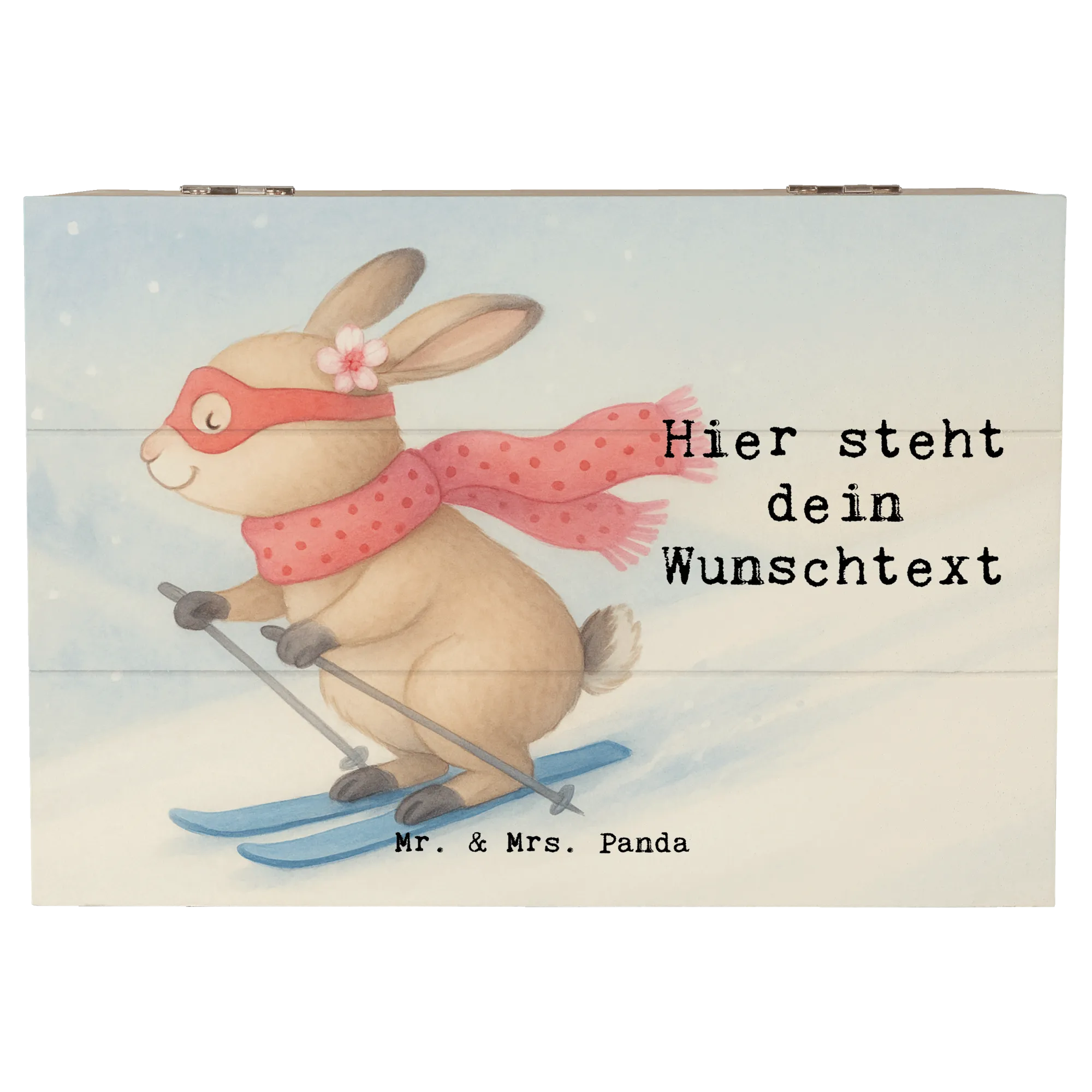Personalizowane drewniane pudełko królik jazda na nartach Design - 22 x 15 cm