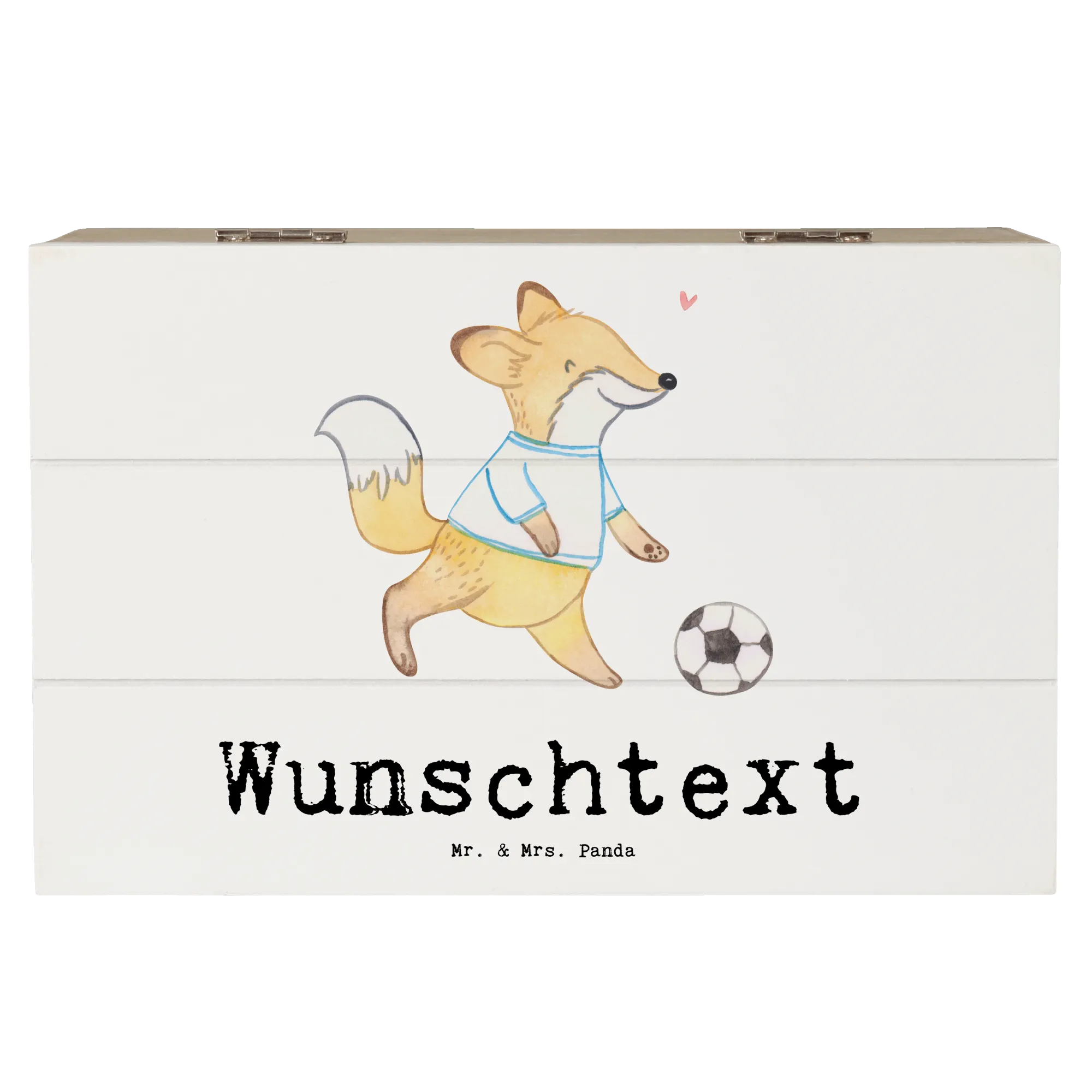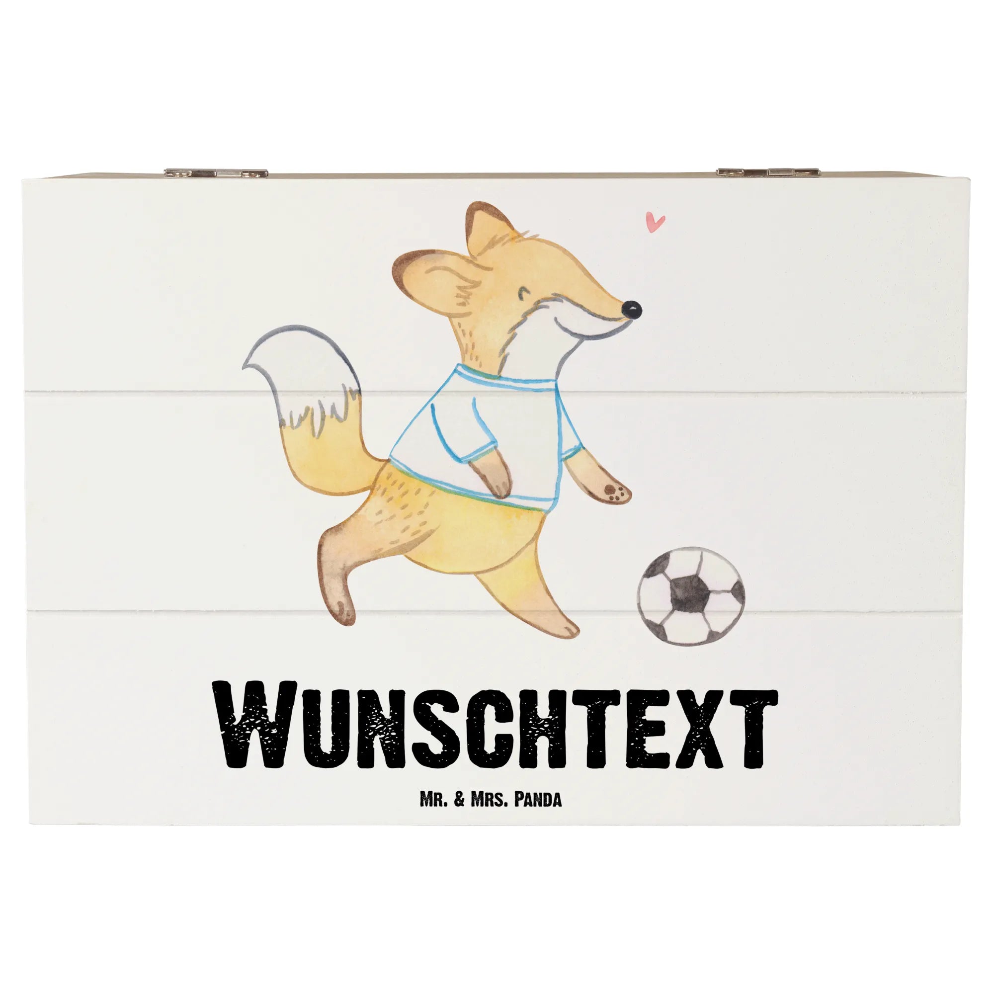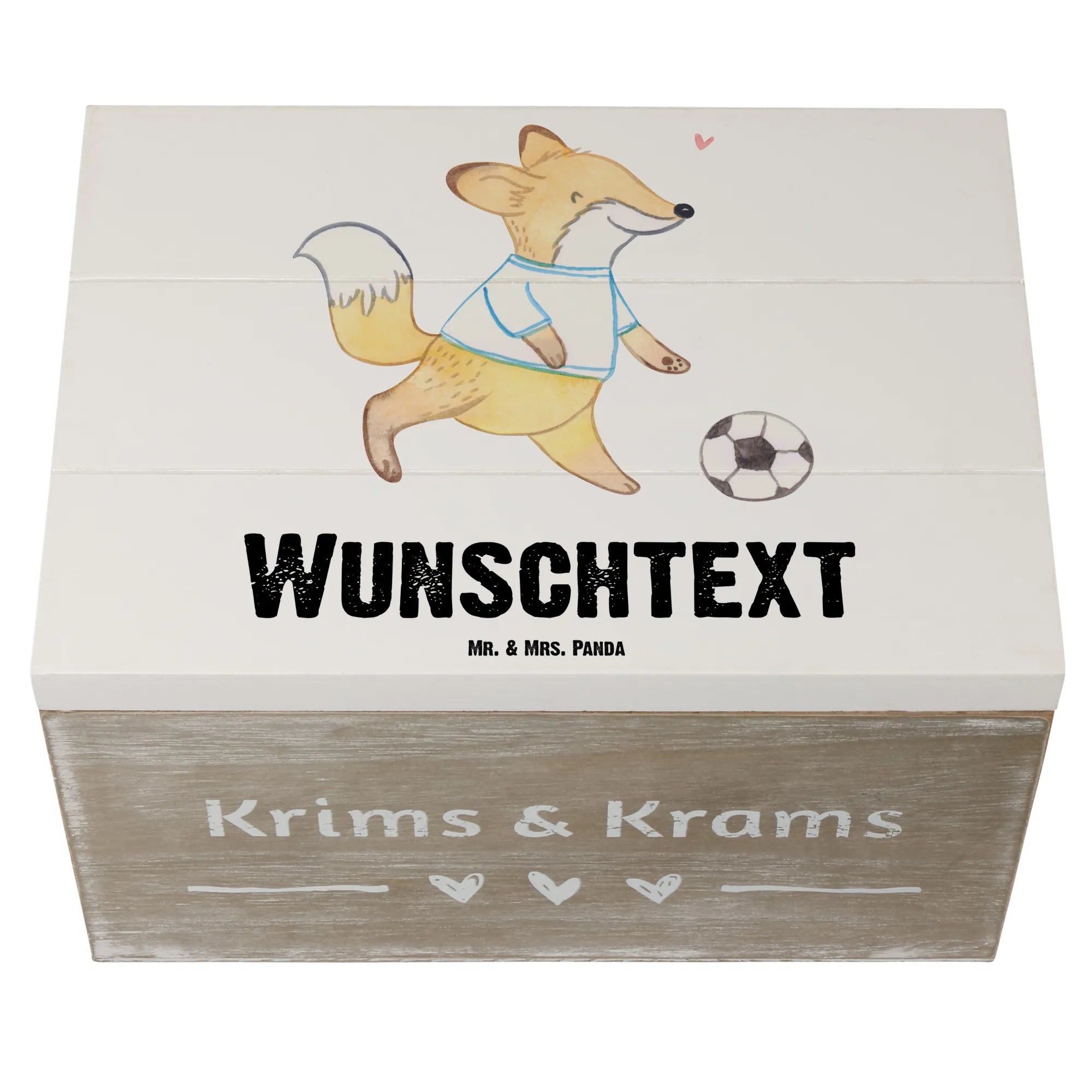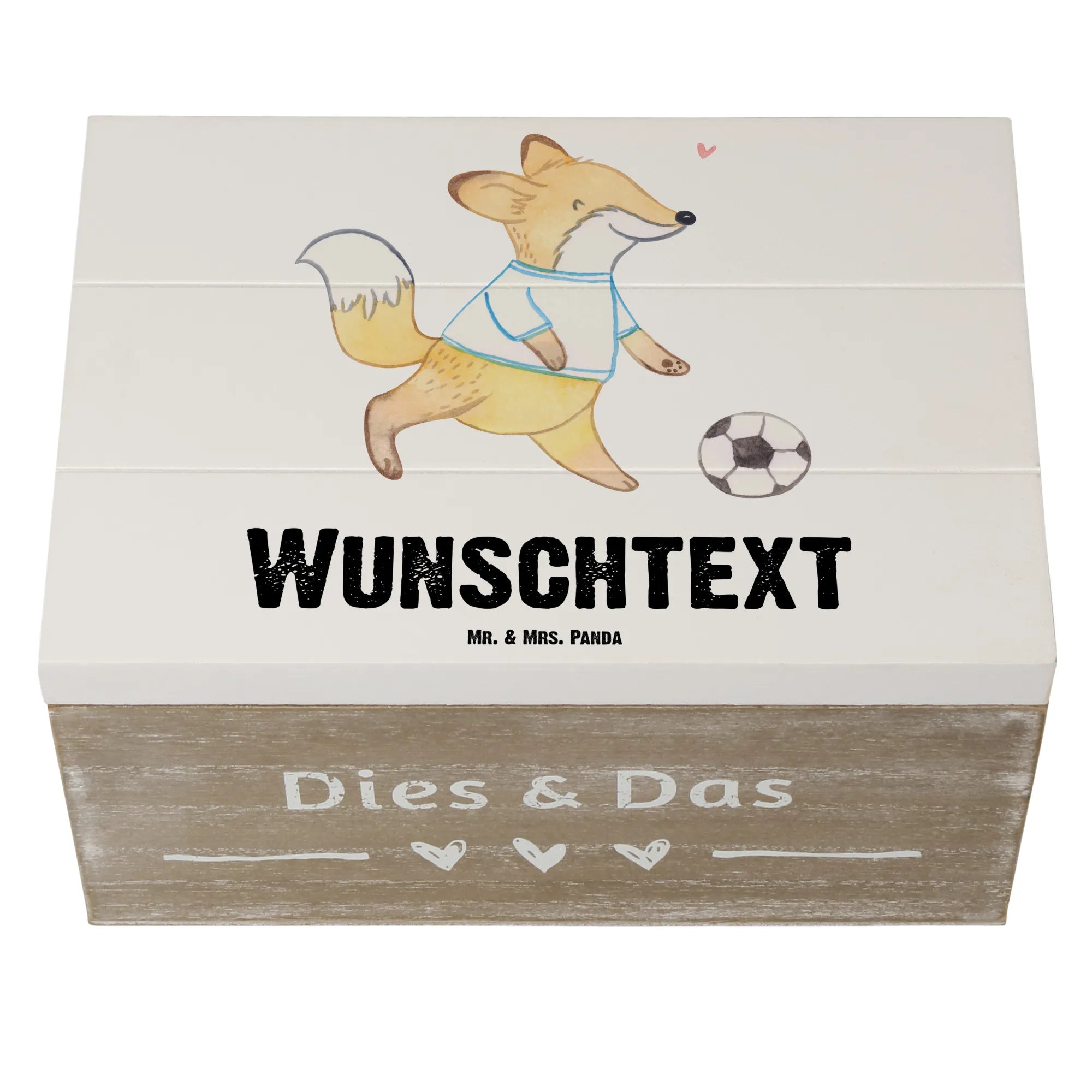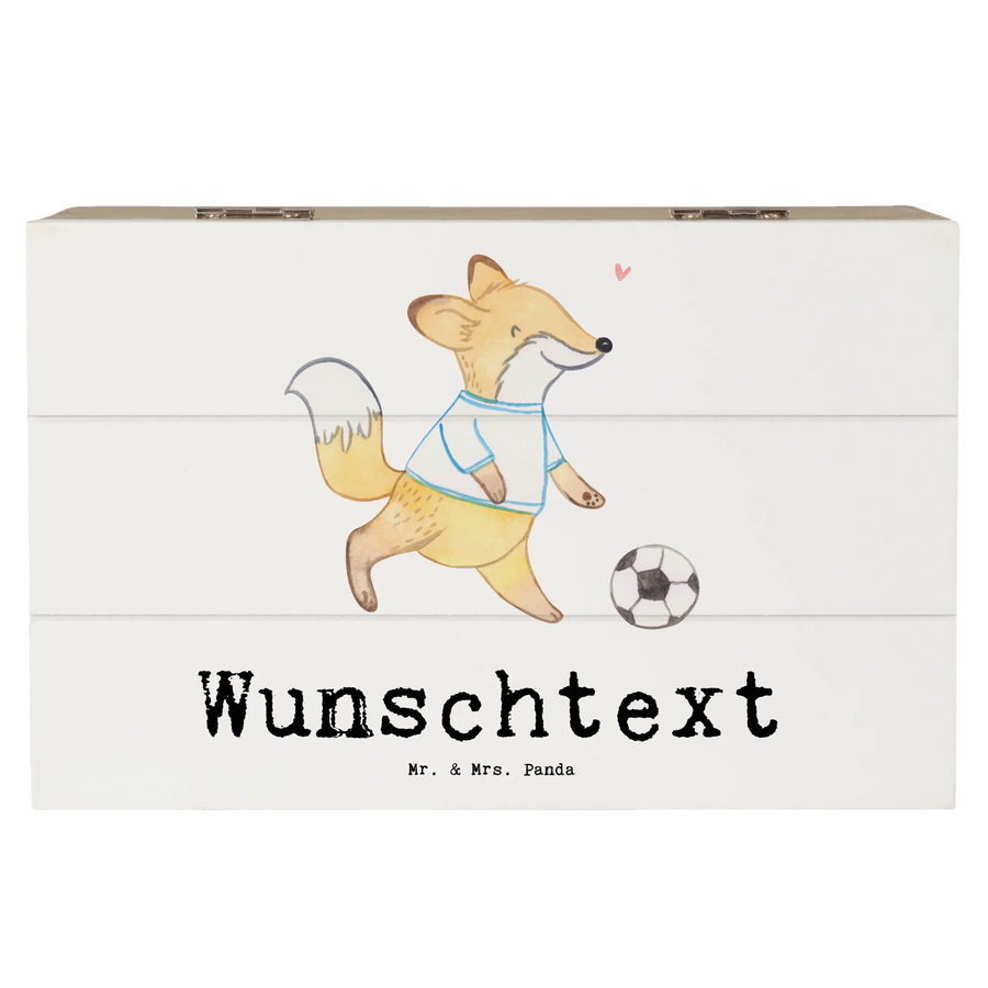 Personalizowane drewniane pudełko Lis grać w piłkę nożną - 19 x 12 cm - biały