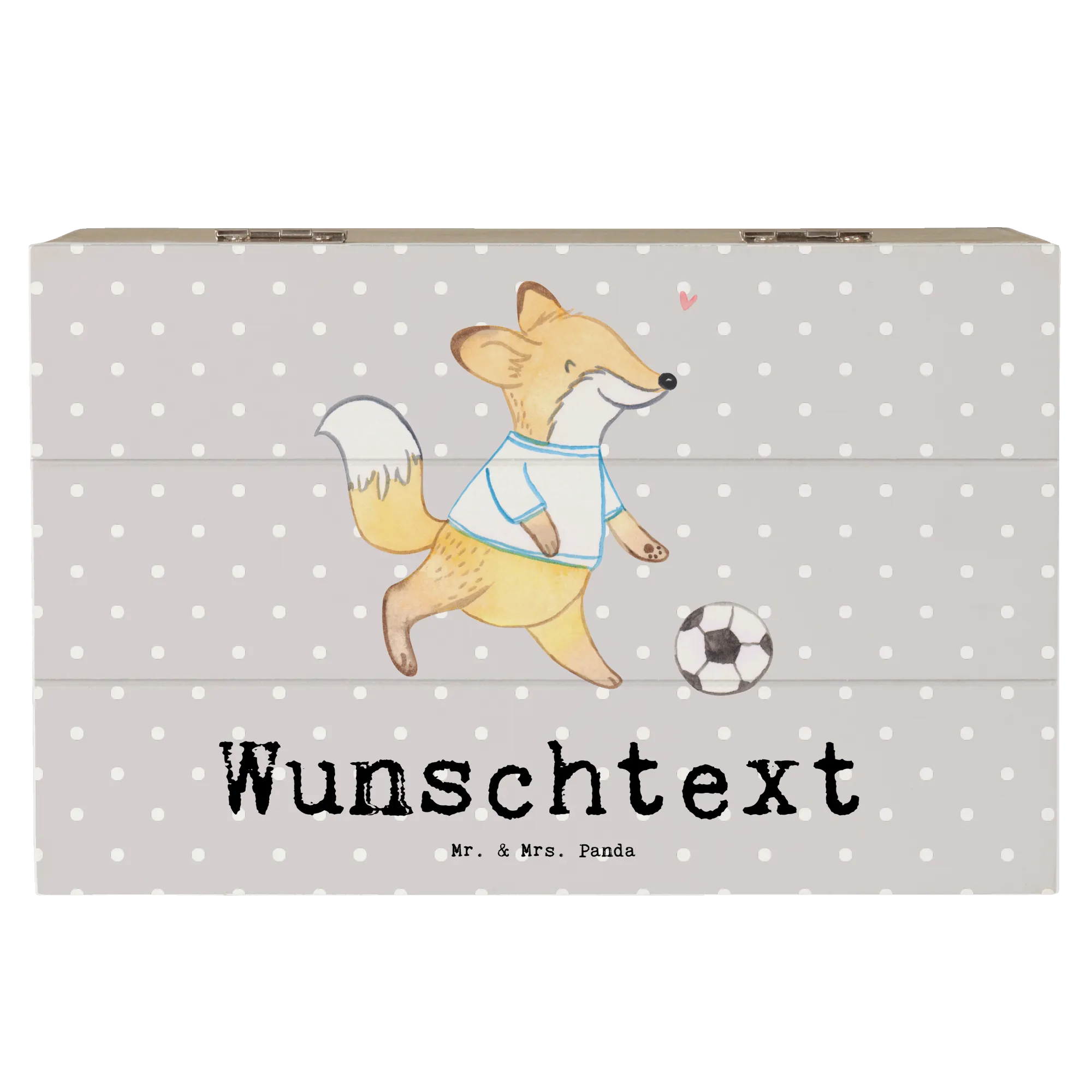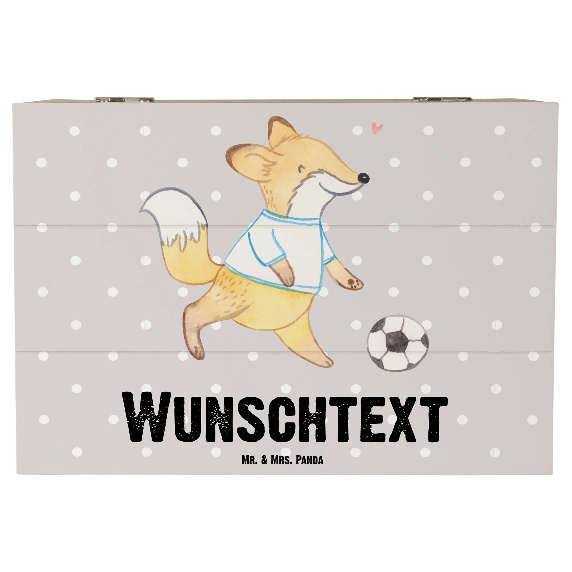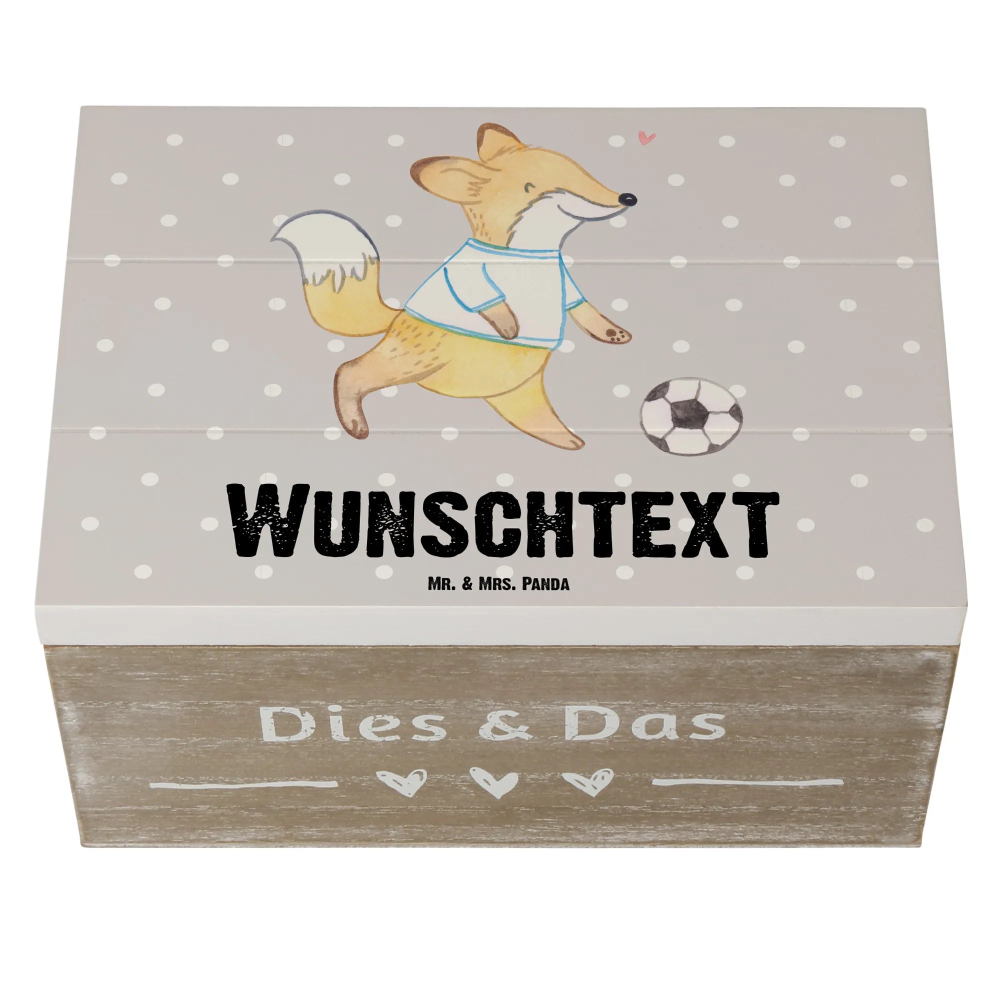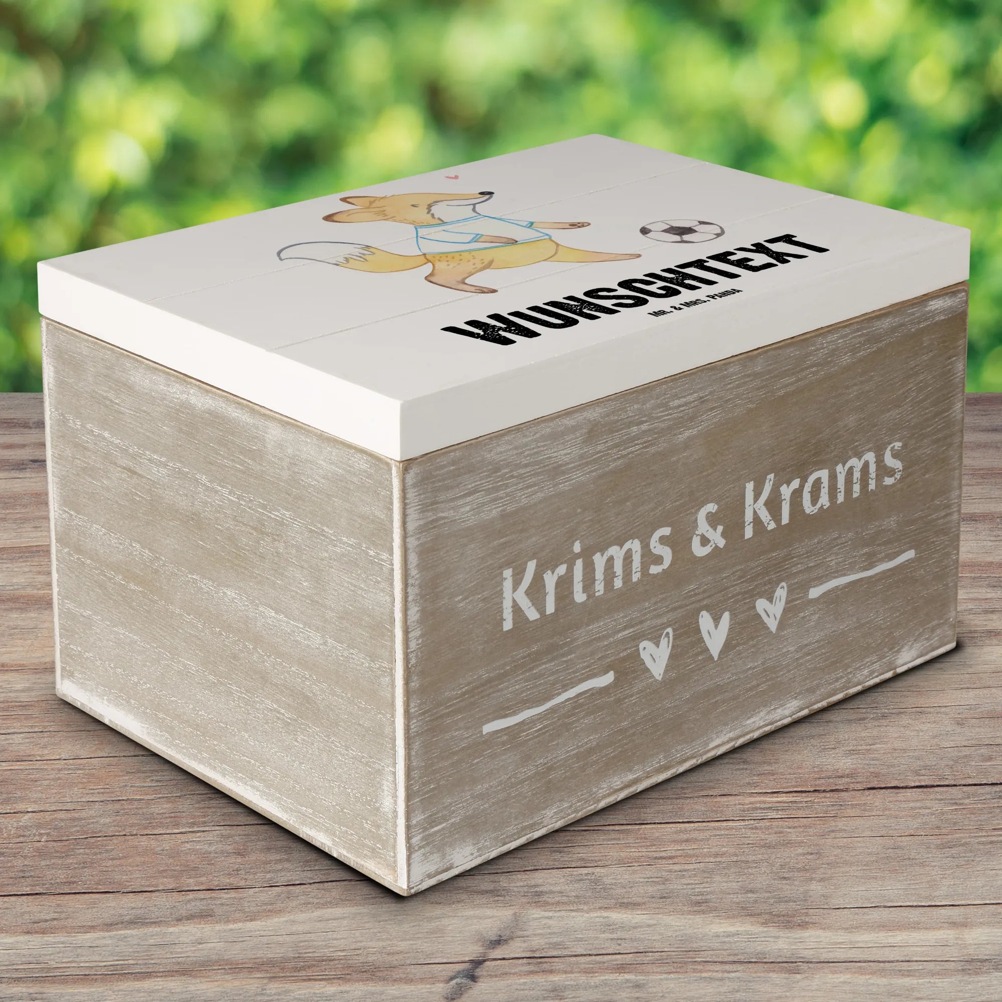 Personalizowane drewniane pudełko Lis grać w piłkę nożną - 19 x 12 cm - biały