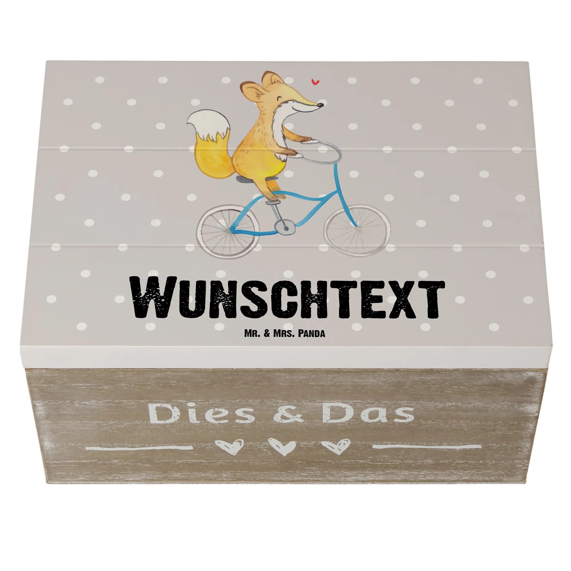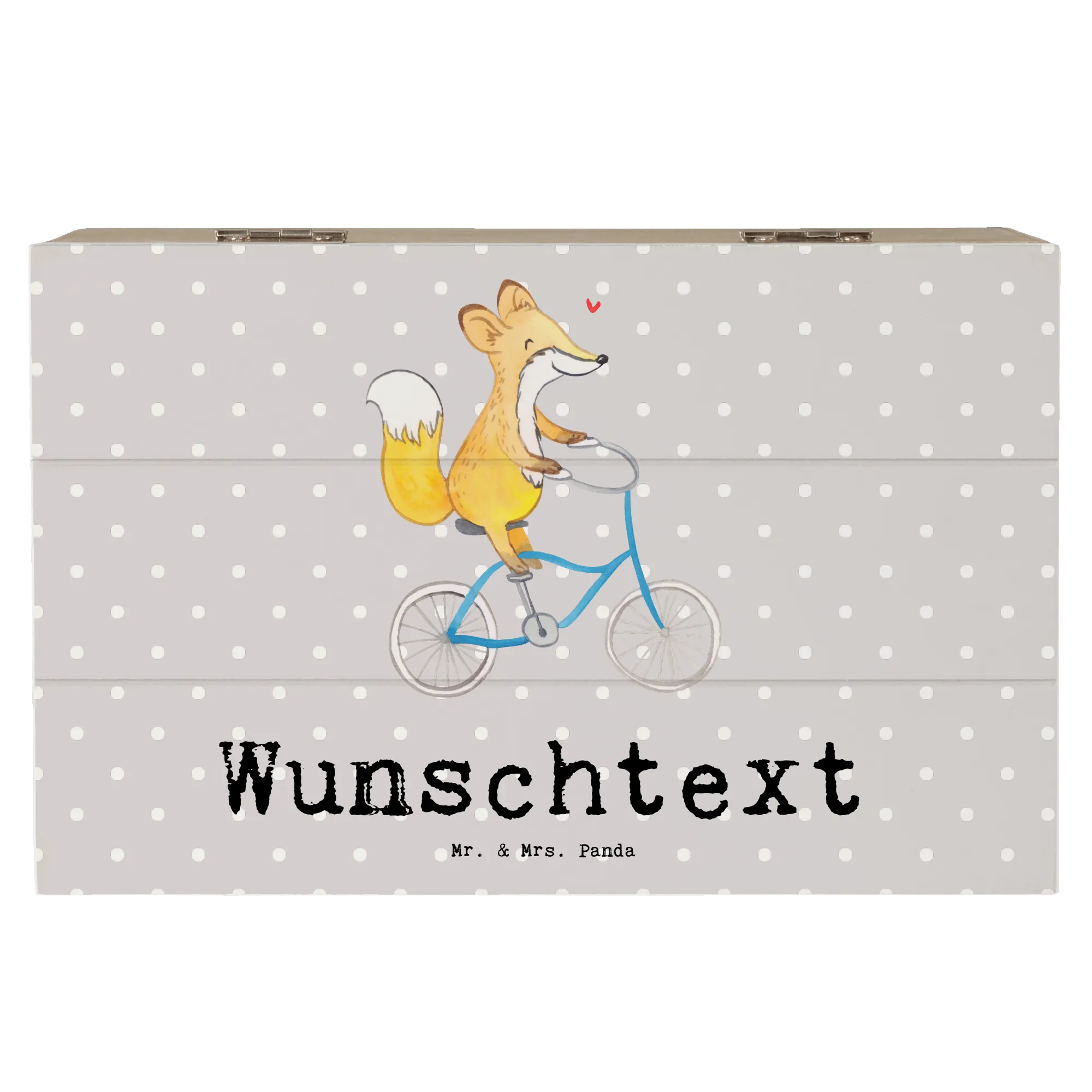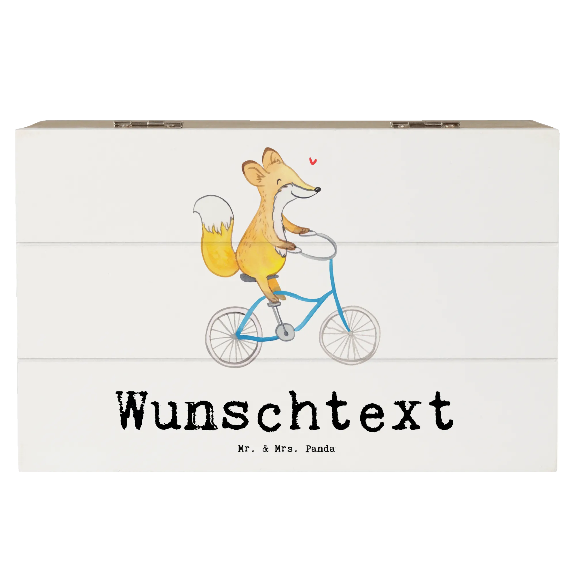 Personalizowane drewniane pudełko Lis Jazda na rowerze - 22 x 15 cm - biały