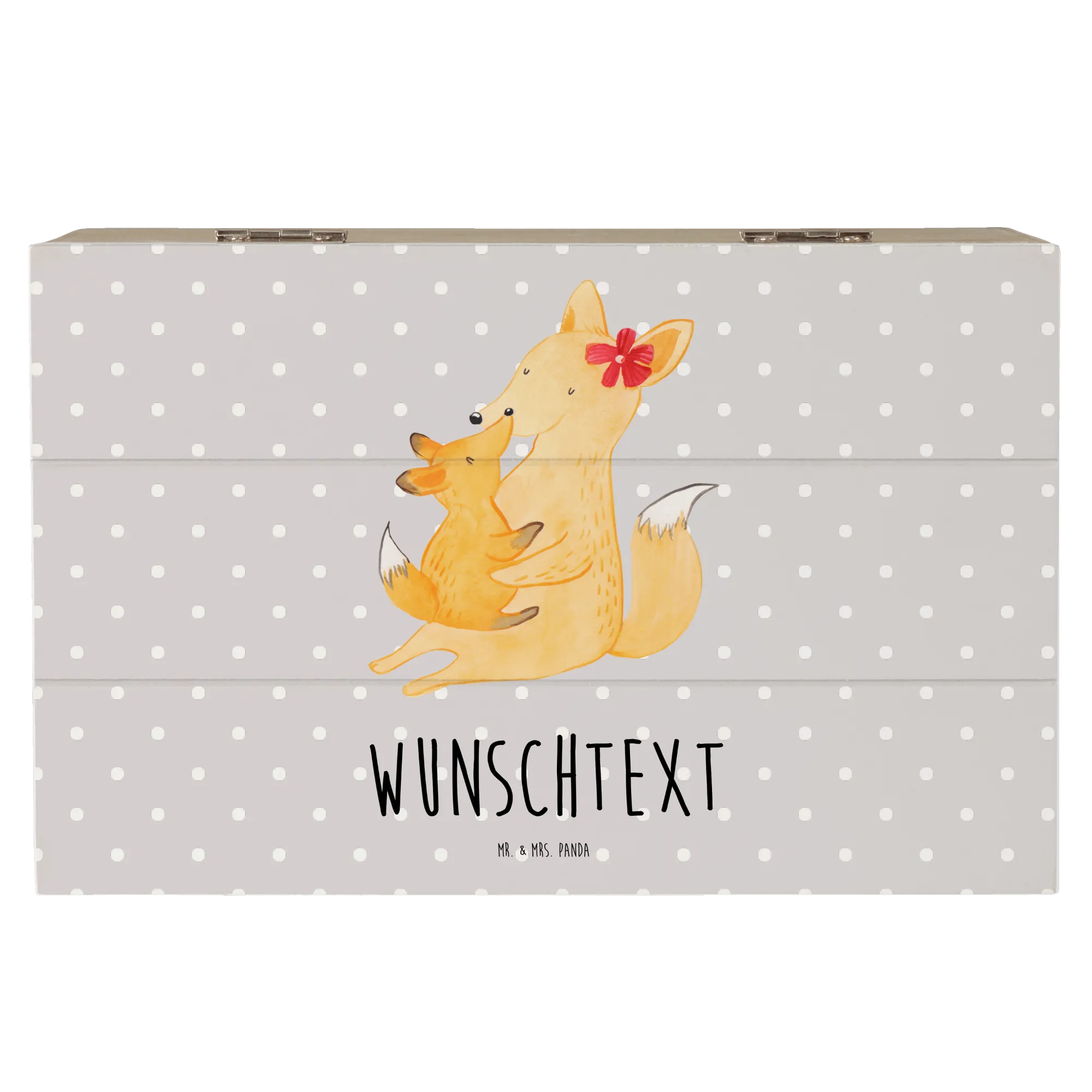 Personalizowane drewniane pudełko Lis Mama - 22 x 15 cm - biały