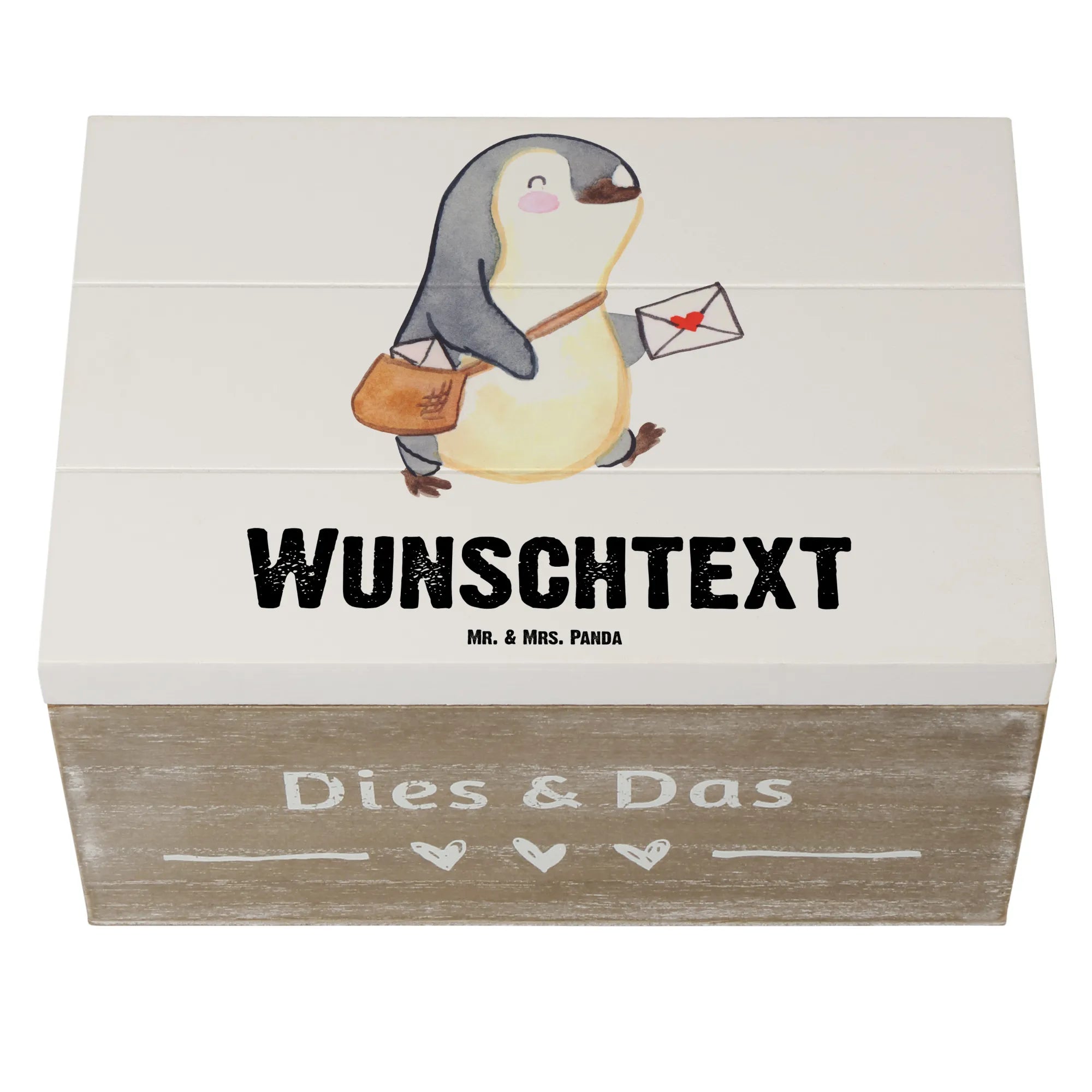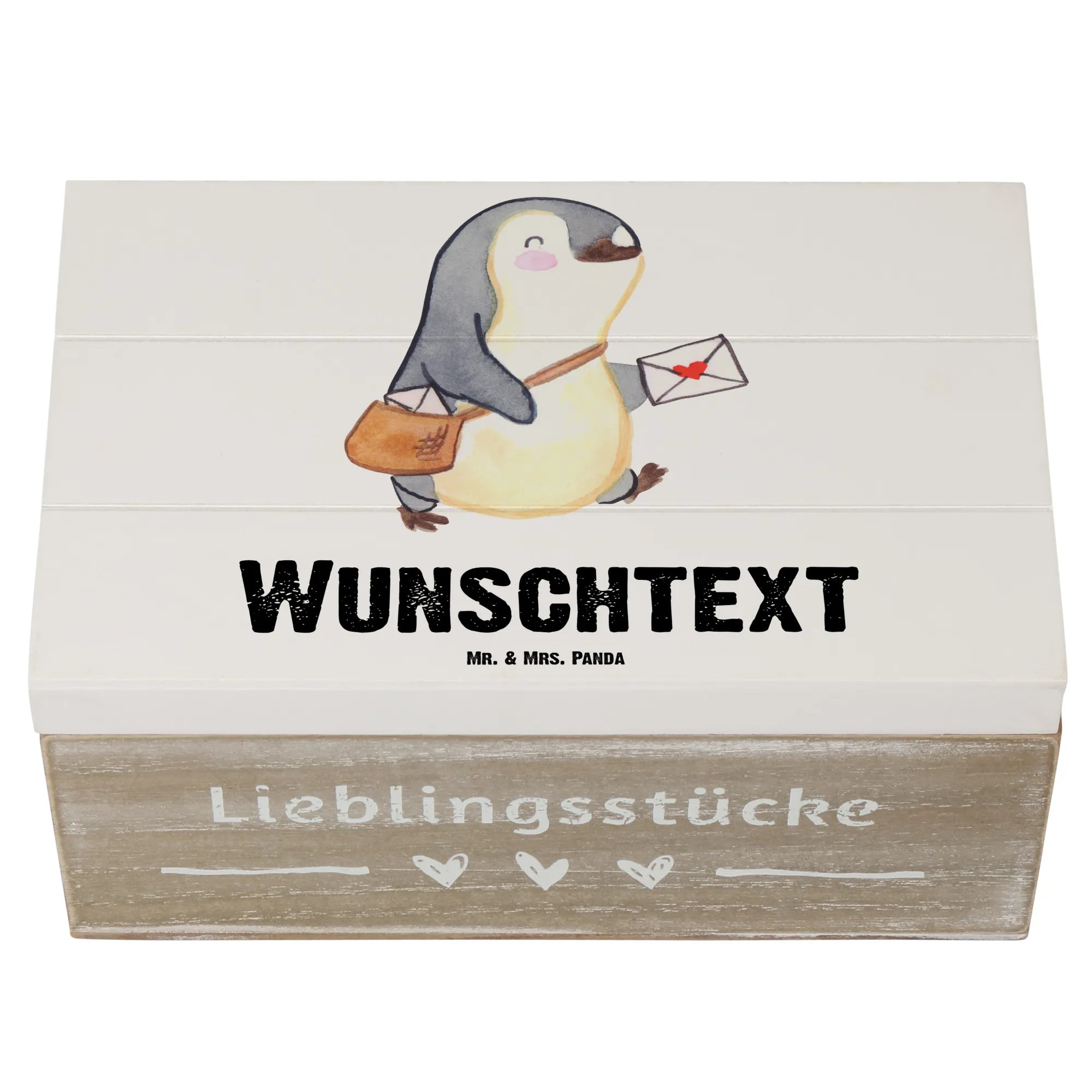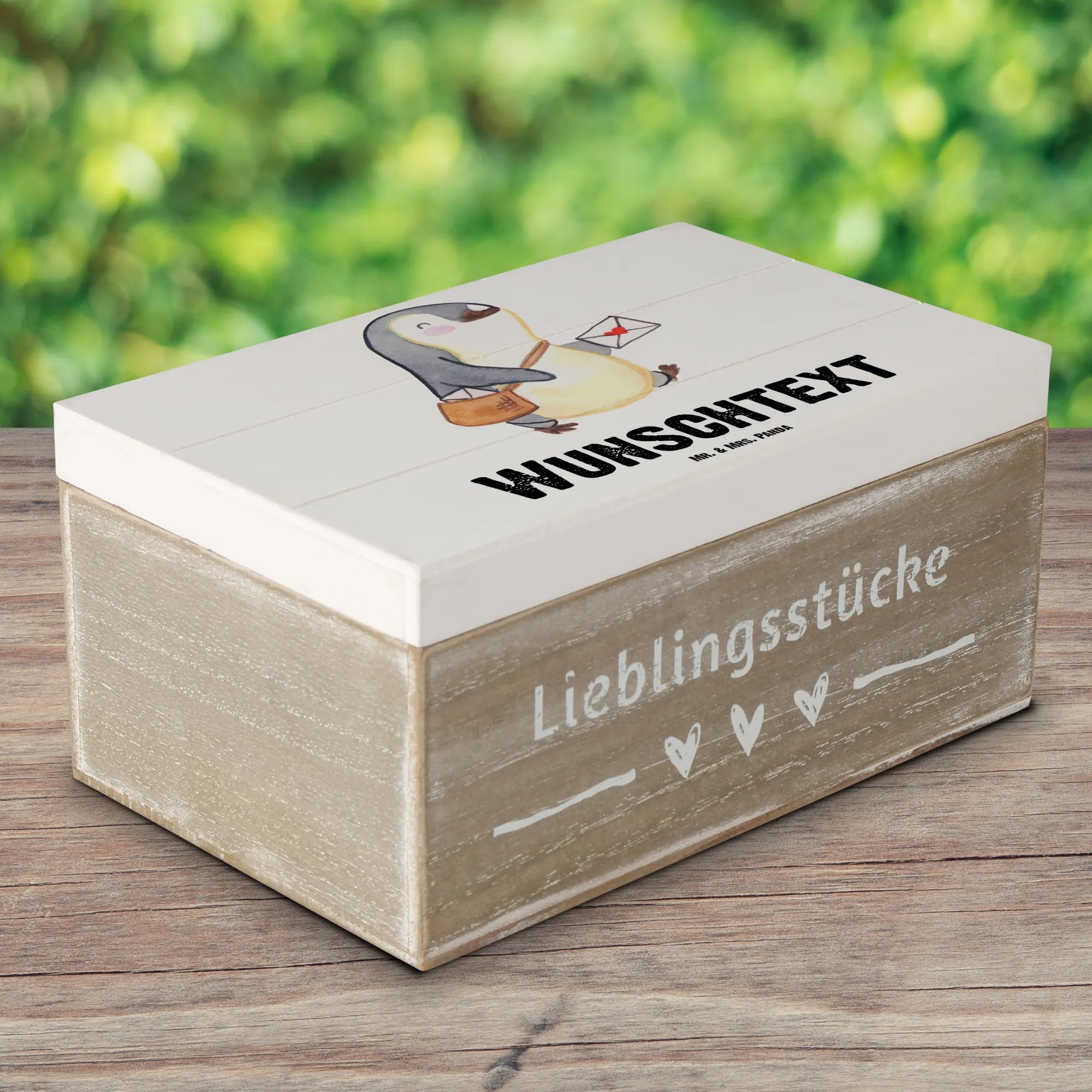 Personalizowane drewniane pudełko Listonosz serce - 22 x 15 cm - Biały