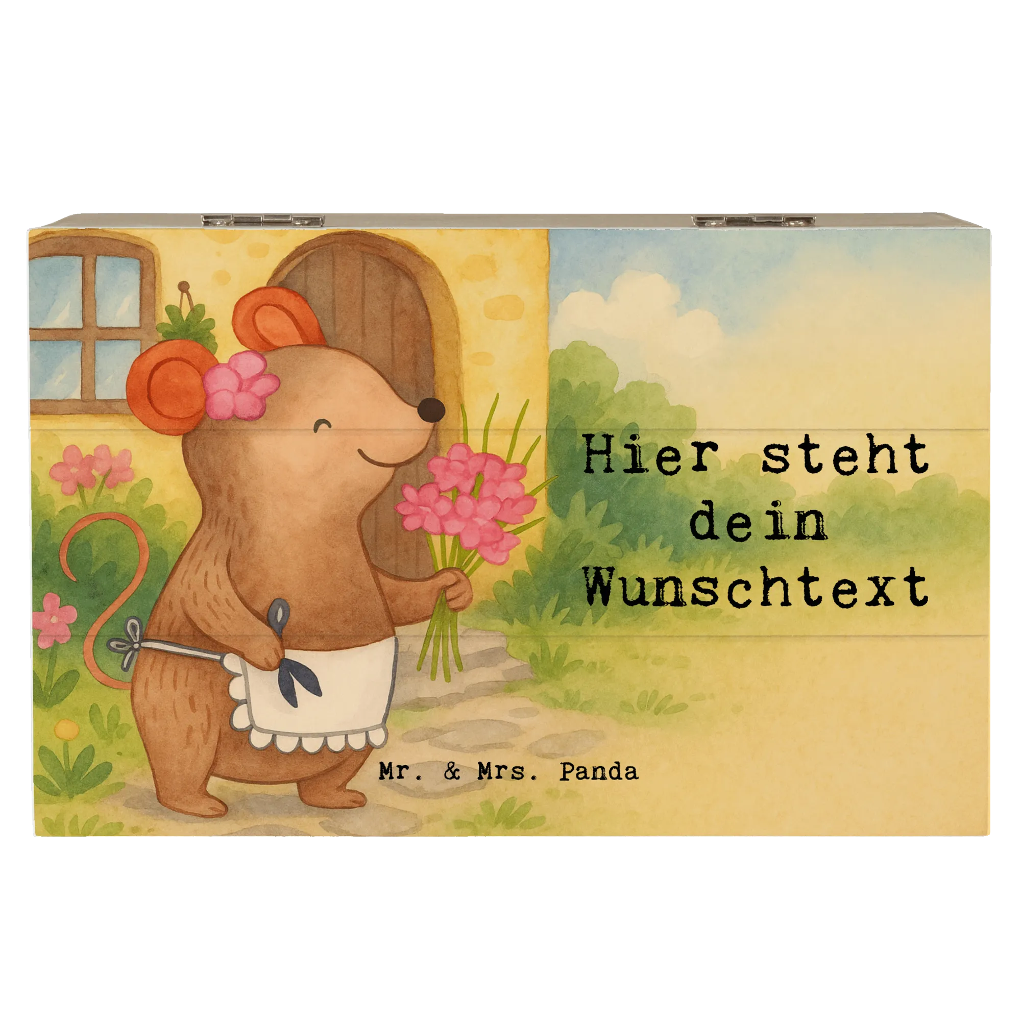 Personalizowane drewniane pudełko Mysz Najlepsza sąsiadka na świecie Design - 22 x 15 cm
