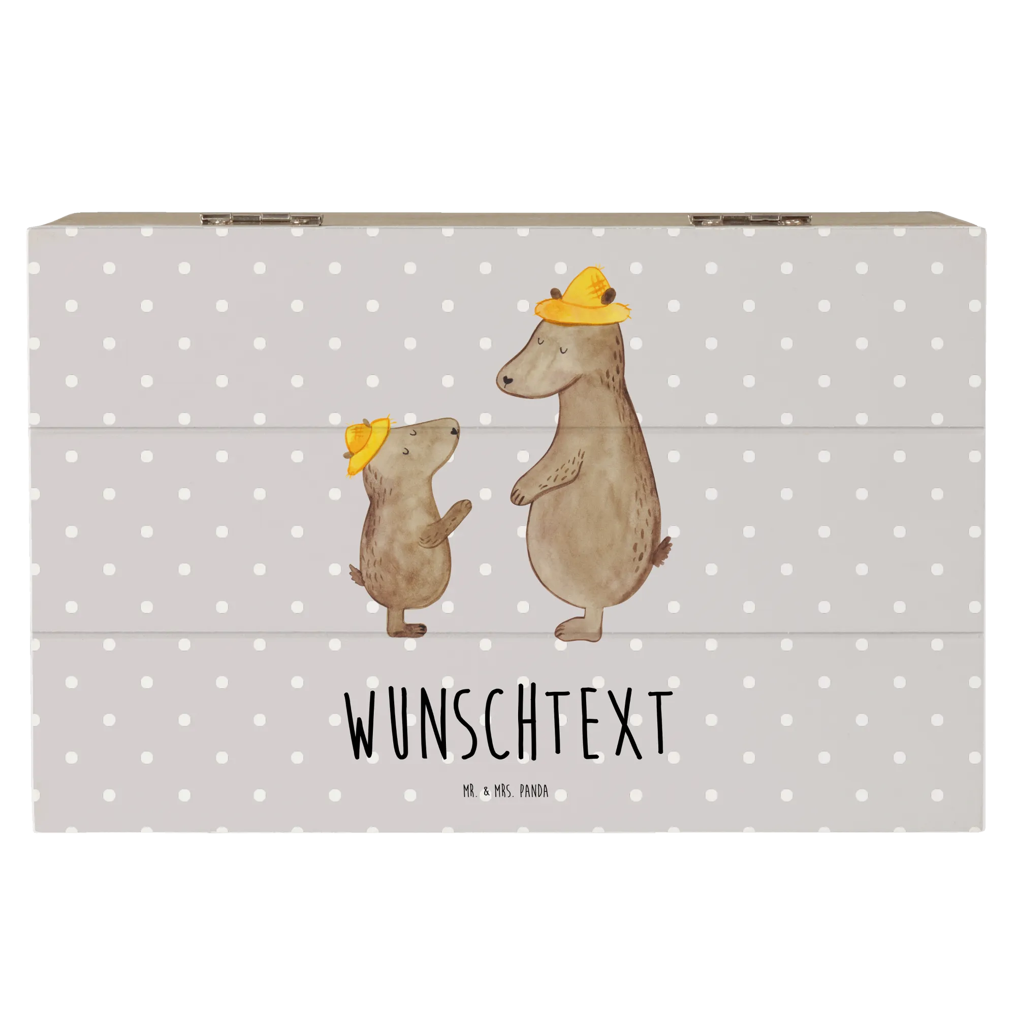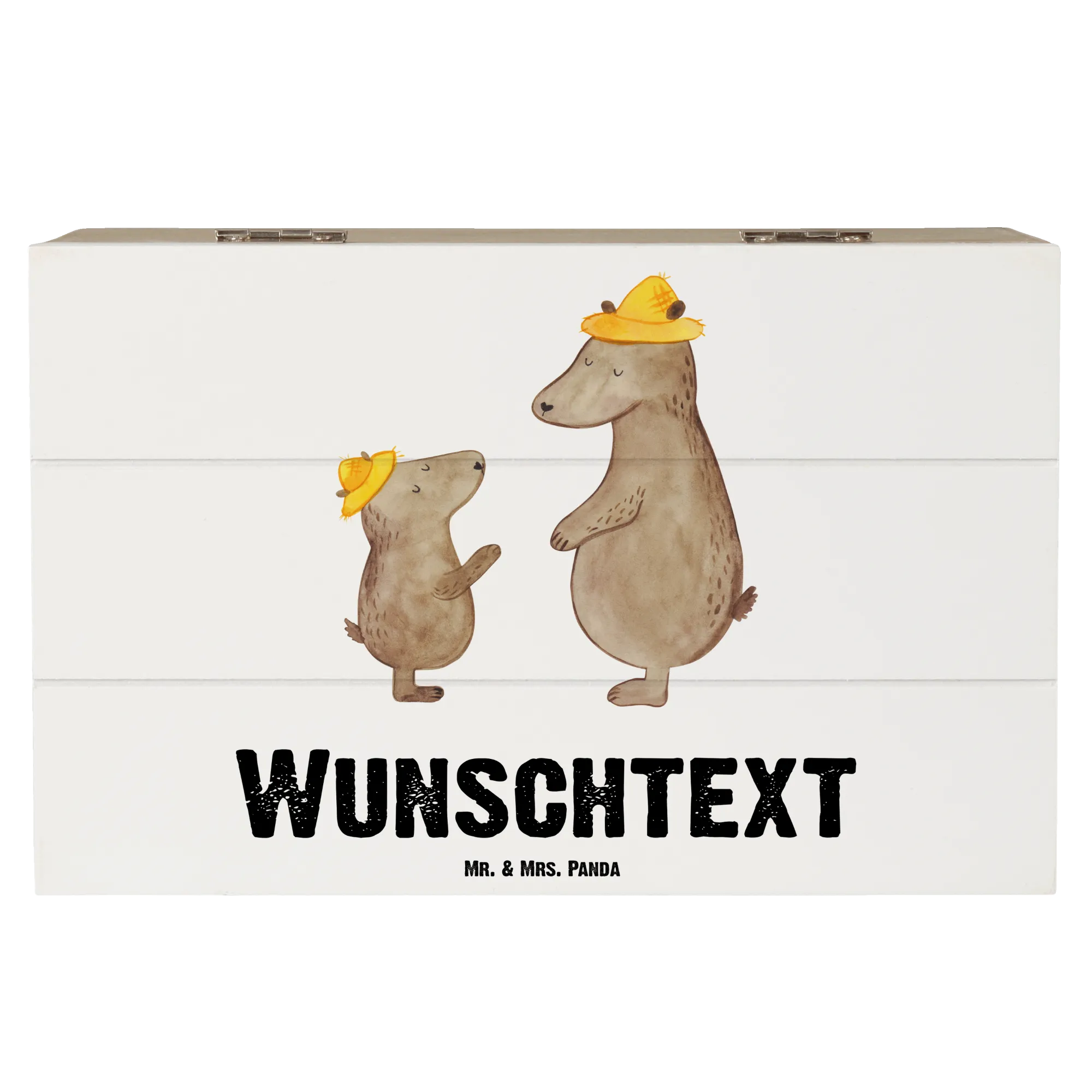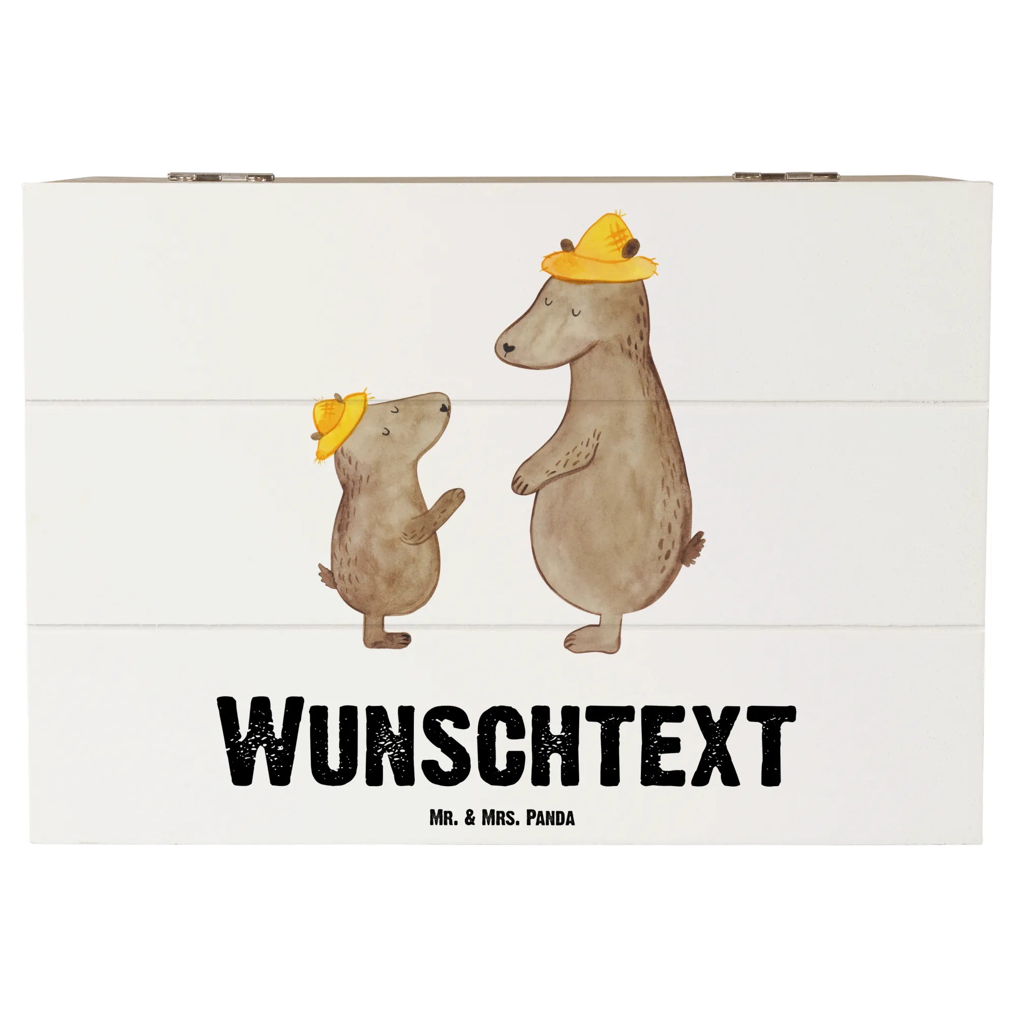 Personalizowane drewniane pudełko Niedźwiedzie z kapeluszami - 22 x 15 cm - Biały