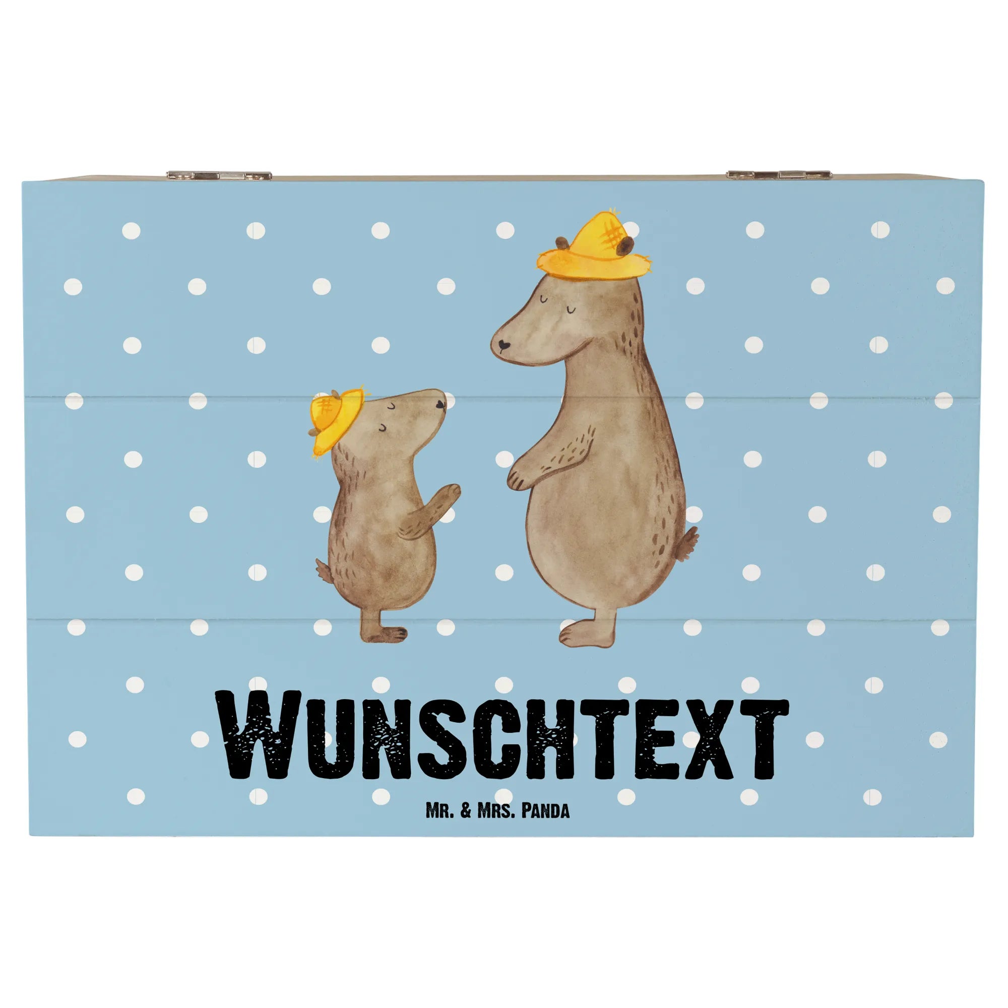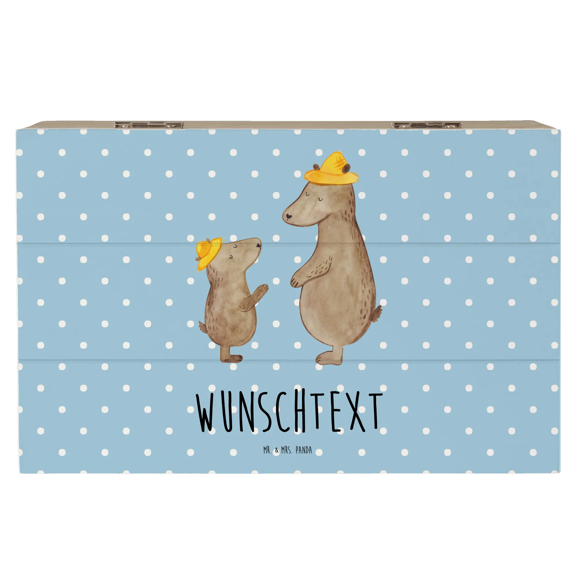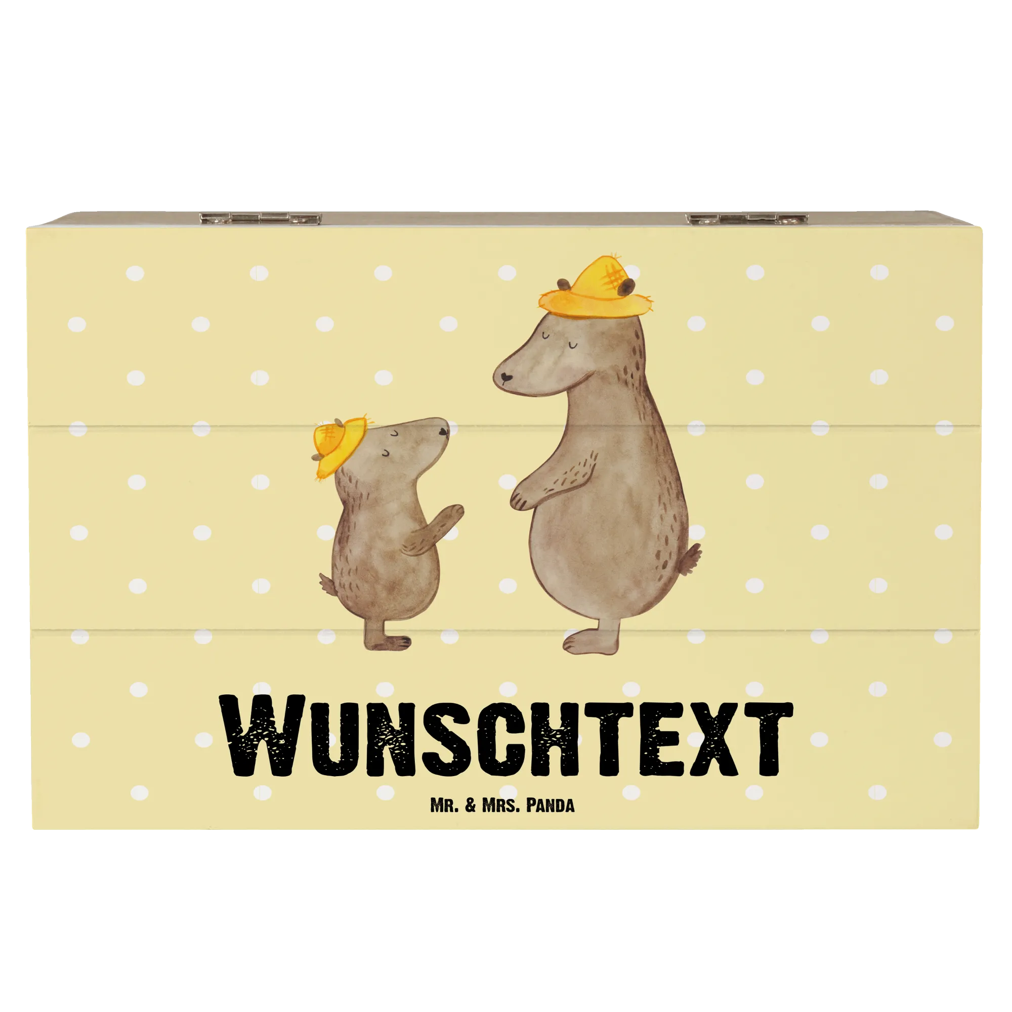 Personalizowane drewniane pudełko Niedźwiedzie z kapeluszami - 22 x 15 cm - Biały