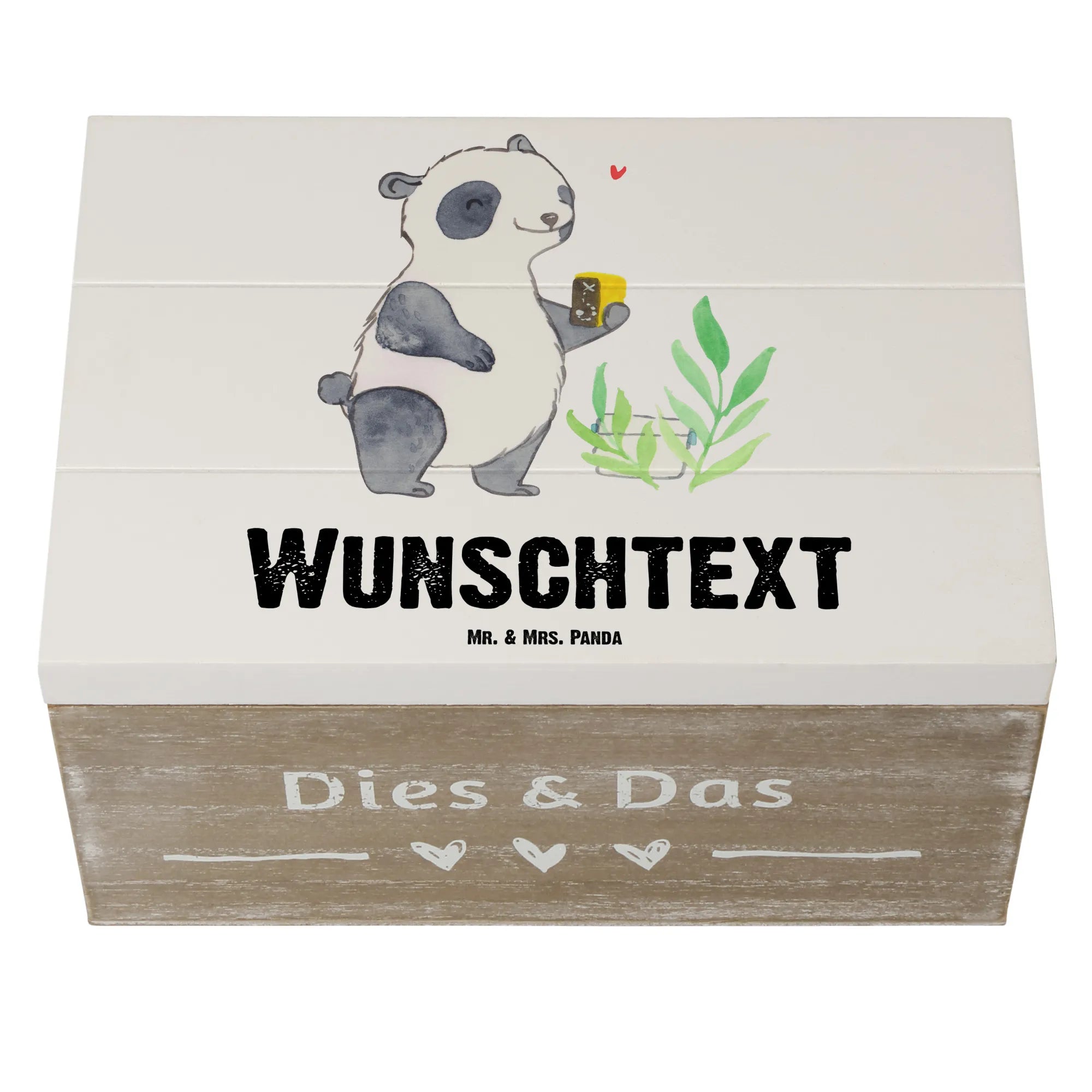 Personalizowane drewniane pudełko Panda Geocaching - 22 x 15 cm - Biały