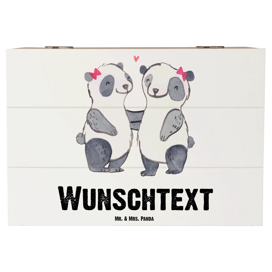 Personalizowane drewniane pudełko Panda Najlepsza ciocia na świecie - 22 x 15 cm - Biały