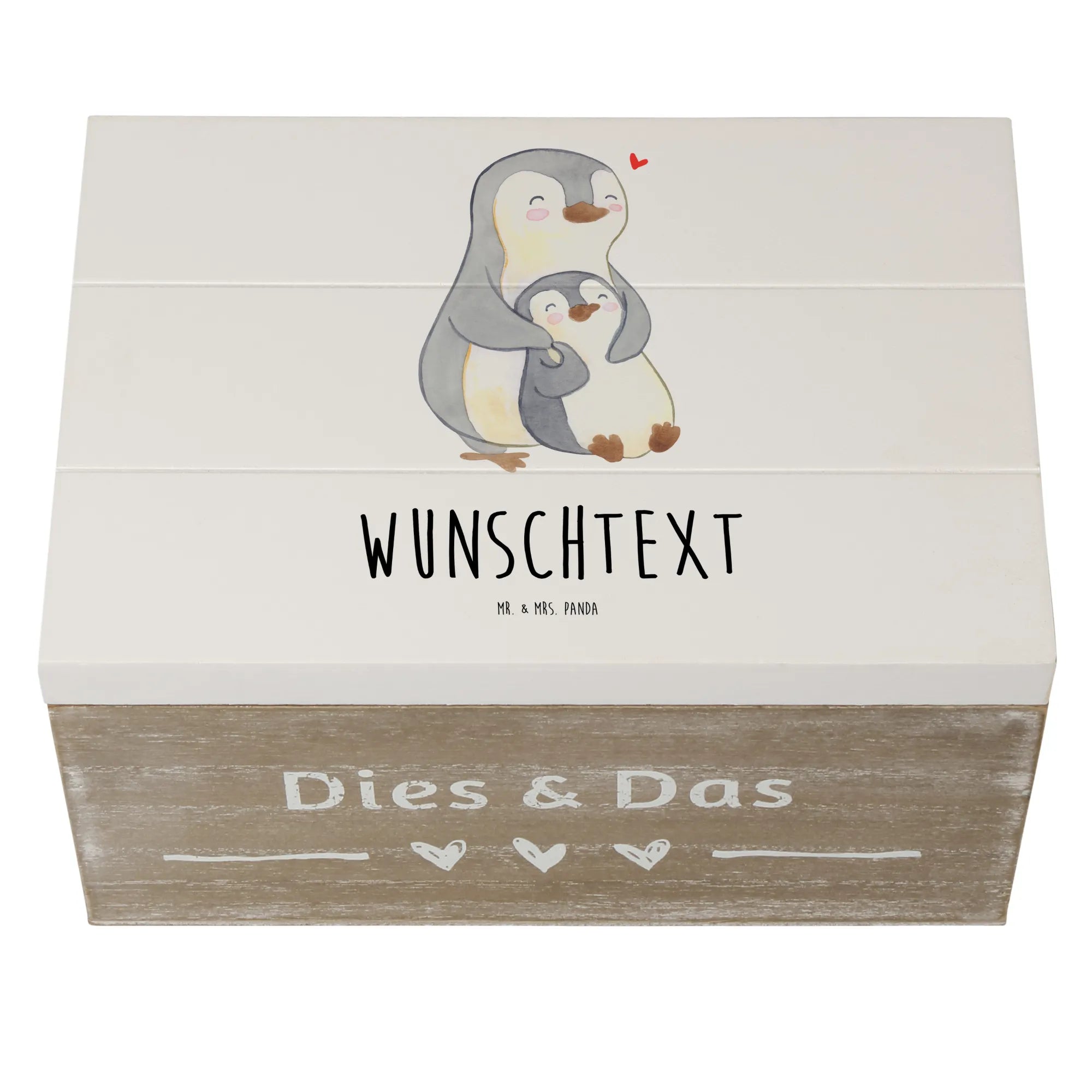 Personalizowane drewniane pudełko Pingwin Mamusia - 22 x 15 cm