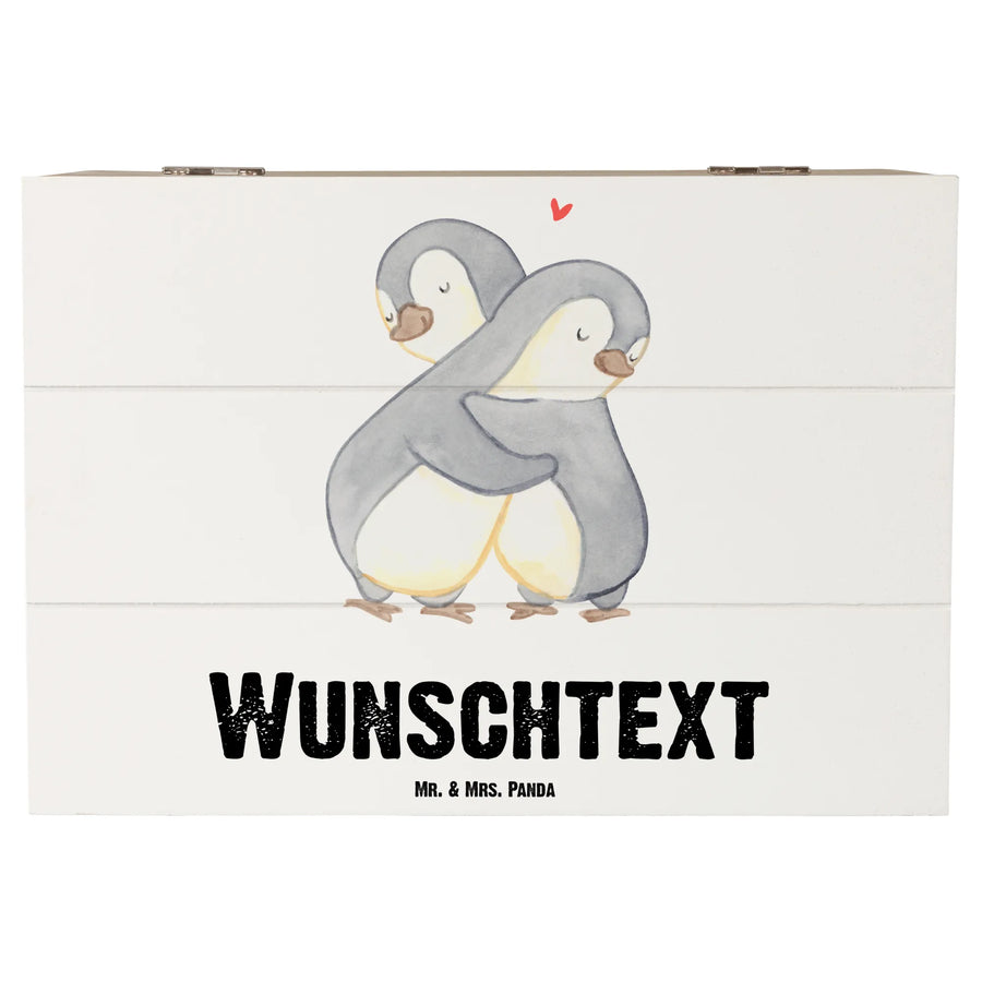Personalizowane drewniane pudełko Pingwin Najlepsza kuzynka na świecie - 22 x 15 cm - biały