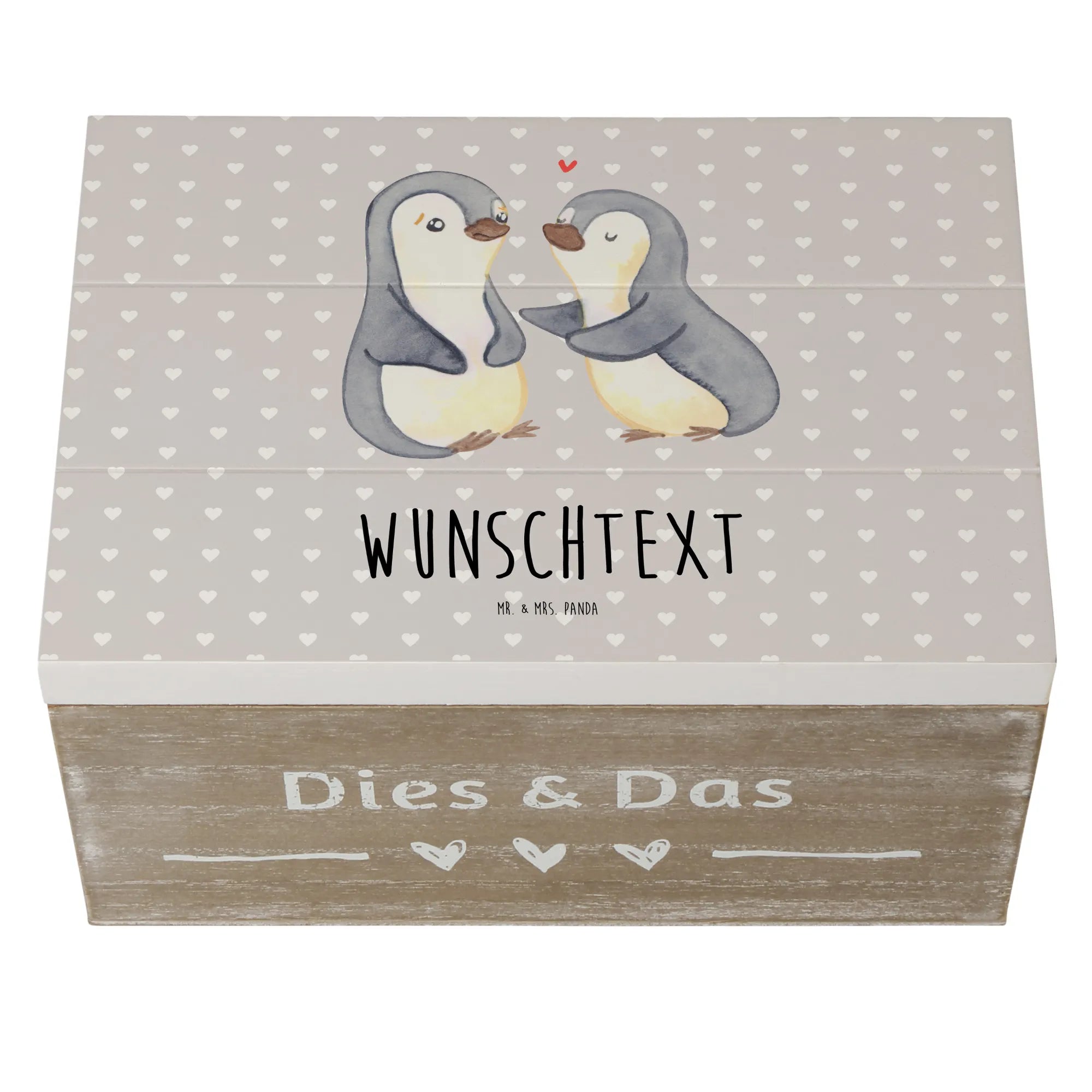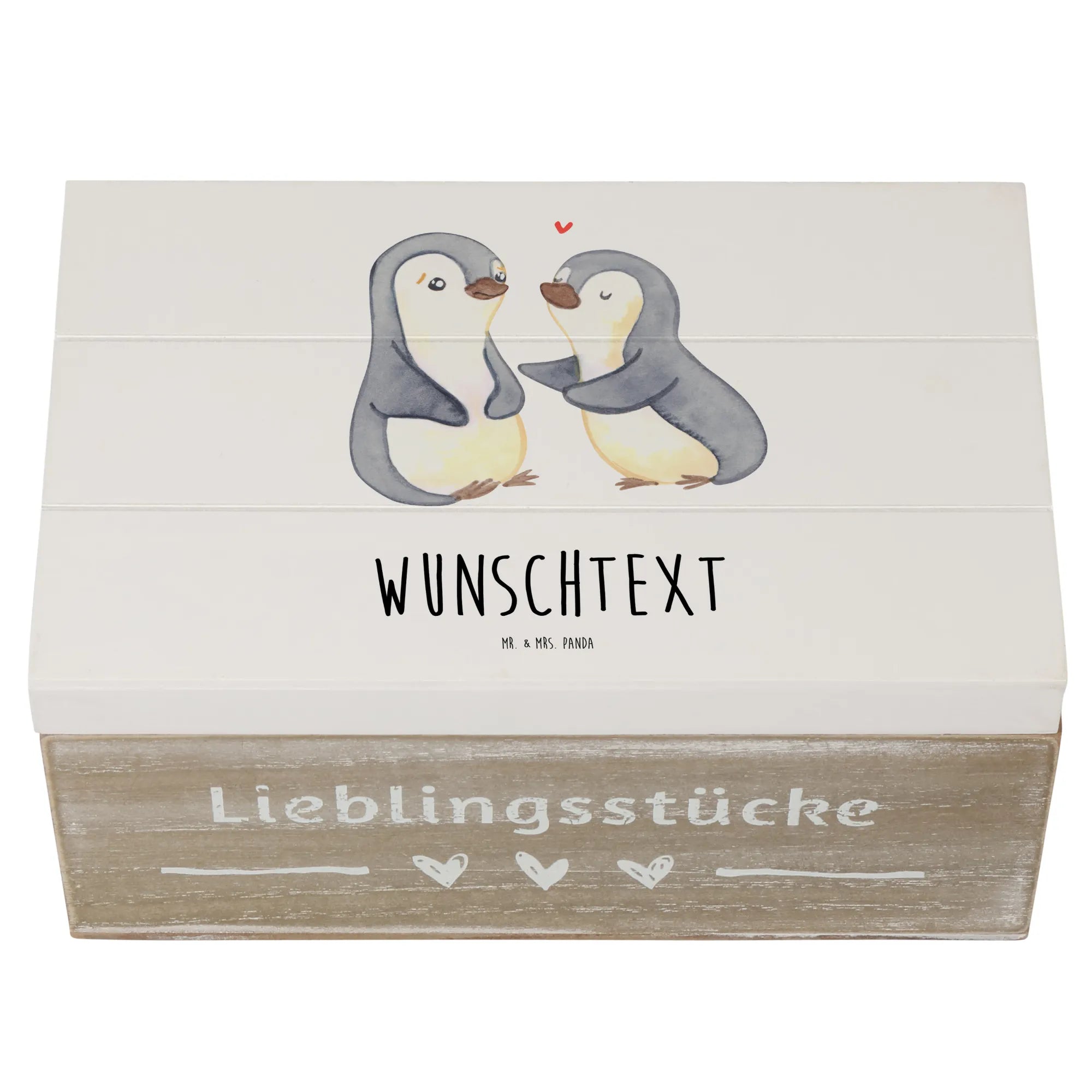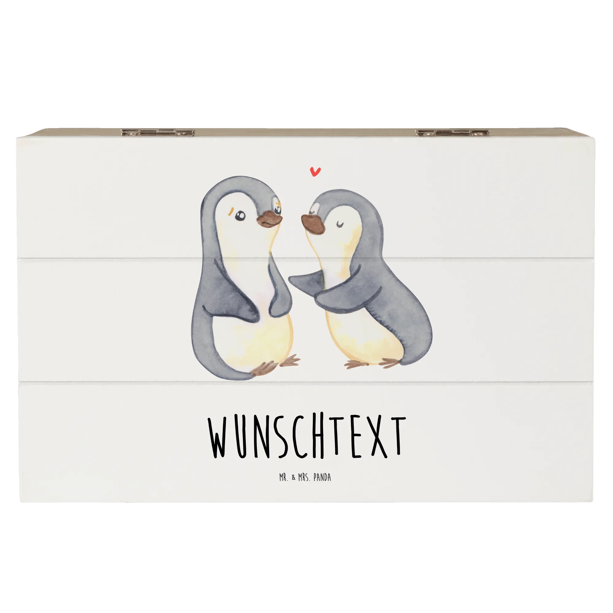Die personalisierte Holzkiste "Pinguine trösten" von Mr. & Mrs. Panda ist das perfekte Geschenk für jeden Anlass, insbesondere für den Valentinstag, Jahrestage oder einfach als Liebesbeweis. Diese wunderschöne Box ist nicht nur ein Aufbewahrungsort für deine wertvollsten Schätze, sondern auch ein liebevolles Erinnerungsstück.