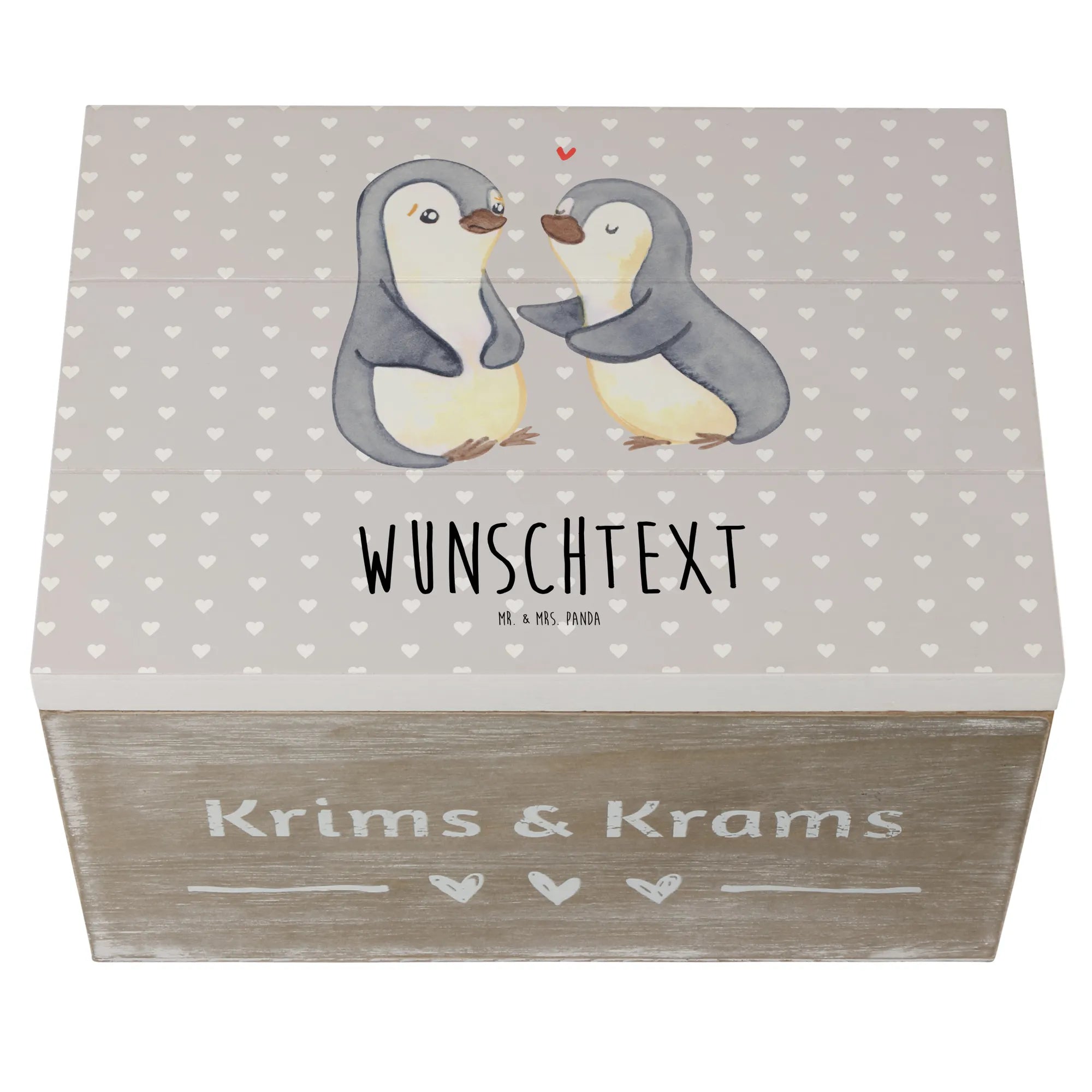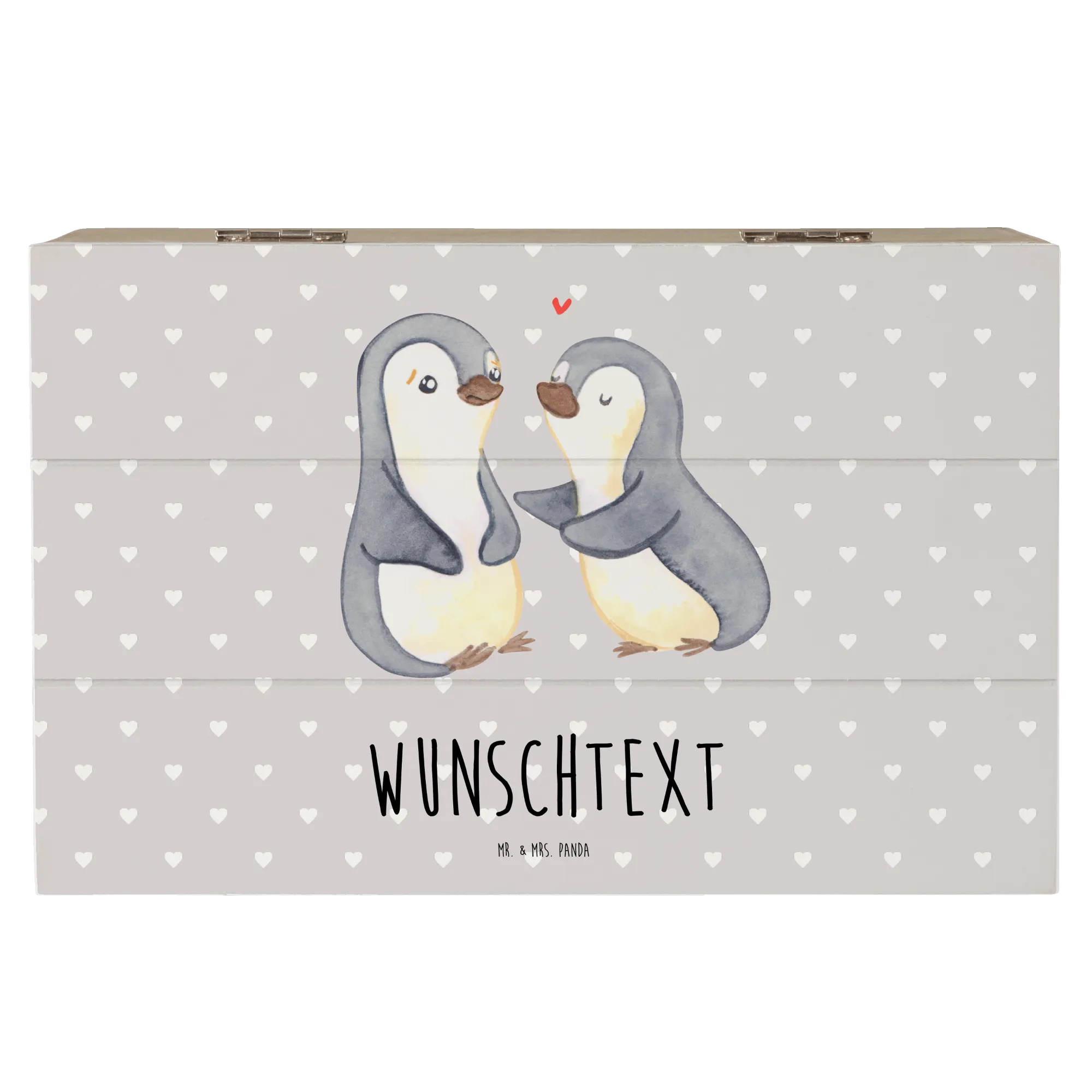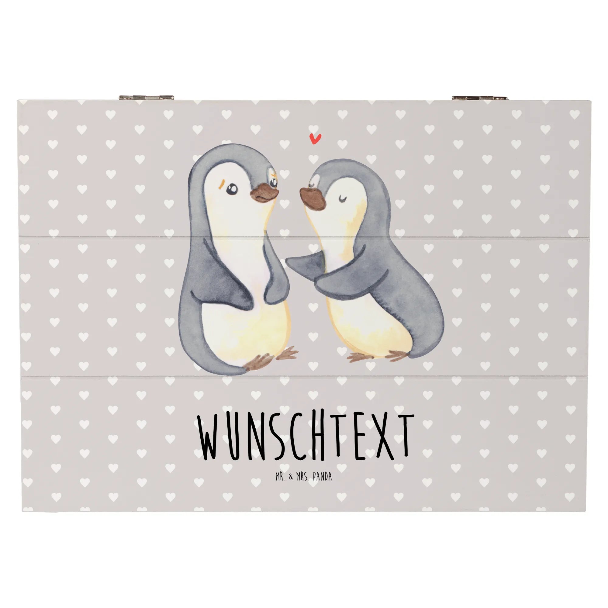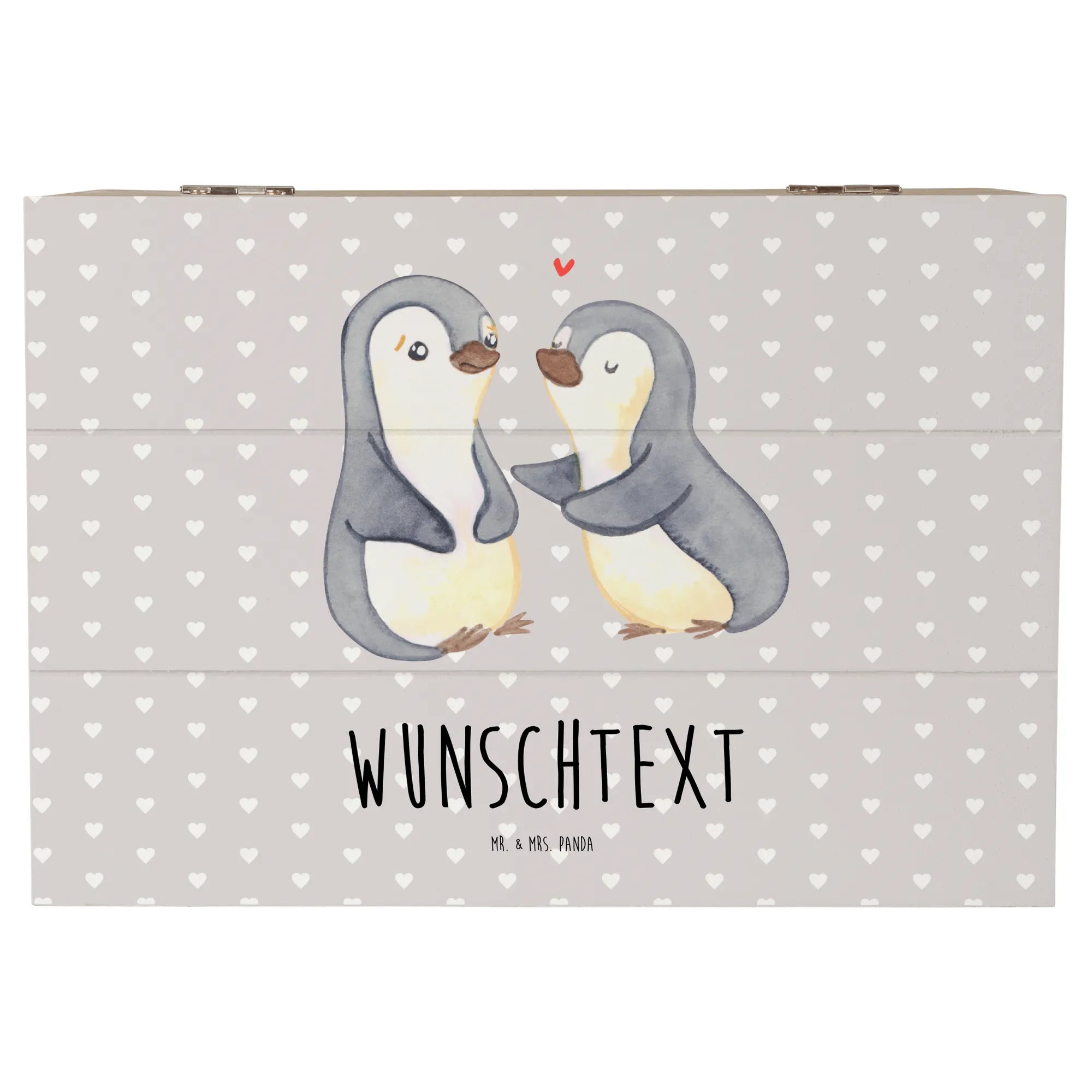 Die personalisierte Holzkiste "Pinguine trösten" von Mr. & Mrs. Panda ist das perfekte Geschenk für jeden Anlass, insbesondere für den Valentinstag, Jahrestage oder einfach als Liebesbeweis. Diese wunderschöne Box ist nicht nur ein Aufbewahrungsort für deine wertvollsten Schätze, sondern auch ein liebevolles Erinnerungsstück.