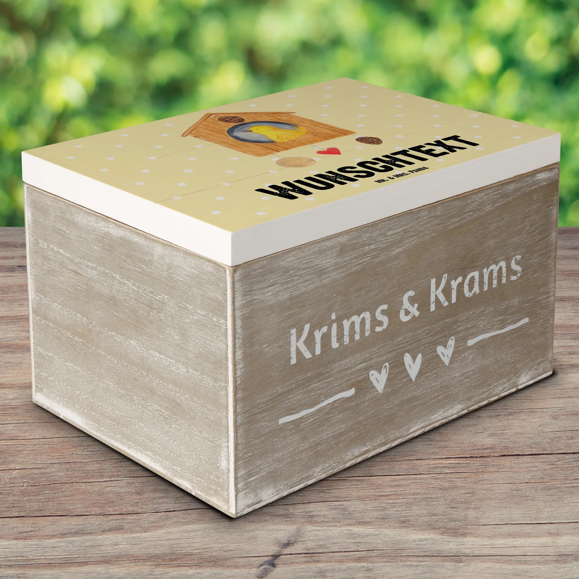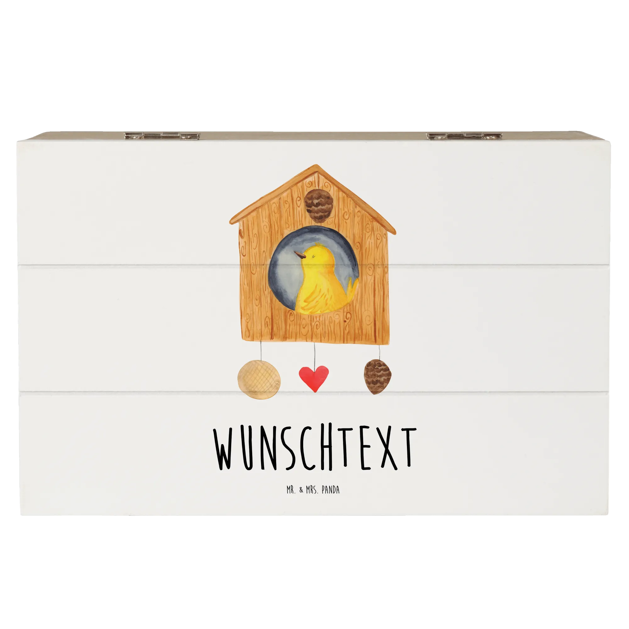 Personalizowane drewniane pudełko ptak Dom - 22 x 15 cm - Biały