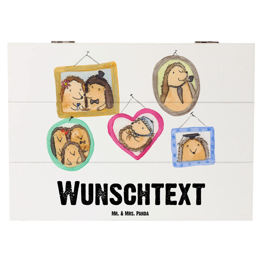 Personalizowane drewniane pudełko Rodzina jeży - 25 x 18 cm - Biały