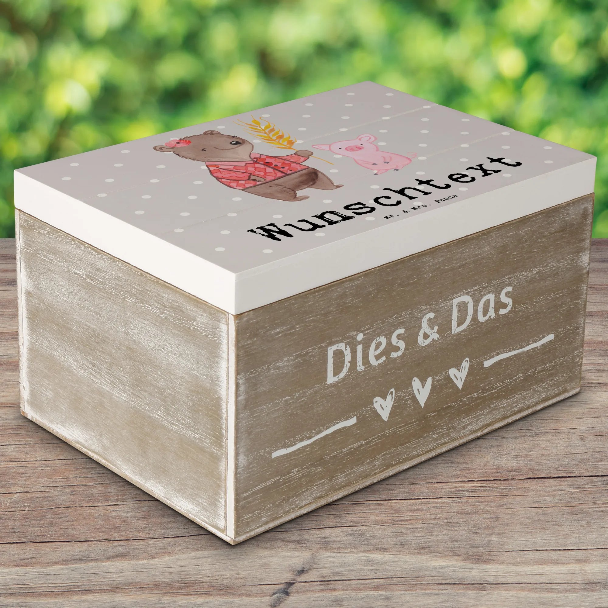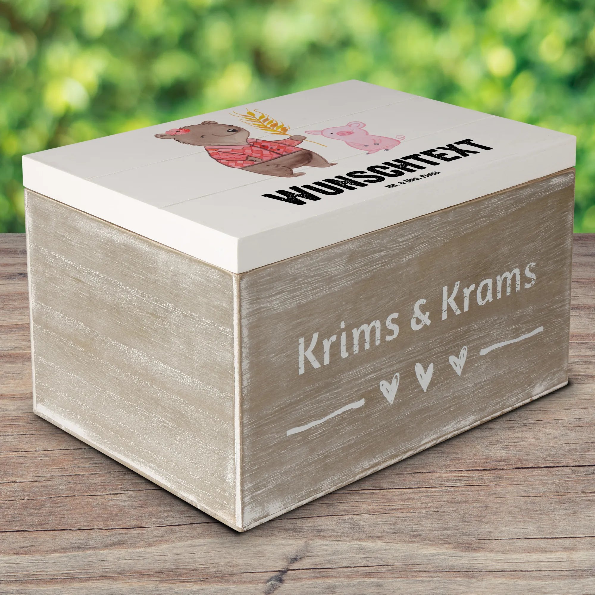 Personalizowane drewniane pudełko rolniczka serce - 22 x 15 cm - Biały
