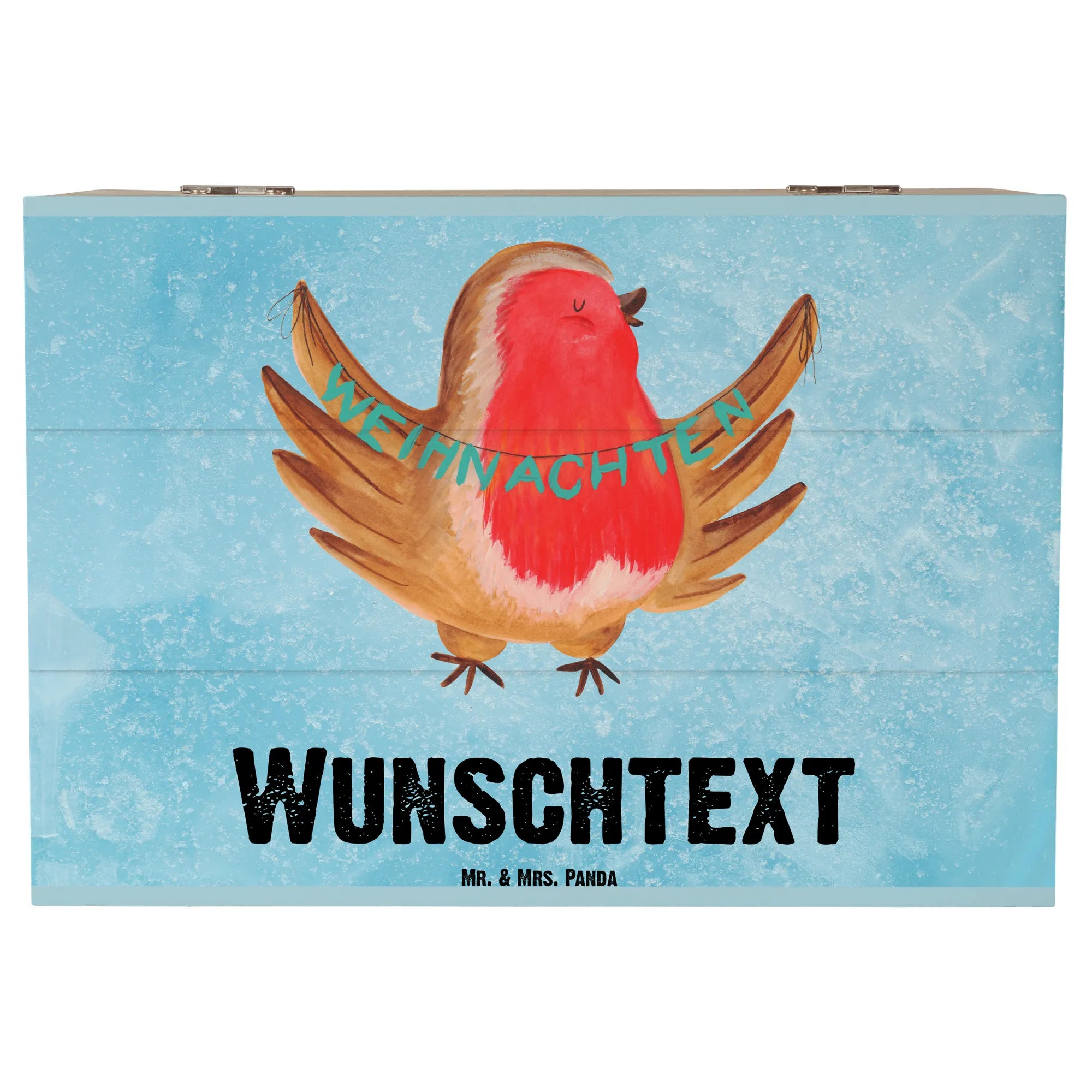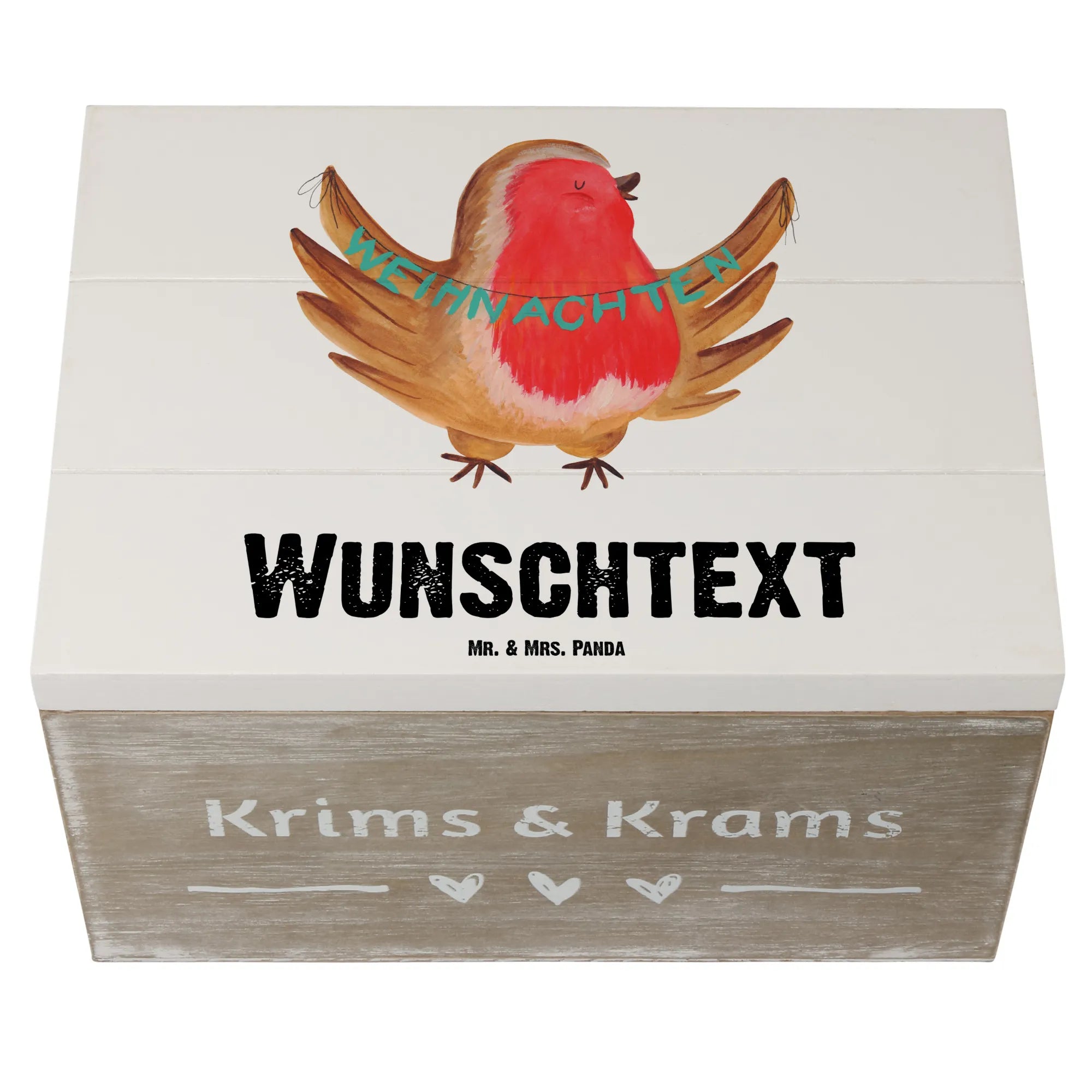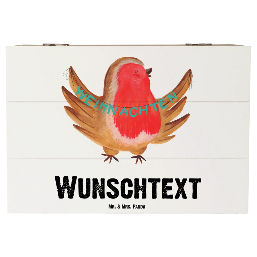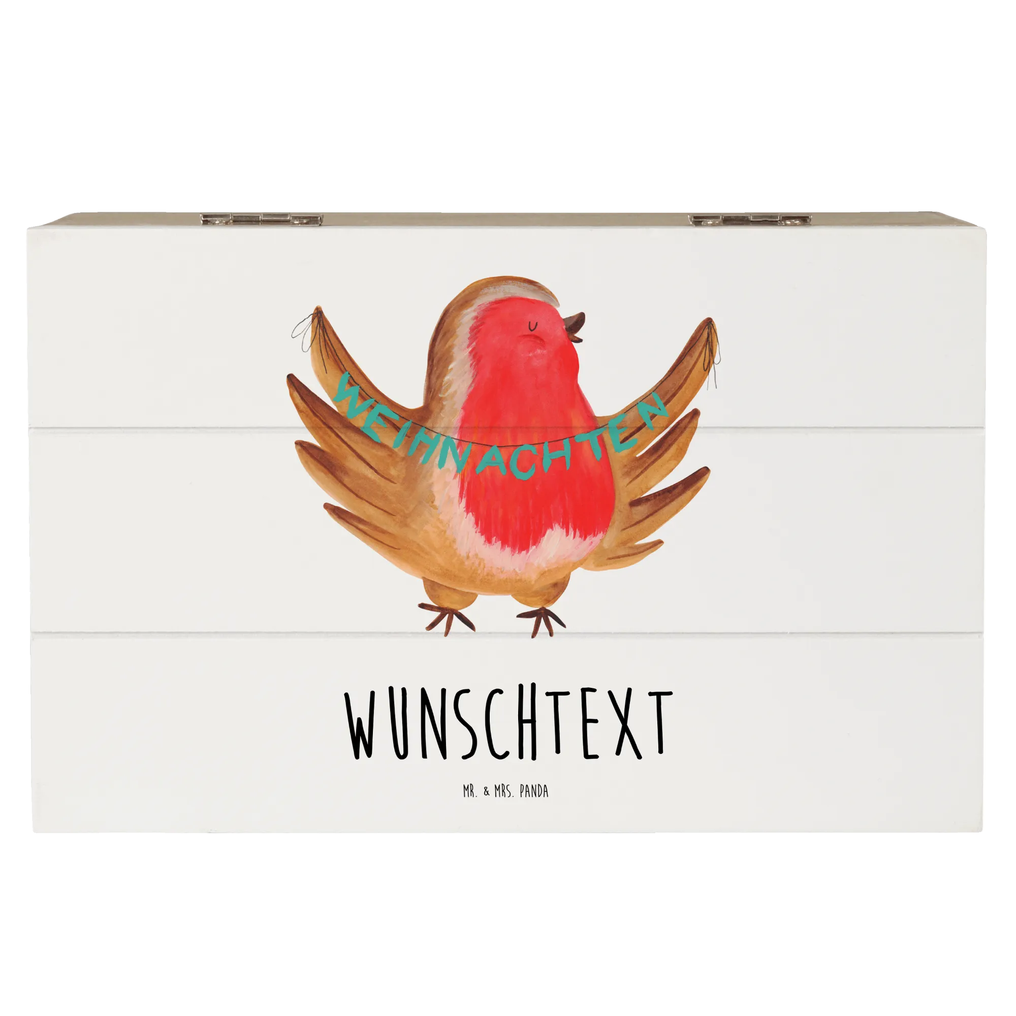 Personalizowane drewniane pudełko rudzik Boże Narodzenie - 22 x 15 cm - Biały