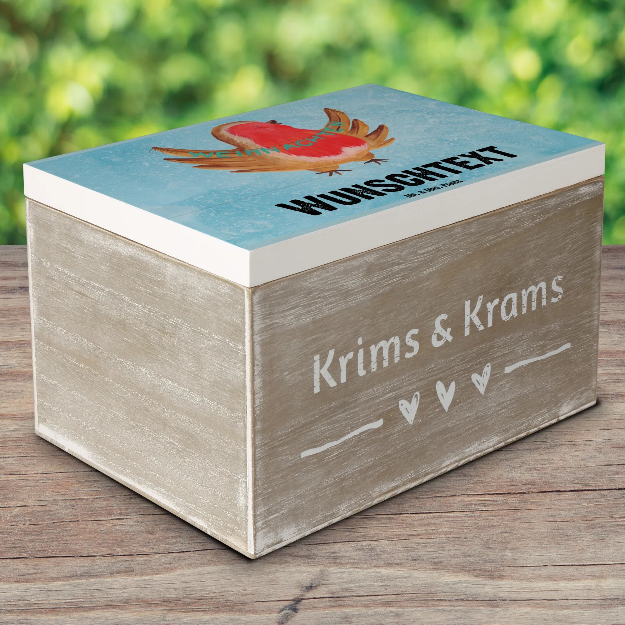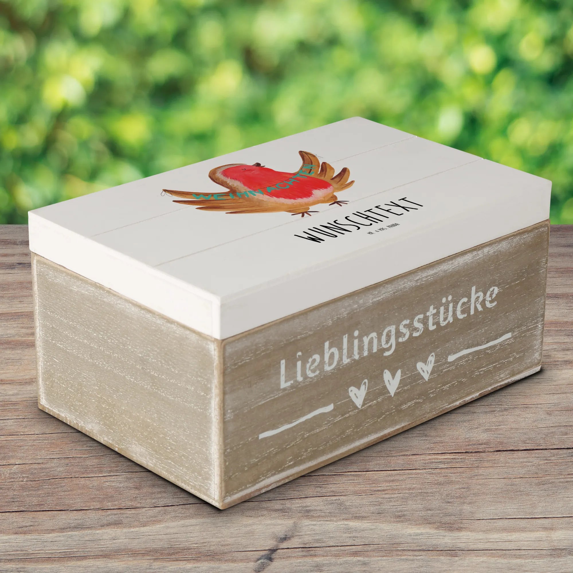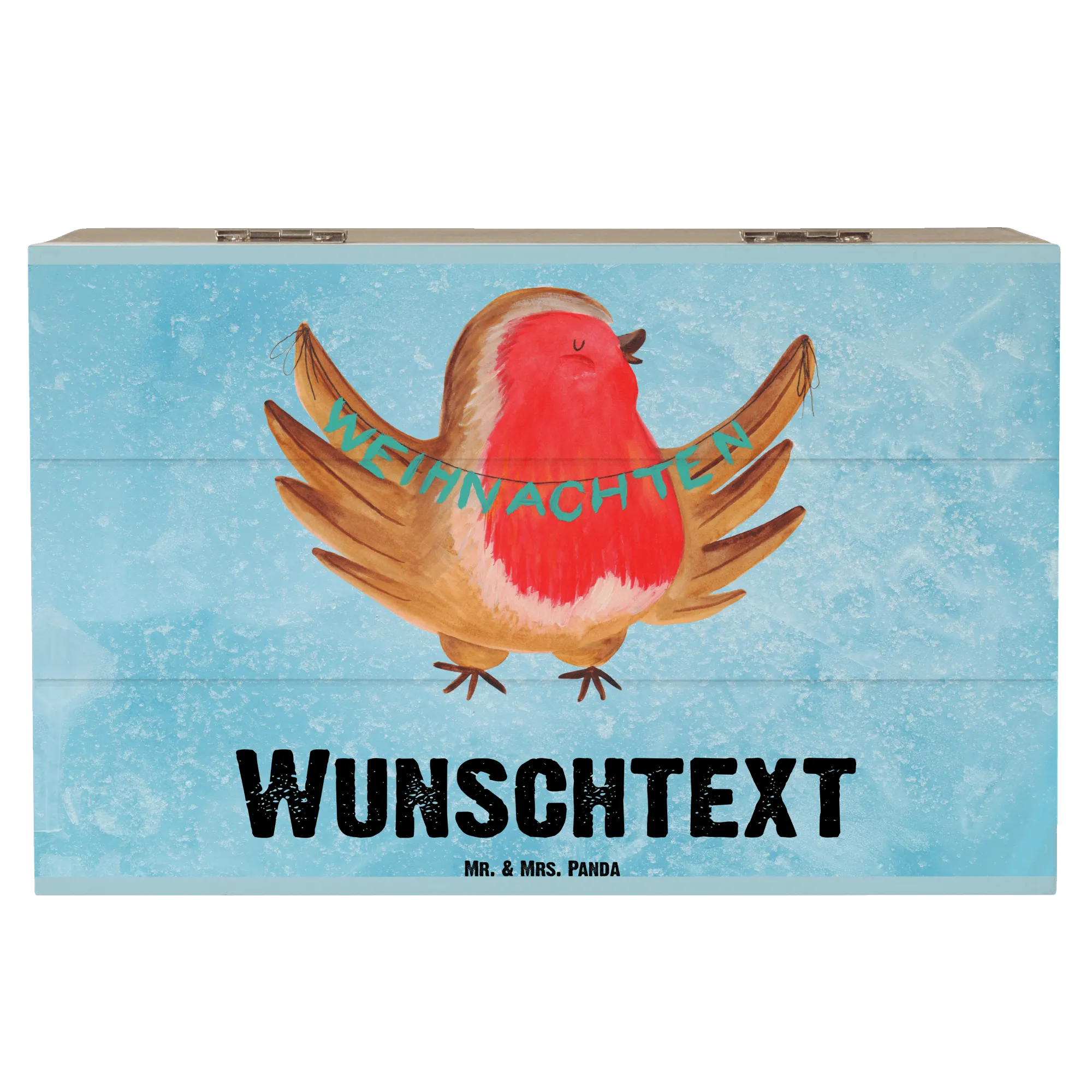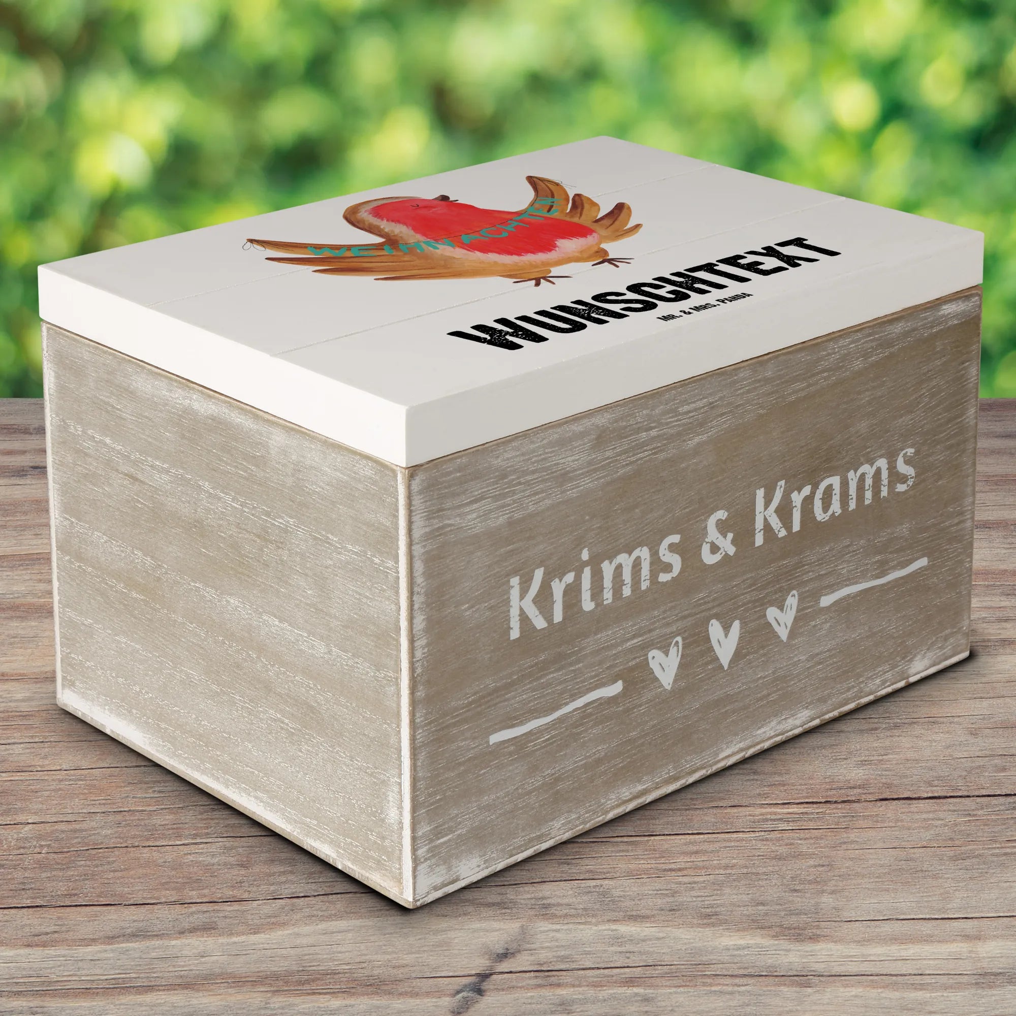 Personalizowane drewniane pudełko rudzik Boże Narodzenie - 22 x 15 cm - Biały
