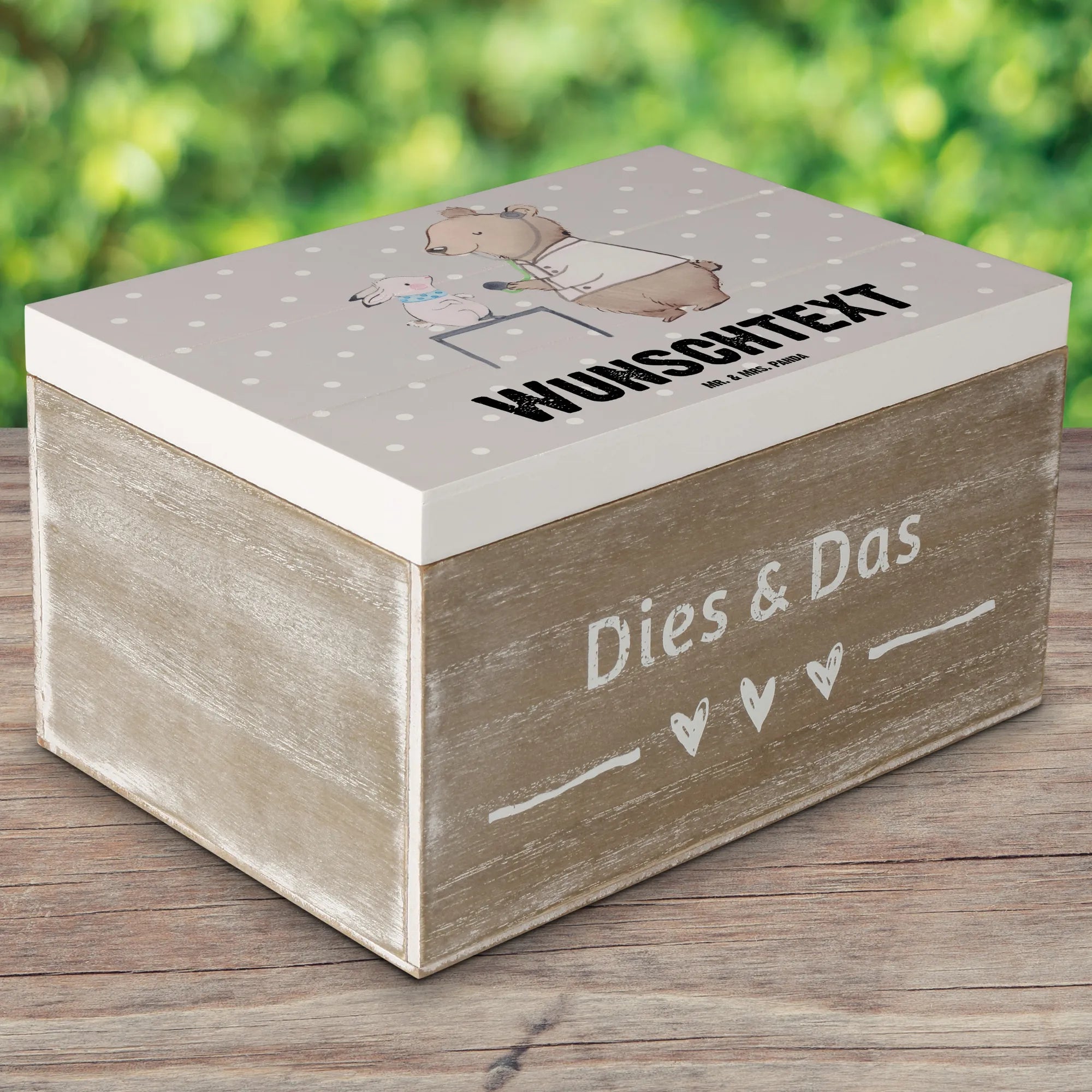Personalizowane drewniane pudełko terapeuta zwierząt serce - 22 x 15 cm - biały