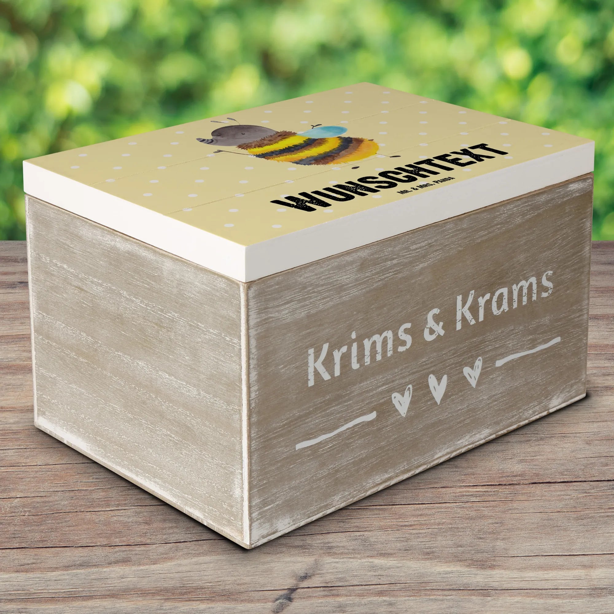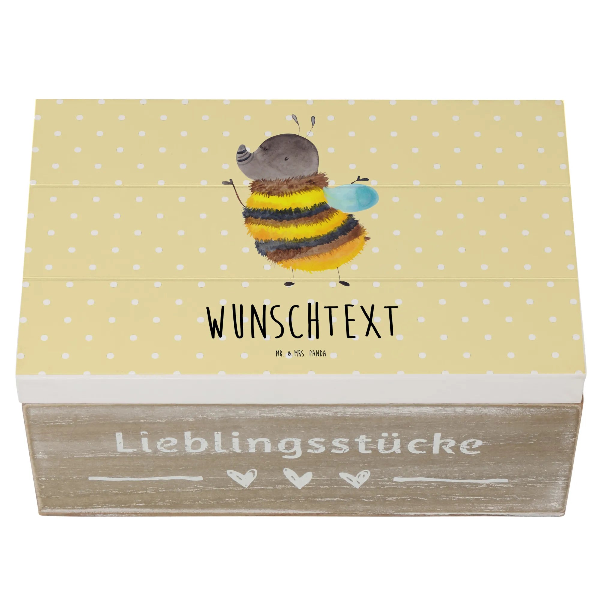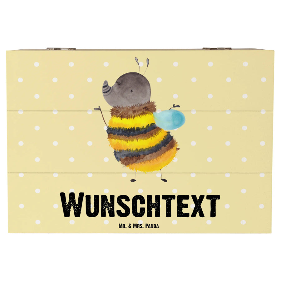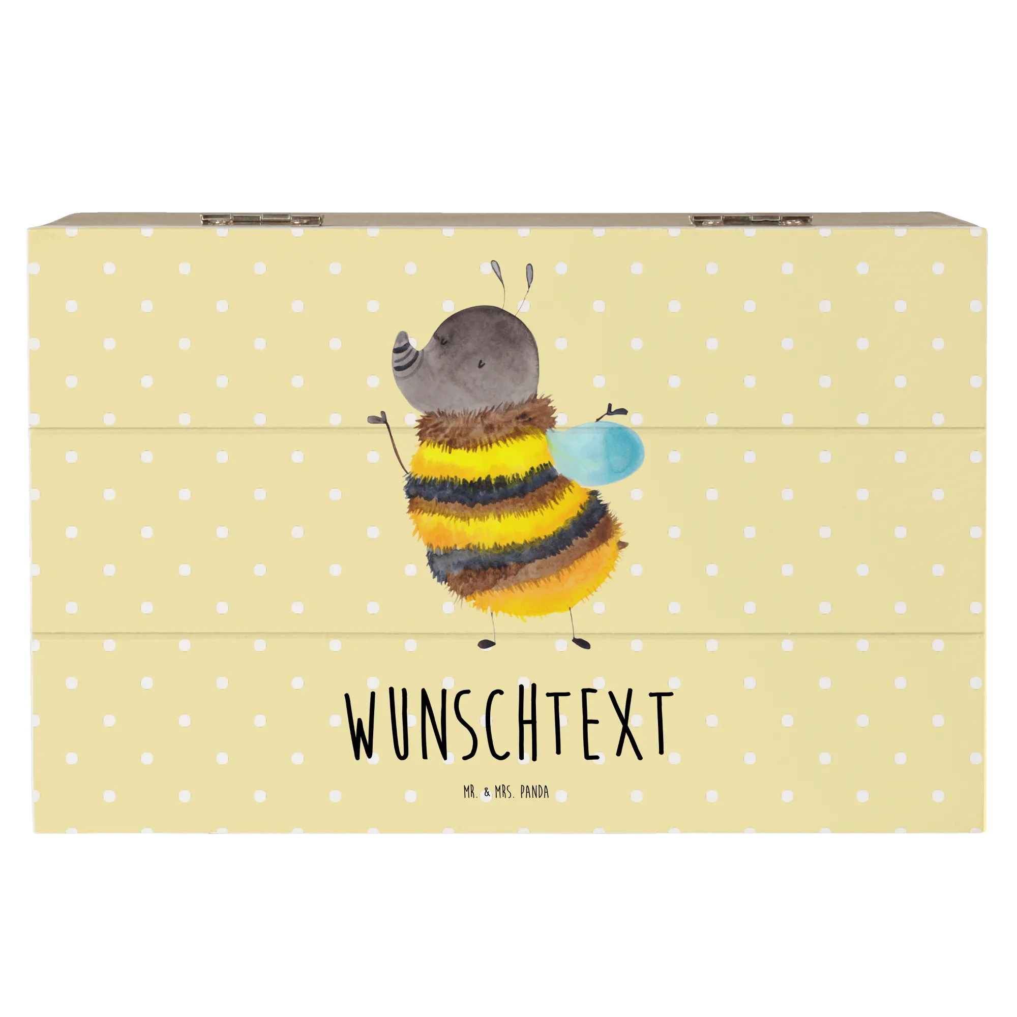 Personalizowane drewniane pudełko trzmiel puszysty - 22 x 15 cm - Pastelowy żółty