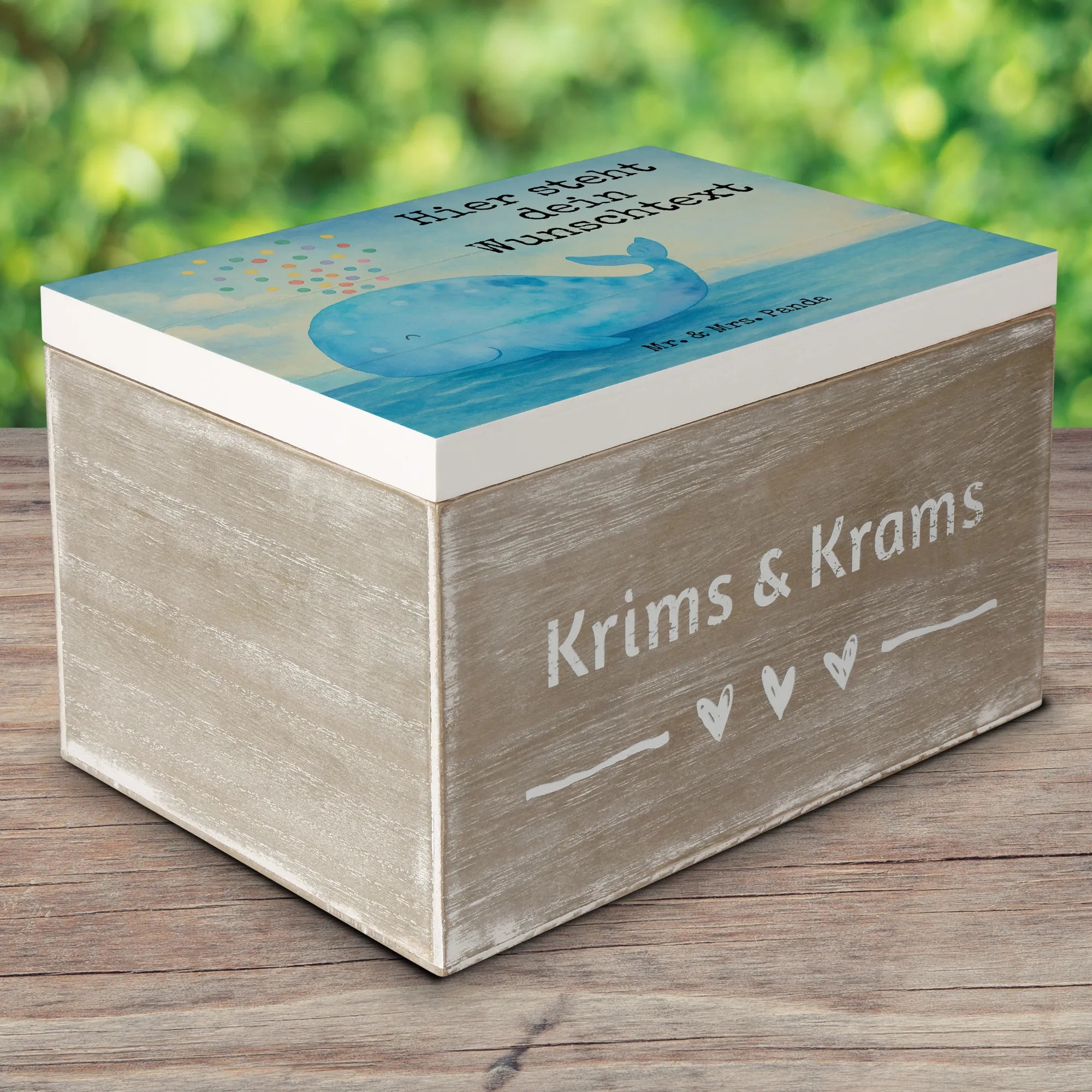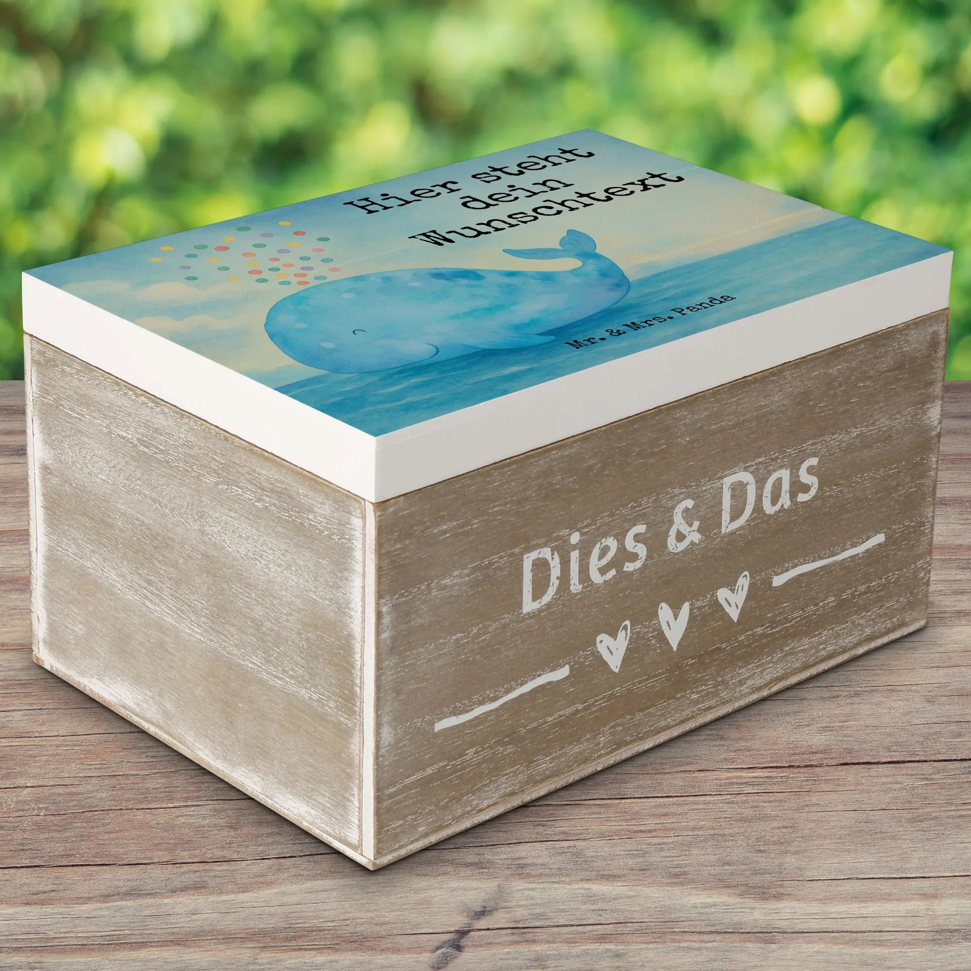 Personalizowane drewniane pudełko wieloryb konfetti Design - 22 x 15 cm