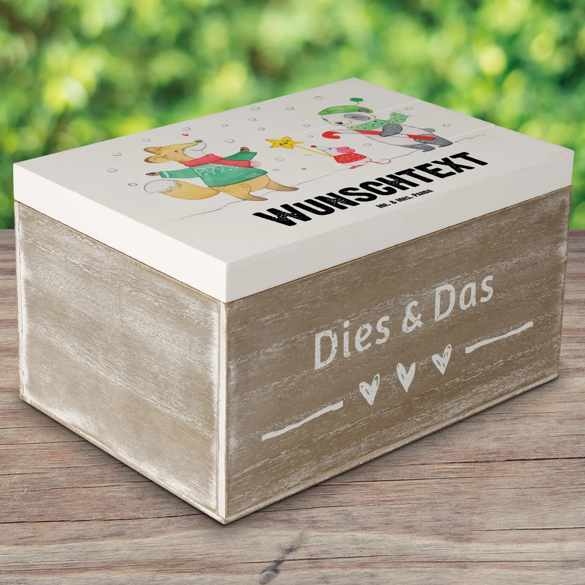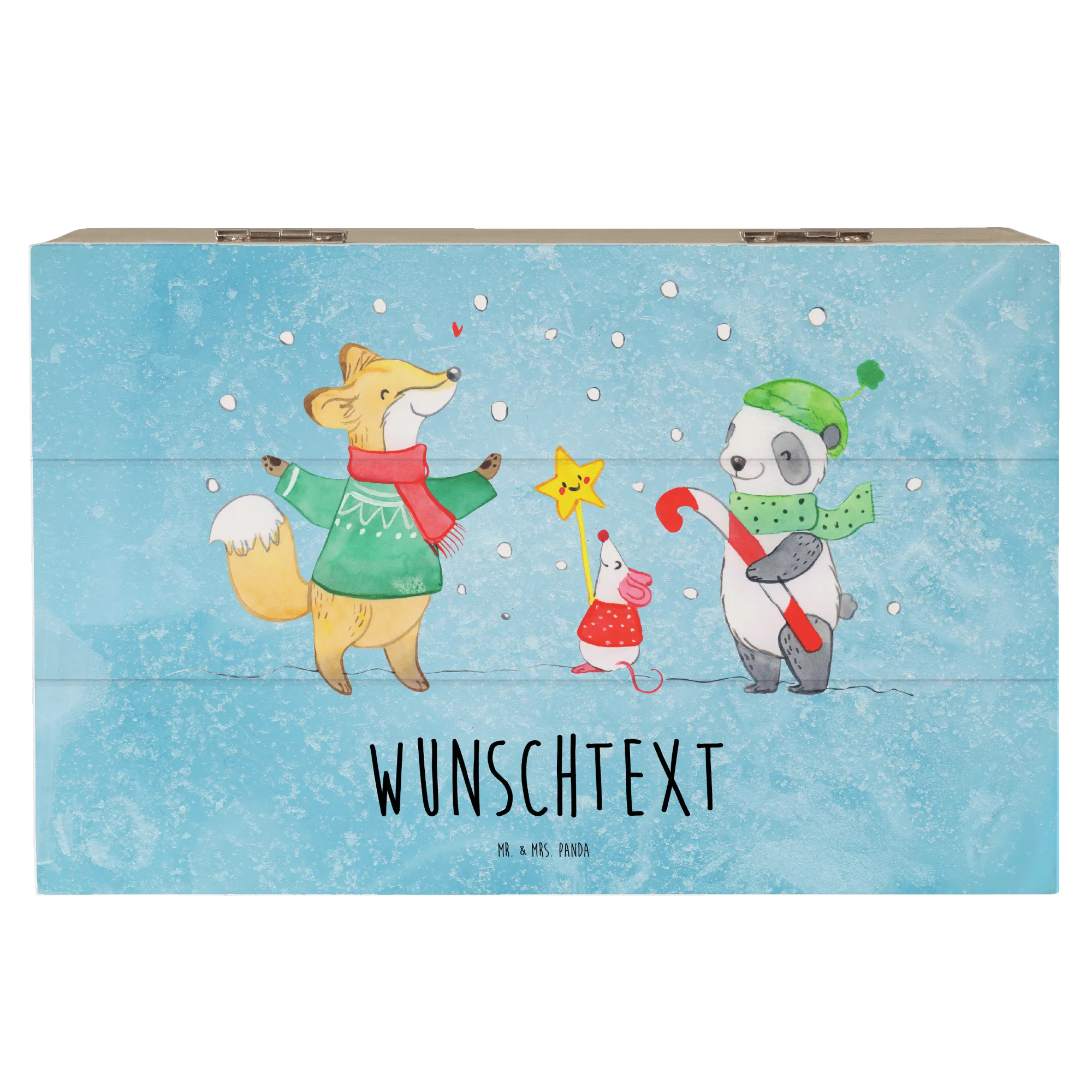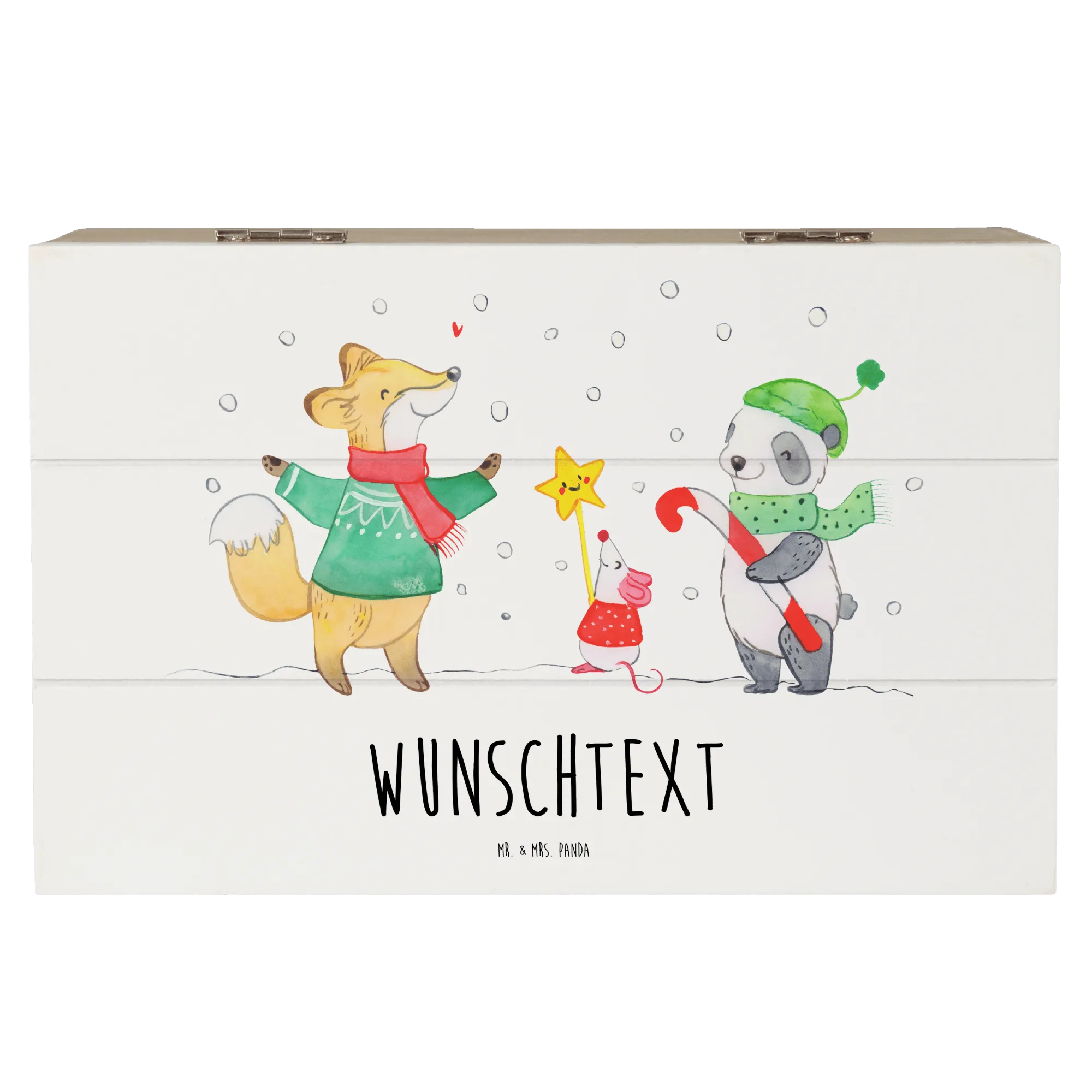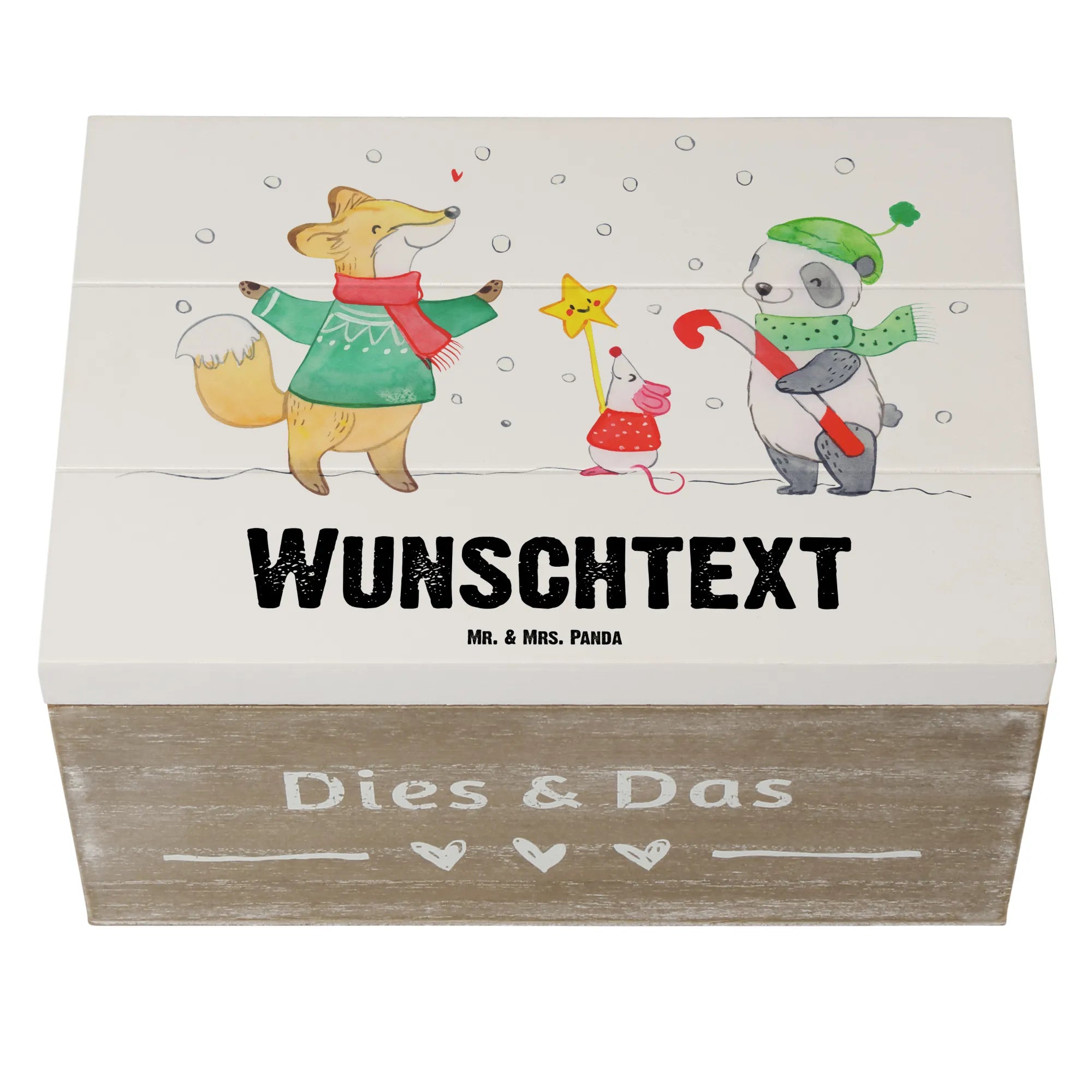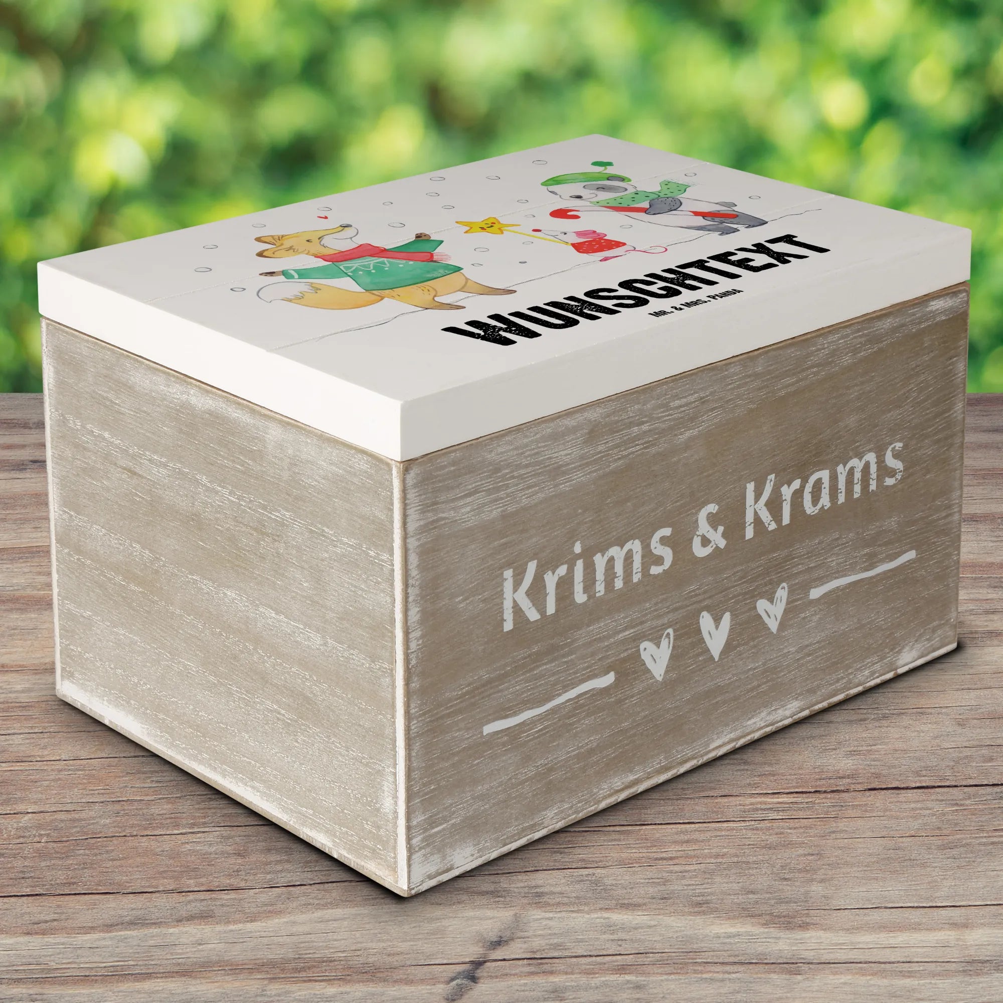 Personalizowane drewniane pudełko Zima radość świąteczna - 22 x 15 cm - biały