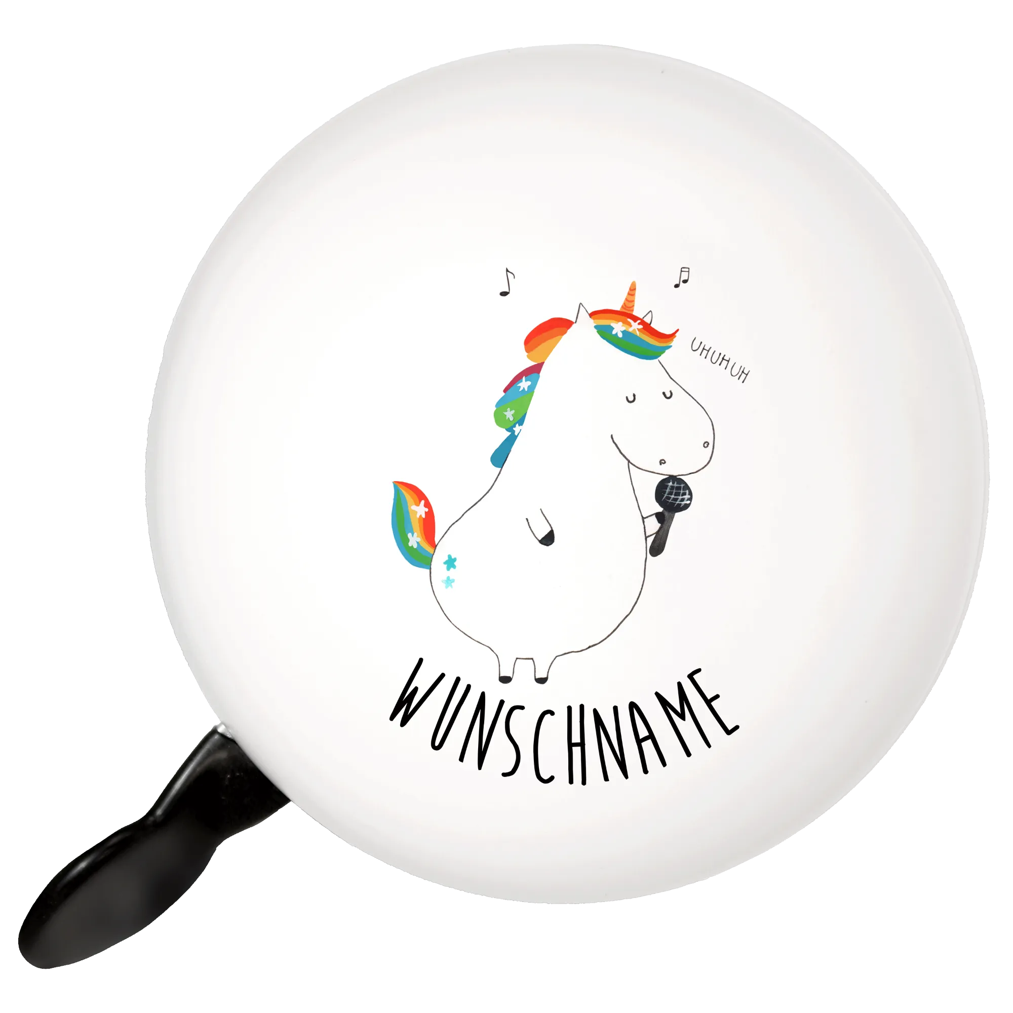 Die Fahrradklingel wird liebevoll mit einem bezaubernden Einhorn-Motiv bedruckt, das einen Sänger zeigt, der fröhlich in ein Mikrofon singt – ein echter Hingucker und ein Ausdruck deiner ganz persönlichen Note!