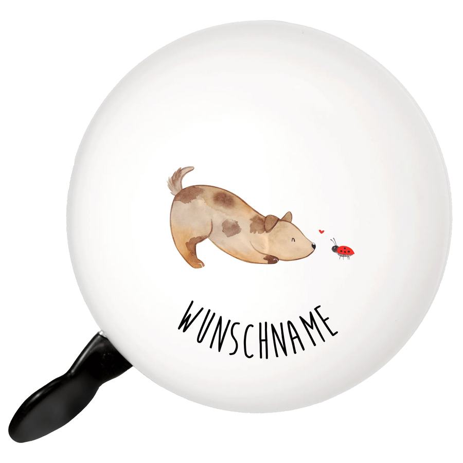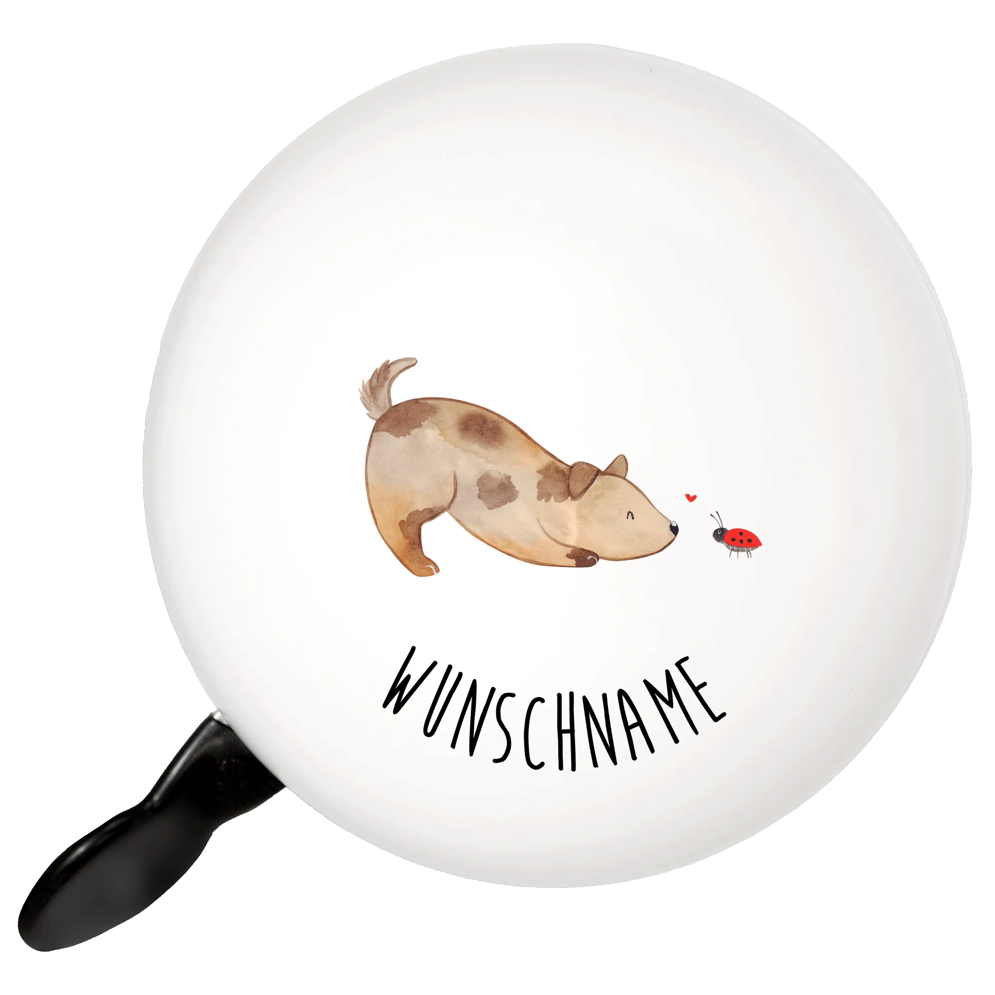 Entdecke die personalisierte Fahrradklingel mit dem niedlichen Hund Marienkäfer aus der beliebten Hunde Kollektion von Mr. & Mrs. Panda!