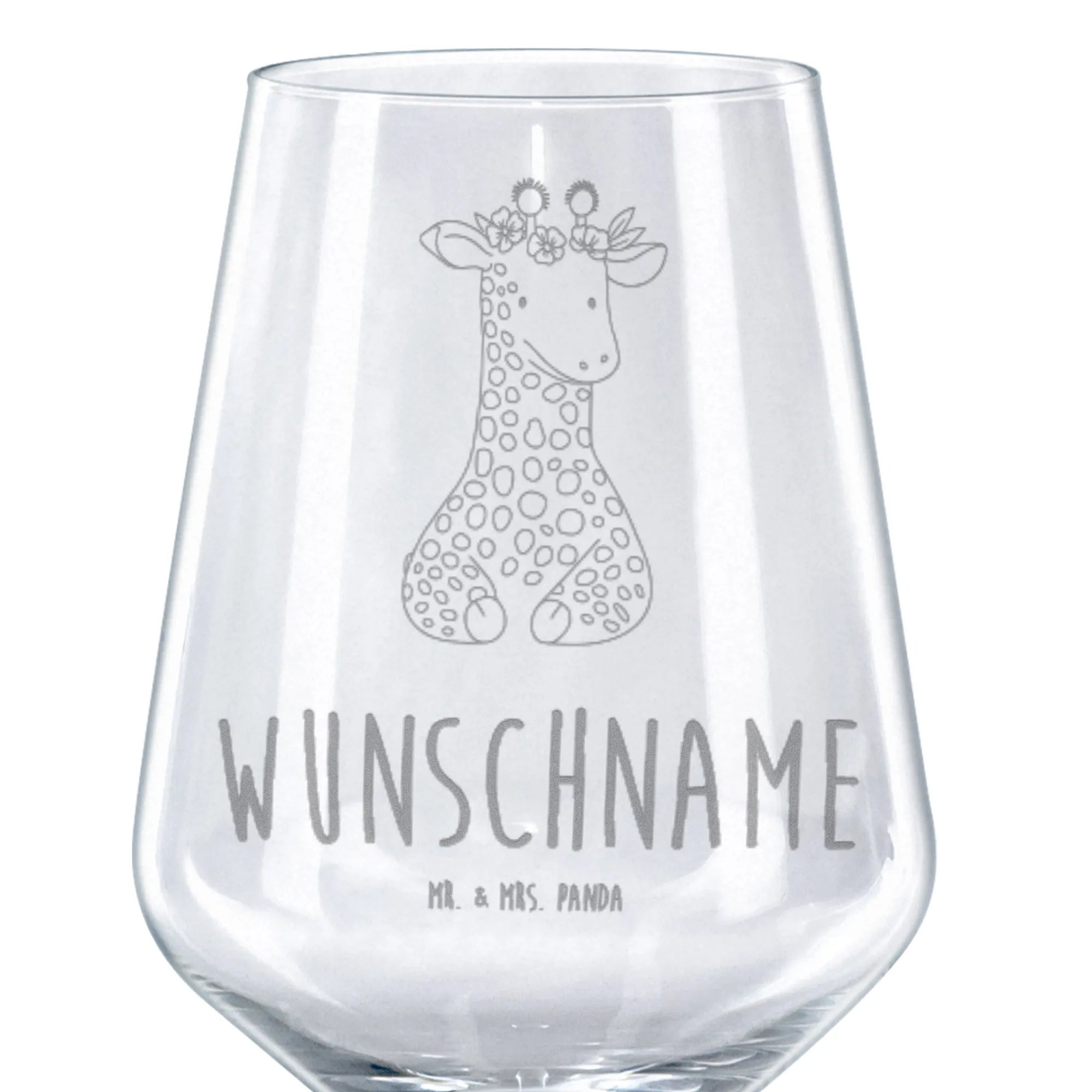 Personalizowany kieliszek do czerwonego wina żyrafa Wieniec kwiatów