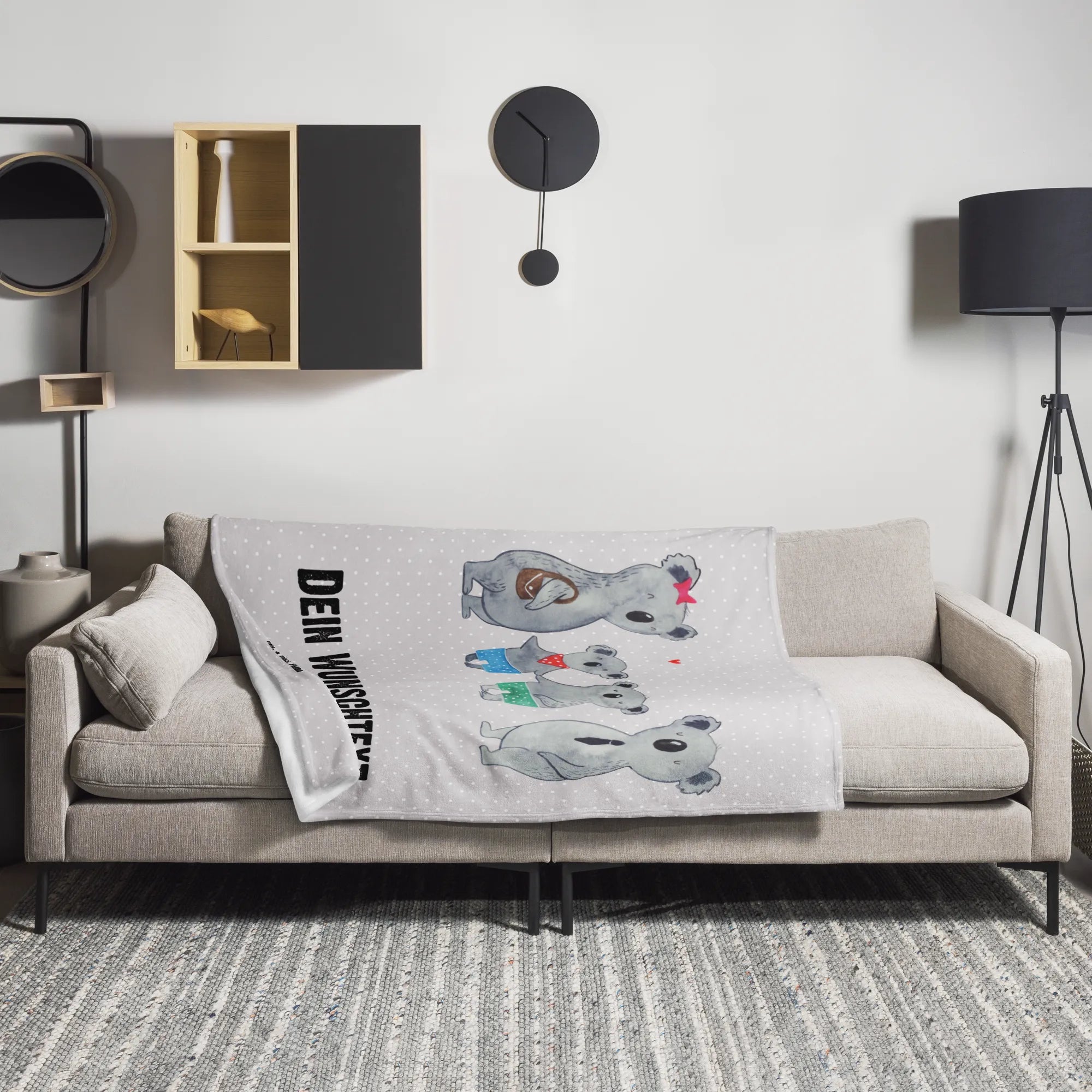 Entdecke die zauberhafte personalisierte Decke mit dem niedlichen Motiv der Koala Familie zwei, perfekt für alle, die Familie über alles lieben! Diese hochwertige Kuscheldecke ist nicht nur ein wunderbares Accessoire für dein Zuhause, sondern auch ein absolut liebevolles Geschenk für jeden Anlass.
