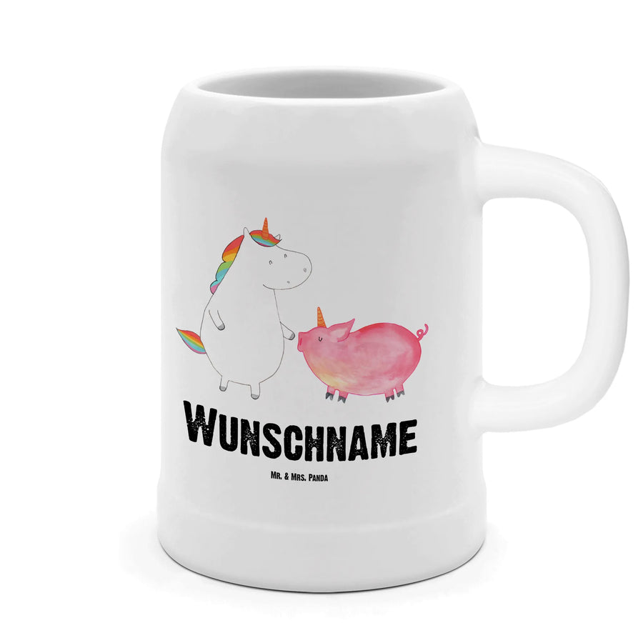 Entdecke den perfekten Begleiter für besondere Anlässe: unseren personalisierten Bierkrug mit dem zauberhaften Motiv Einhorn + Schweinhorn aus der exklusiven Einhorn-Kollektion von Mr. & Mrs. Panda! Dieser Bierkrug ist nicht nur eine Hommage an die magische Welt der Einhörner, sondern bringt auch eine Portion Humor ins Spiel mit dem witzigen Slogan "Was bist'n du? Ich bin ein Schweinhorn."