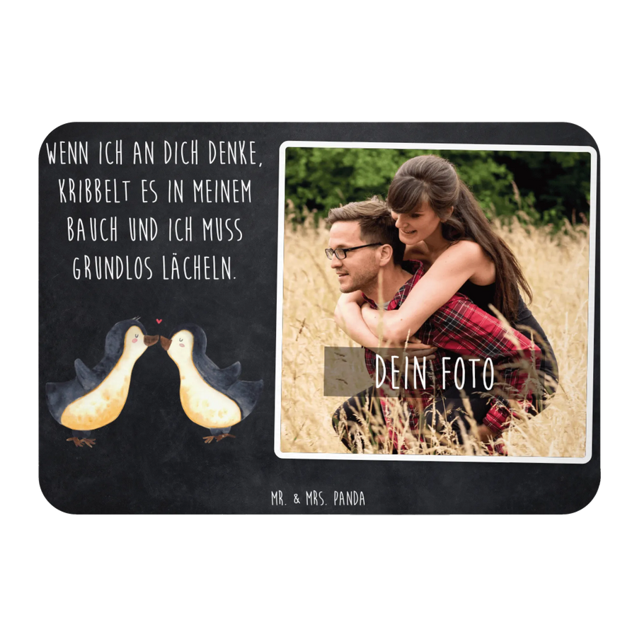 Wenn Du auf der Suche nach dem perfekten Geschenk bist, um Deine Liebe auszudrücken, dann ist der personalisierte Foto Magnet mit dem süßen Motiv Pinguine Kuss von Mr. & Mrs. Panda genau das Richtige für Dich!