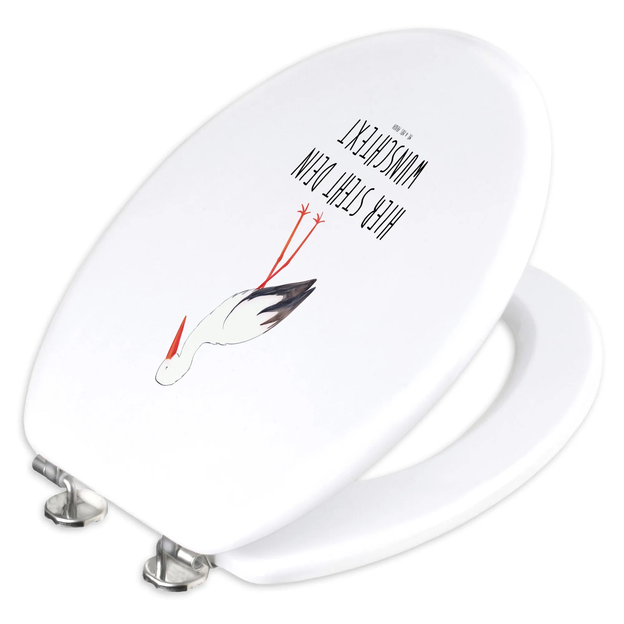 Der personalisierte WC Sitz mit dem süßen Storch-Motiv aus der Small World Kollektion von Mr. & Mrs. Panda ist das perfekte Geschenk für werdende Mütter und frischgebackene Eltern. Mit seinem charmanten Design strahlt dieser Klodeckel nicht nur gute Laune aus, sondern bringt auch Wärme und Freude ins Badezimmer.