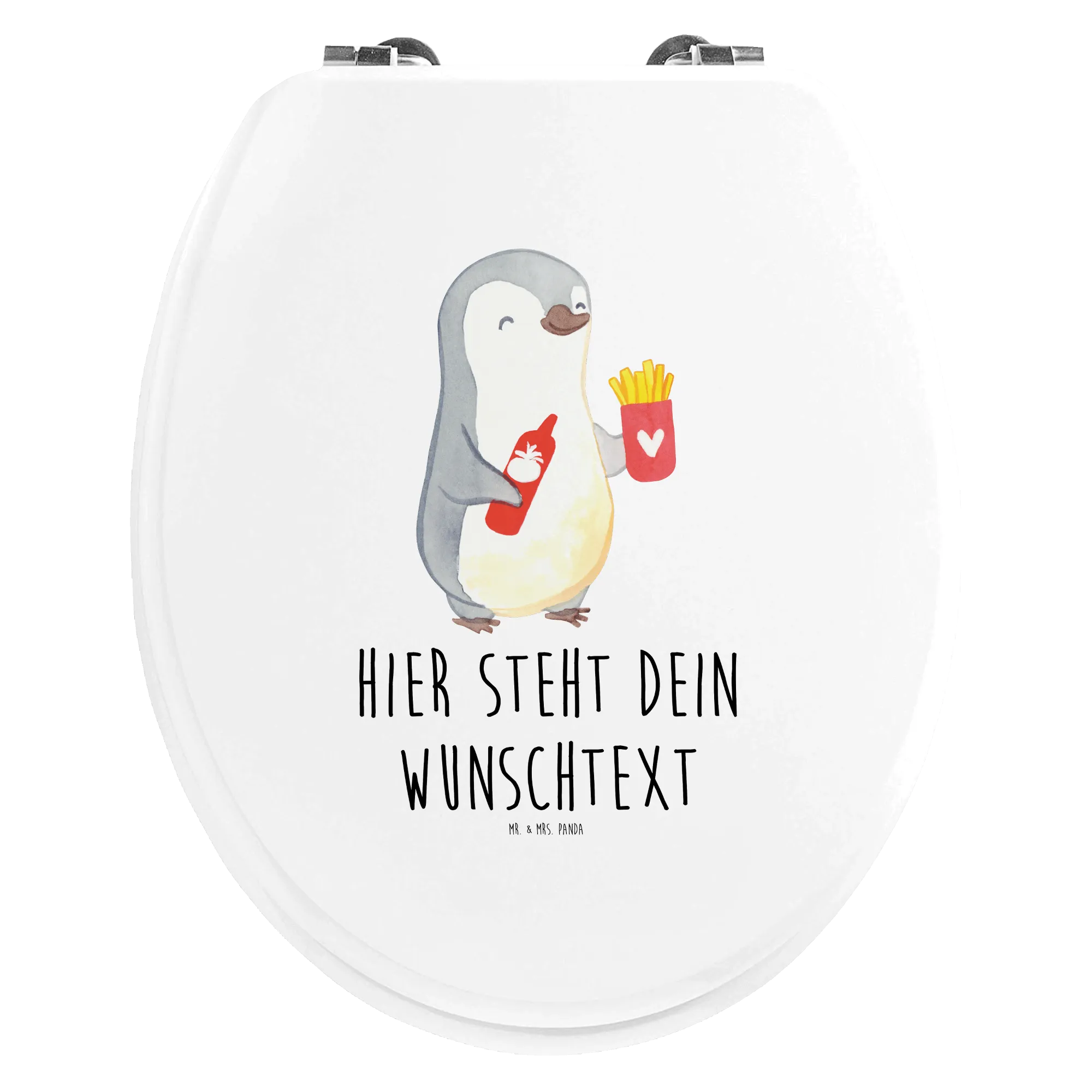 Schau mal, was wir hier für dich haben! Der personalisierte WC Sitz mit dem liebenswerten Motiv "Pinguin Pommes" von Mr. & Mrs. Panda bringt ein Lächeln in jedes Badezimmer. Egal, ob du ihn für deinen Partner, deine Freundin oder einfach für dich selbst kaufst, dieser WC Sitz ist ein echtes Unikat.