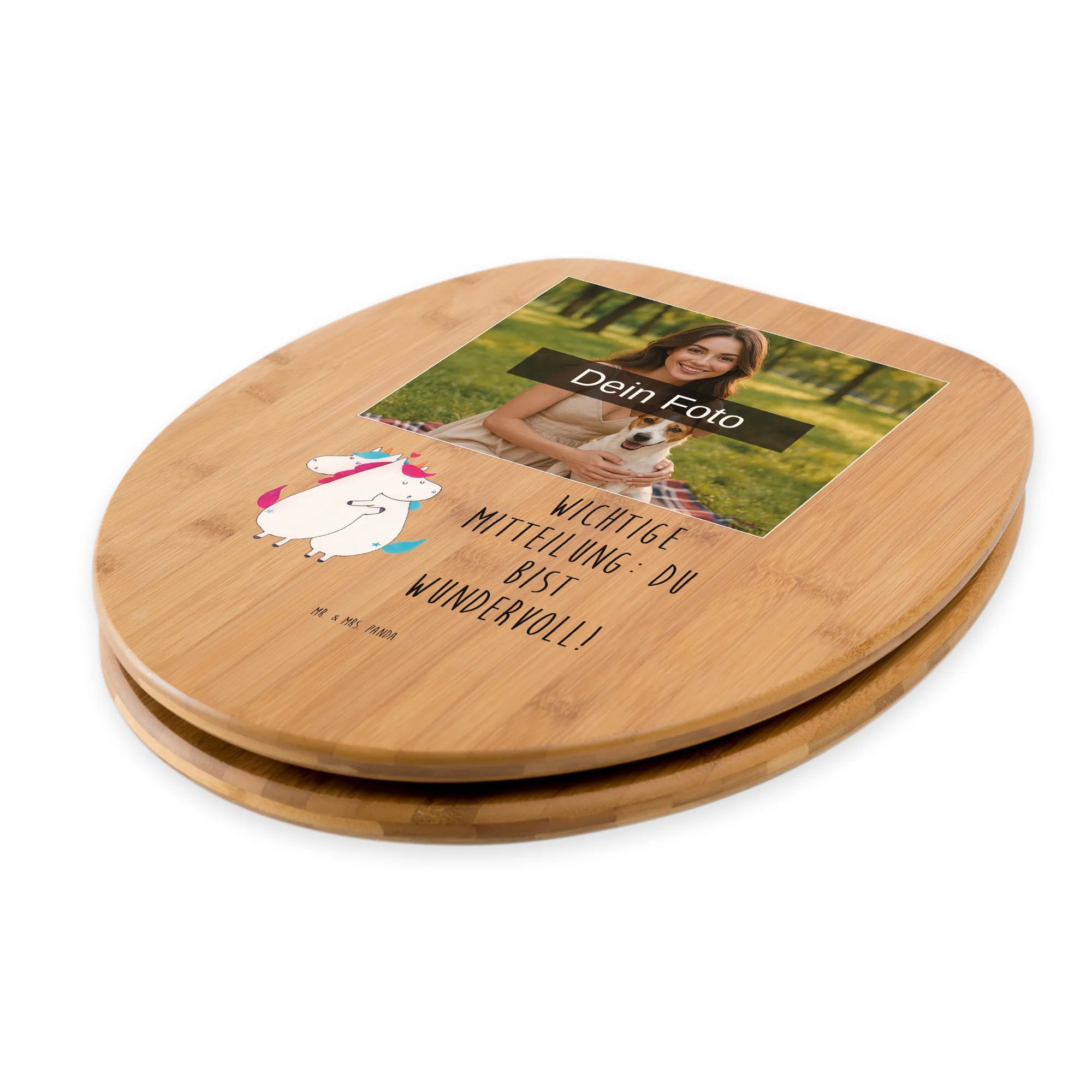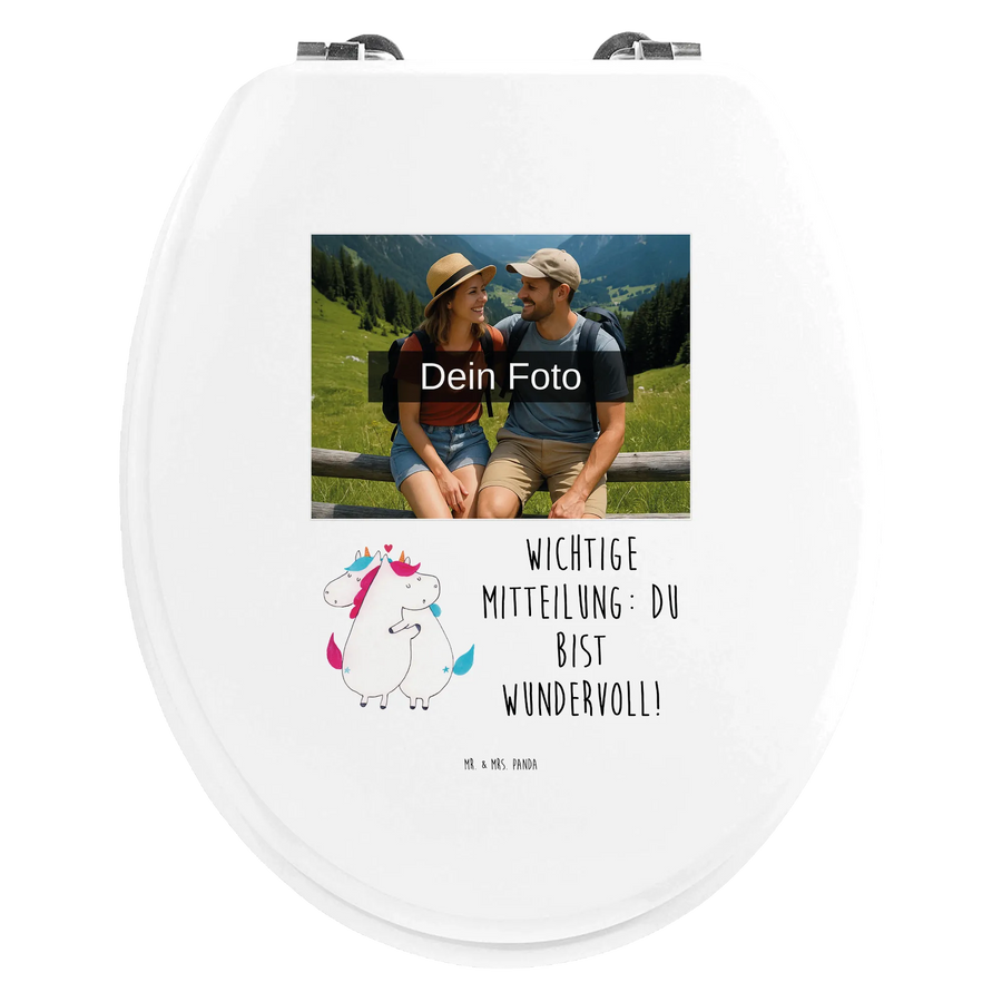 Personalisierter Foto WC Sitz Motiv Einhorn Mitteilung - Hartfaser Holzkern Weiß