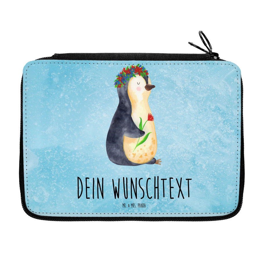 Personalisierte Federmappe Pinguin Blumenkranz - Eisblau