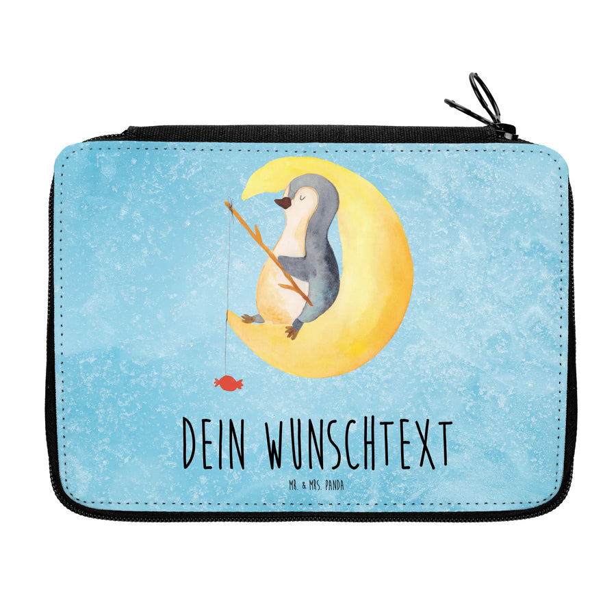 Personalisierte Federmappe Pinguin Mond - Eisblau