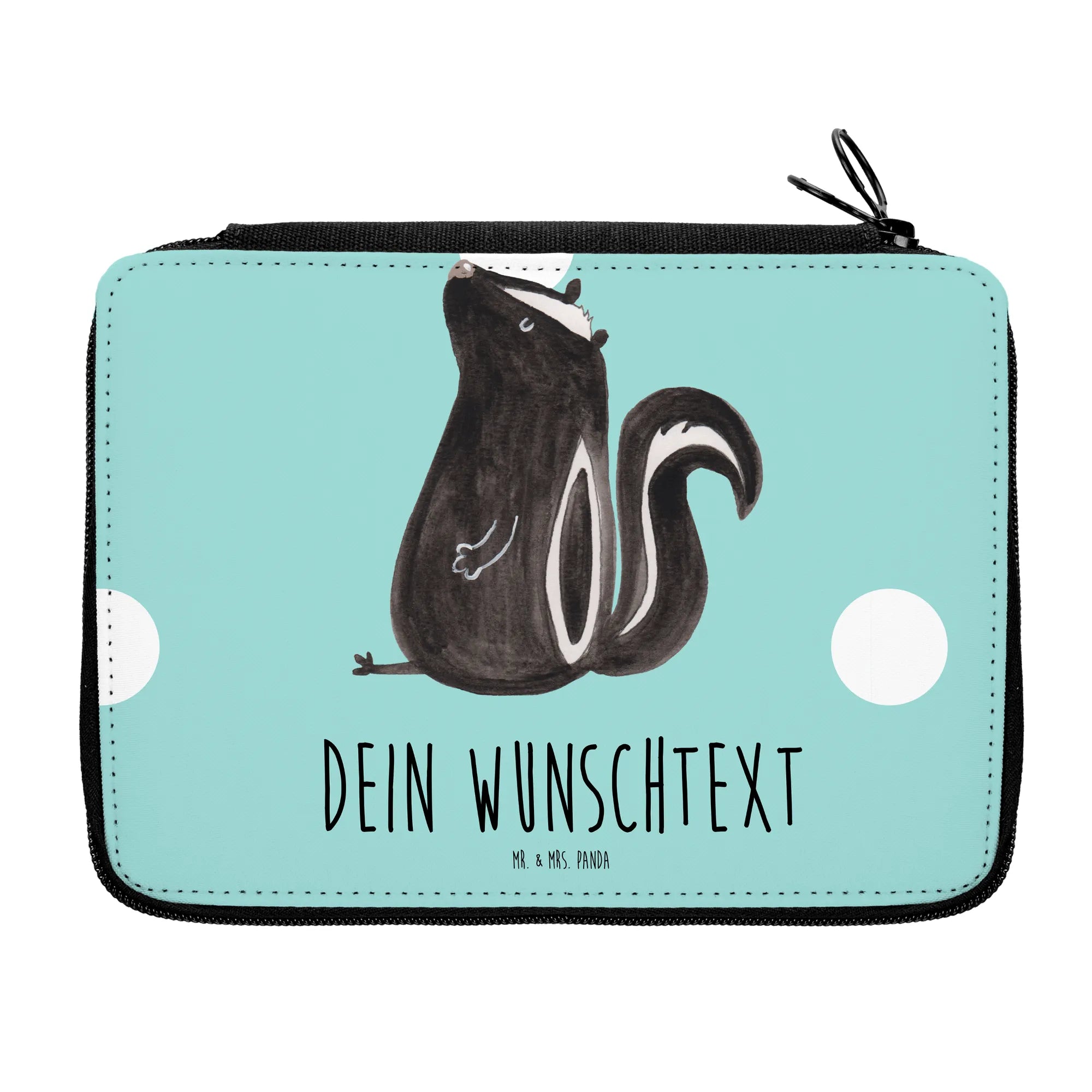 Entdecke die perfekte Begleiterin für die Schule: unsere personalisierte Federmappe mit dem bezaubernden Motiv des sitzenden Stinktiers aus der exklusiven Stinktier-Kollektion von Mr. & Mrs. Panda! Jedes Kind wird von dieser wundervollen Federmappe begeistert sein, die nicht nur praktisch, sondern auch individuell ist. Du kannst sie mit dem Namen Deines Kindes personalisieren lassen, wodurch sie ein einzigartiges Geschenk zur Einschulung oder zu einem anderen besonderen Anlass wird.