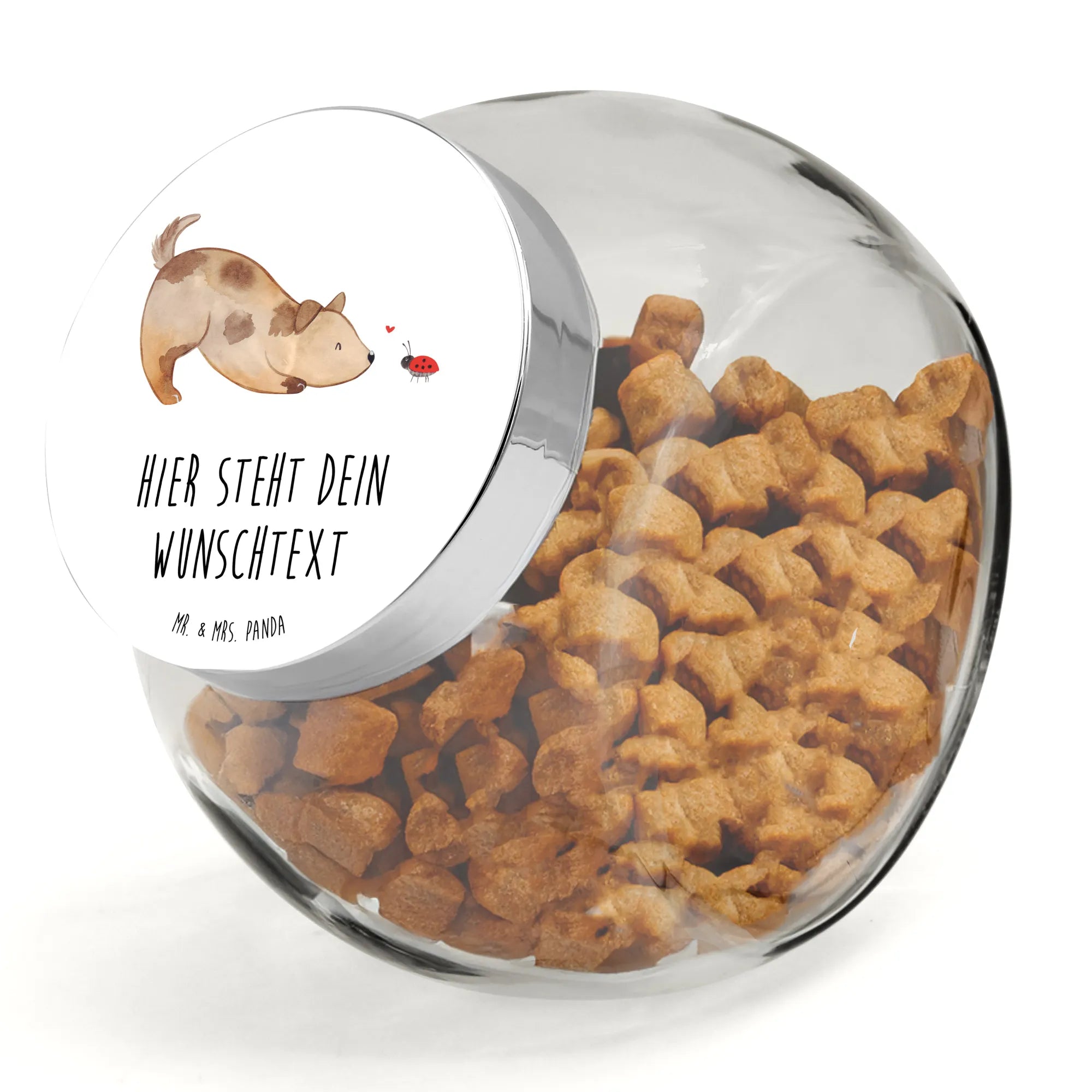 Das personalisierte Leckerli Glas mit dem süßen Hund Marienkäfer Motiv ist das perfekte Geschenk für jeden Hunde- oder Tierliebhaber! Ob zu einem besonderen Anlass wie einem Geburtstag, Weihnachten oder einfach als liebevolle Überraschung für dich selbst oder einen Freund – dieses Leckerli Glas wird die Herzen von Haustierbesitzern höherschlagen lassen. Die liebevolle Illustration eines fröhlichen Hundes, der einem kleinen Marienkäfer Gesellschaft leistet, zaubert ein Lächeln auf jedes Gesicht.