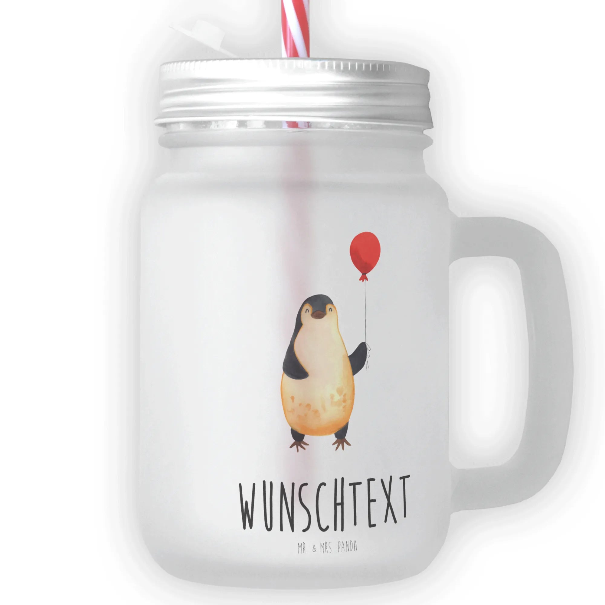 Mach dir bereit für unvergessliche Sommermomente mit unserem personalisierten Trinkglas Mason Jar! Dieses edle und sonnige Trinkglas, verziert mit einem zauberhaften Pinguin, der einen Luftballon hält, wird in der Pinguin-Kollektion von Mr. & Mrs. Panda hergestellt. Das Glas ist nicht nur ein Blickfang, sondern auch eine erstklassige Geschenkidee!