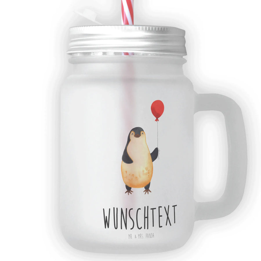 Personalisiertes Trinkglas Mason Jar Pinguin Luftballon