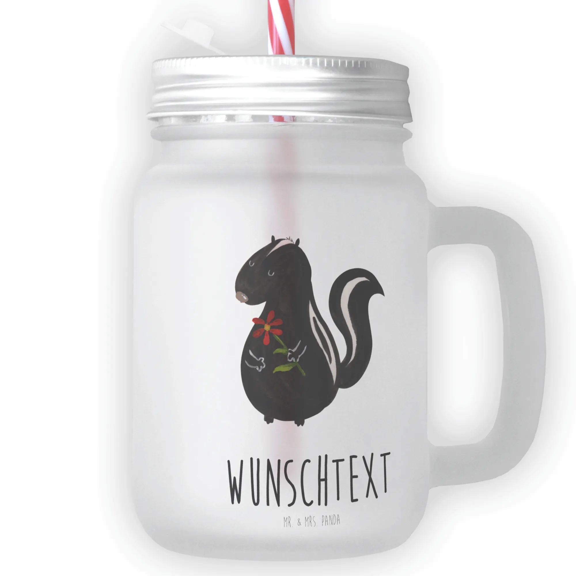Personalisiertes Trinkglas Mason Jar Stinktier Blume