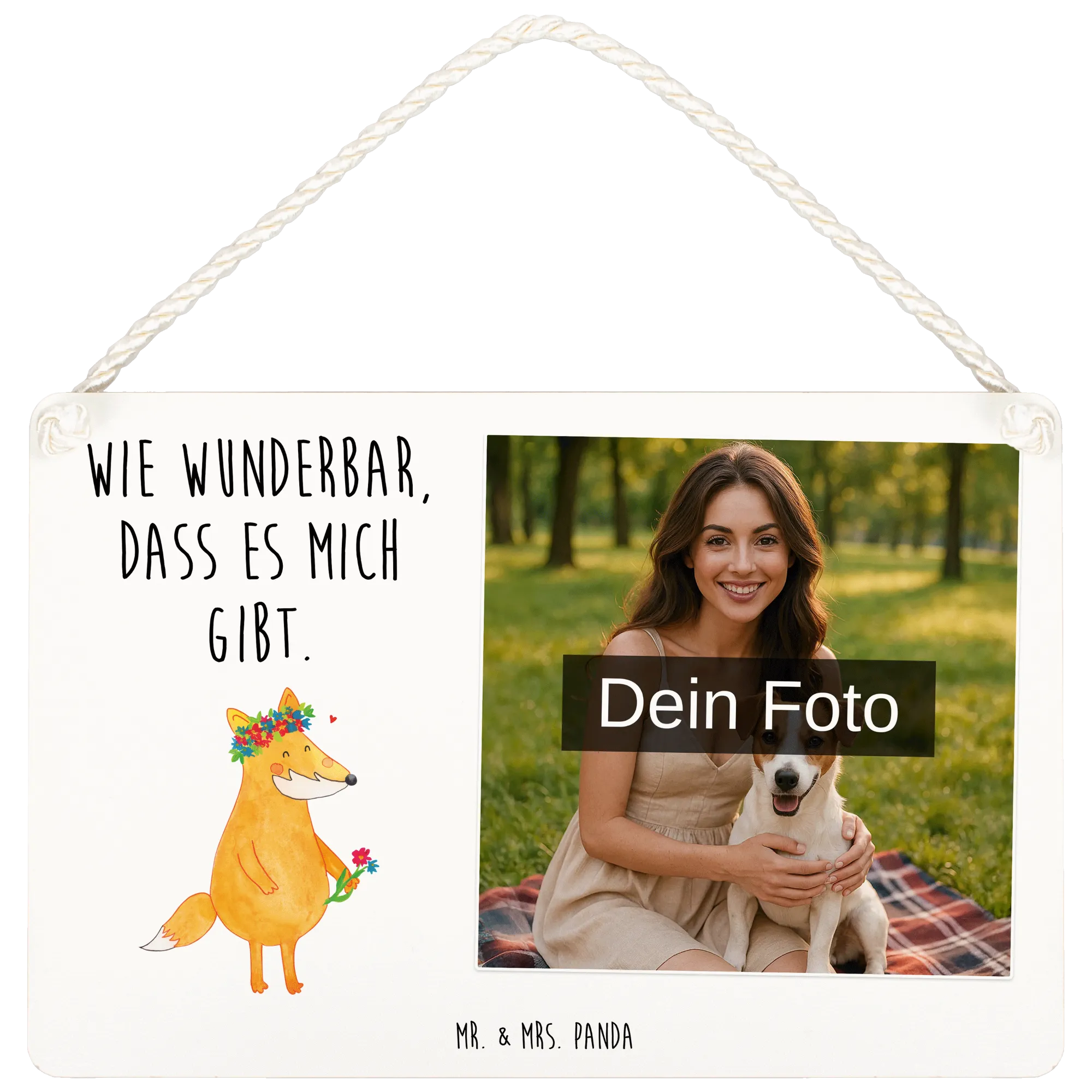 Personalisiertes Foto Deko Schild Fuchs Blumen - DIN A5